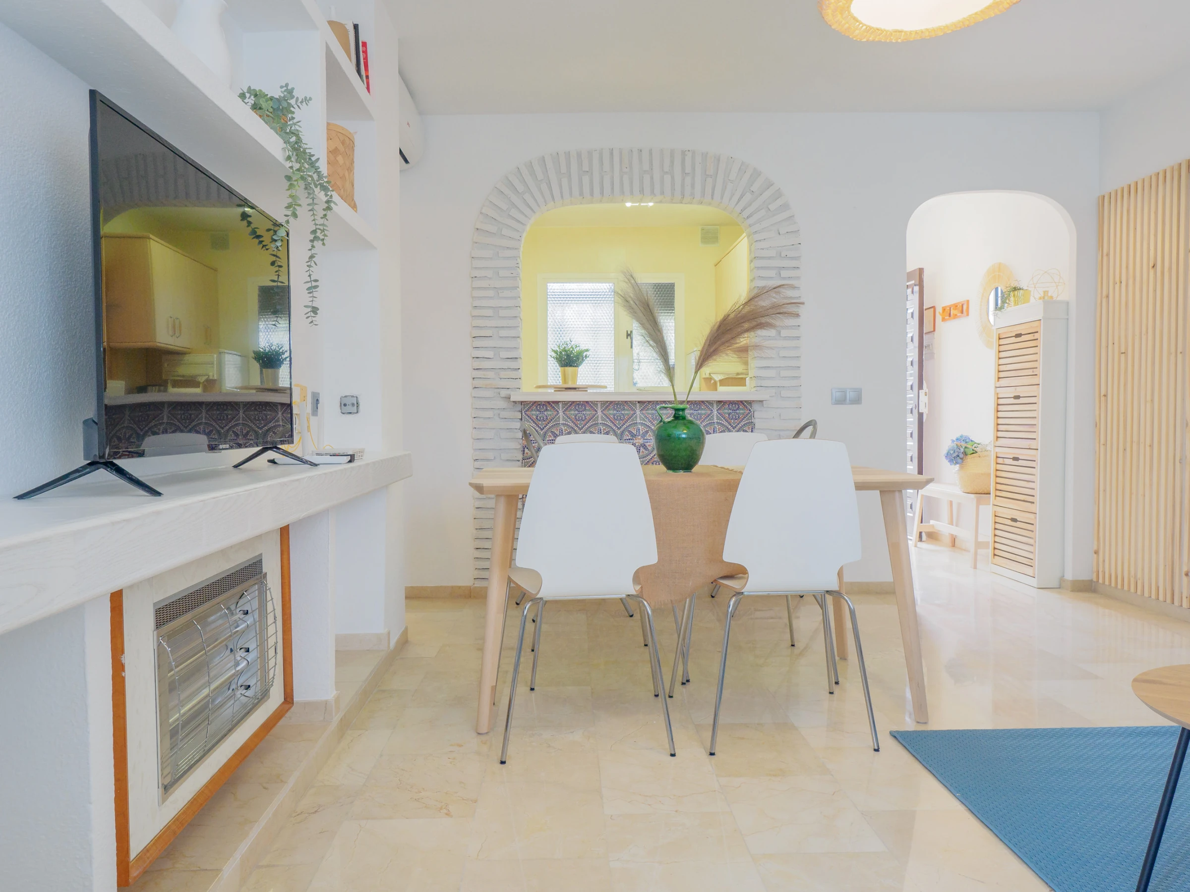 The dining room connects to the terrace, where you can relax while enjoying television with fibre optic, perfect for watching your favourite series and movies with family or friends 📺✨.