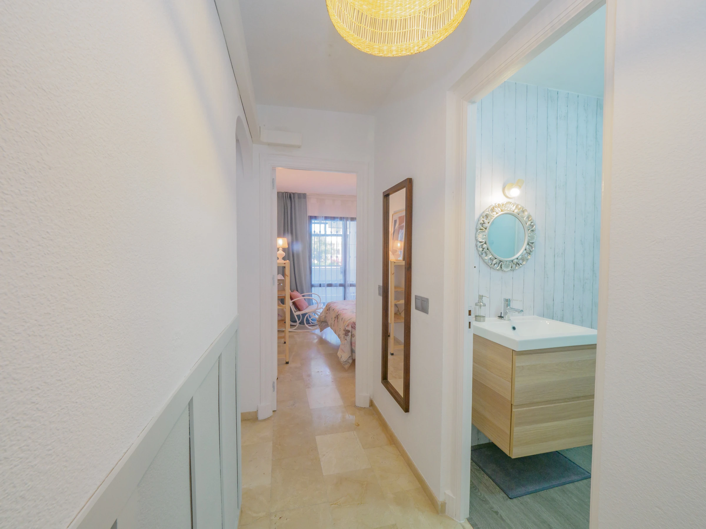 The apartment, located on what appears to be a first floor, only requires climbing a small flight of stairs to access the main door. It also has access from the terrace that overlooks the pool and offers sea views, ideal for entering and leaving without detours.