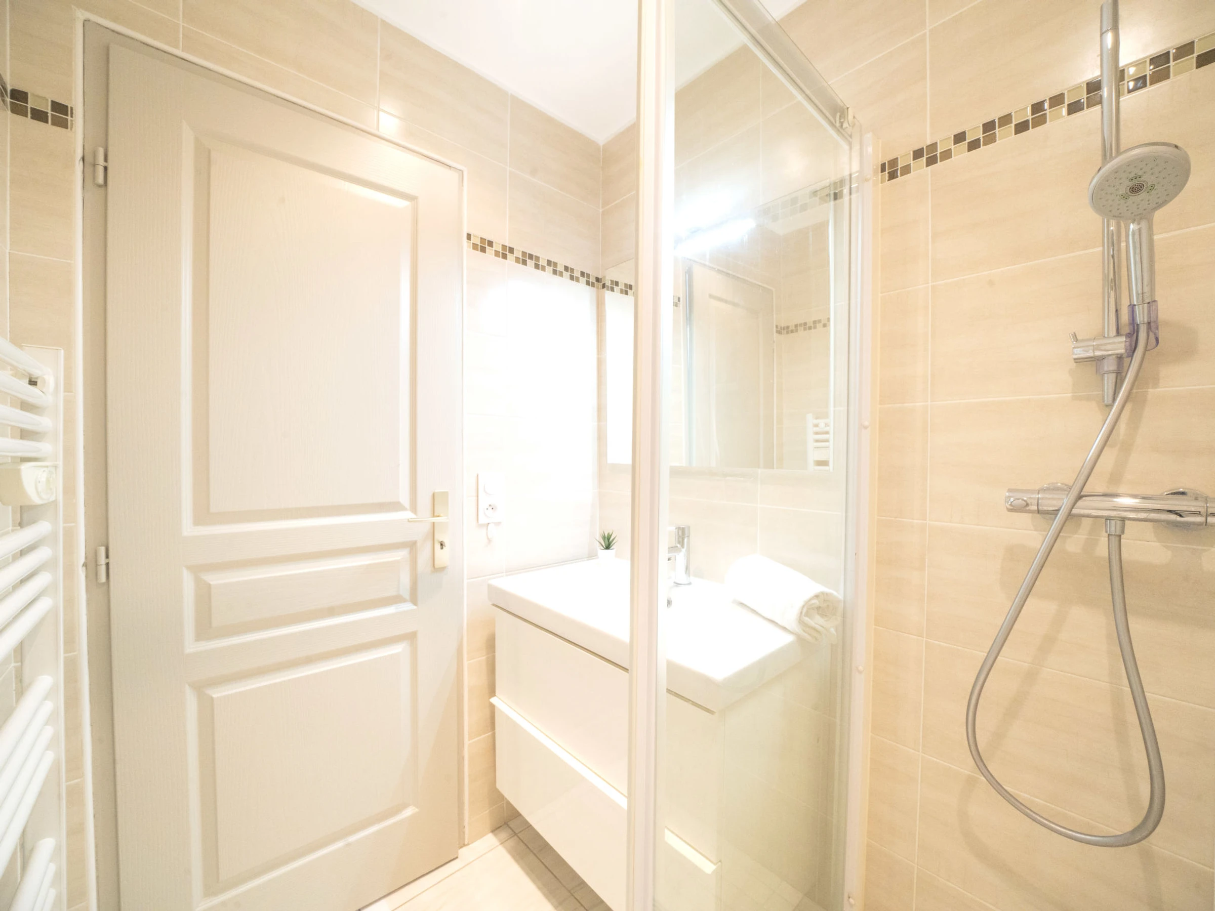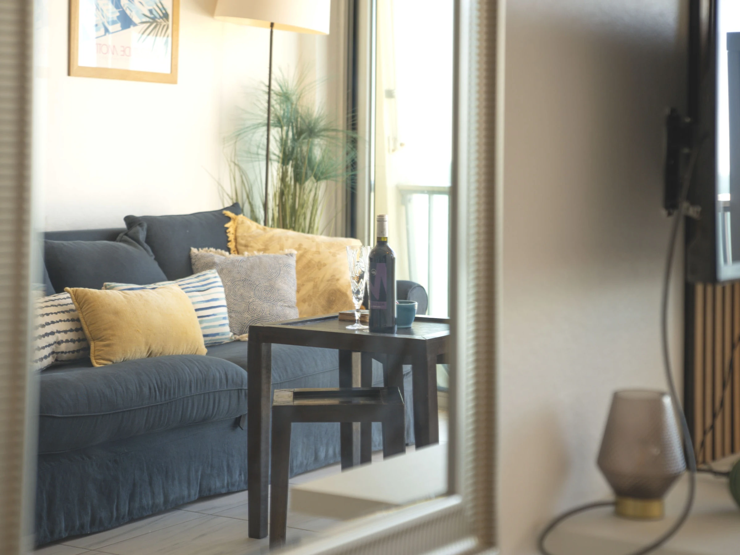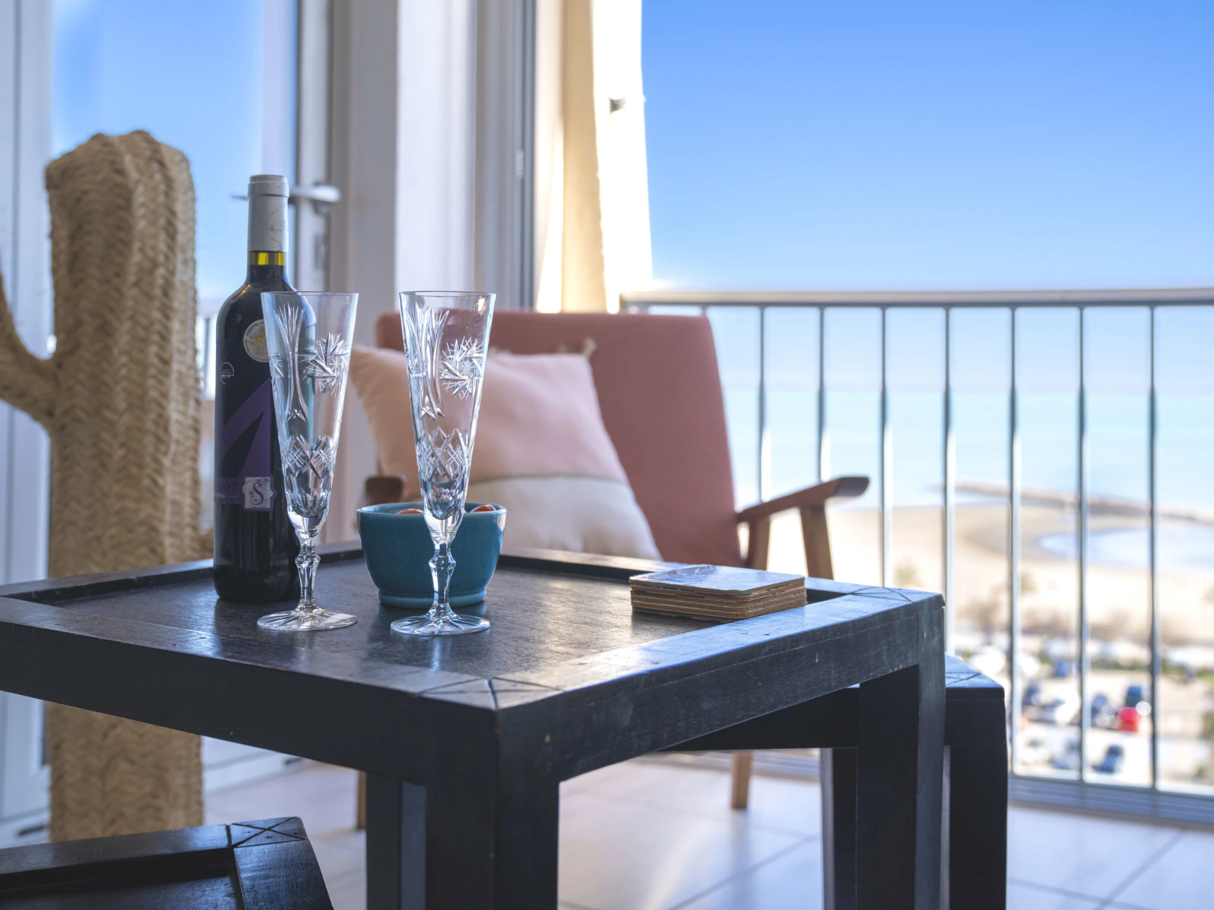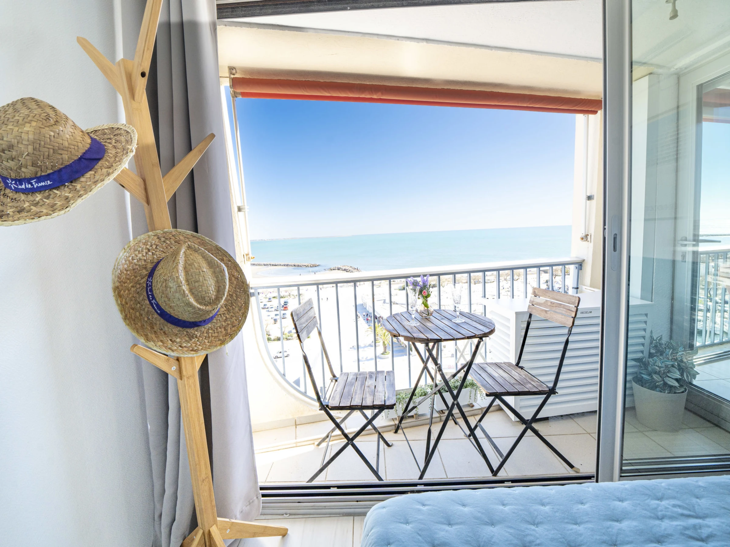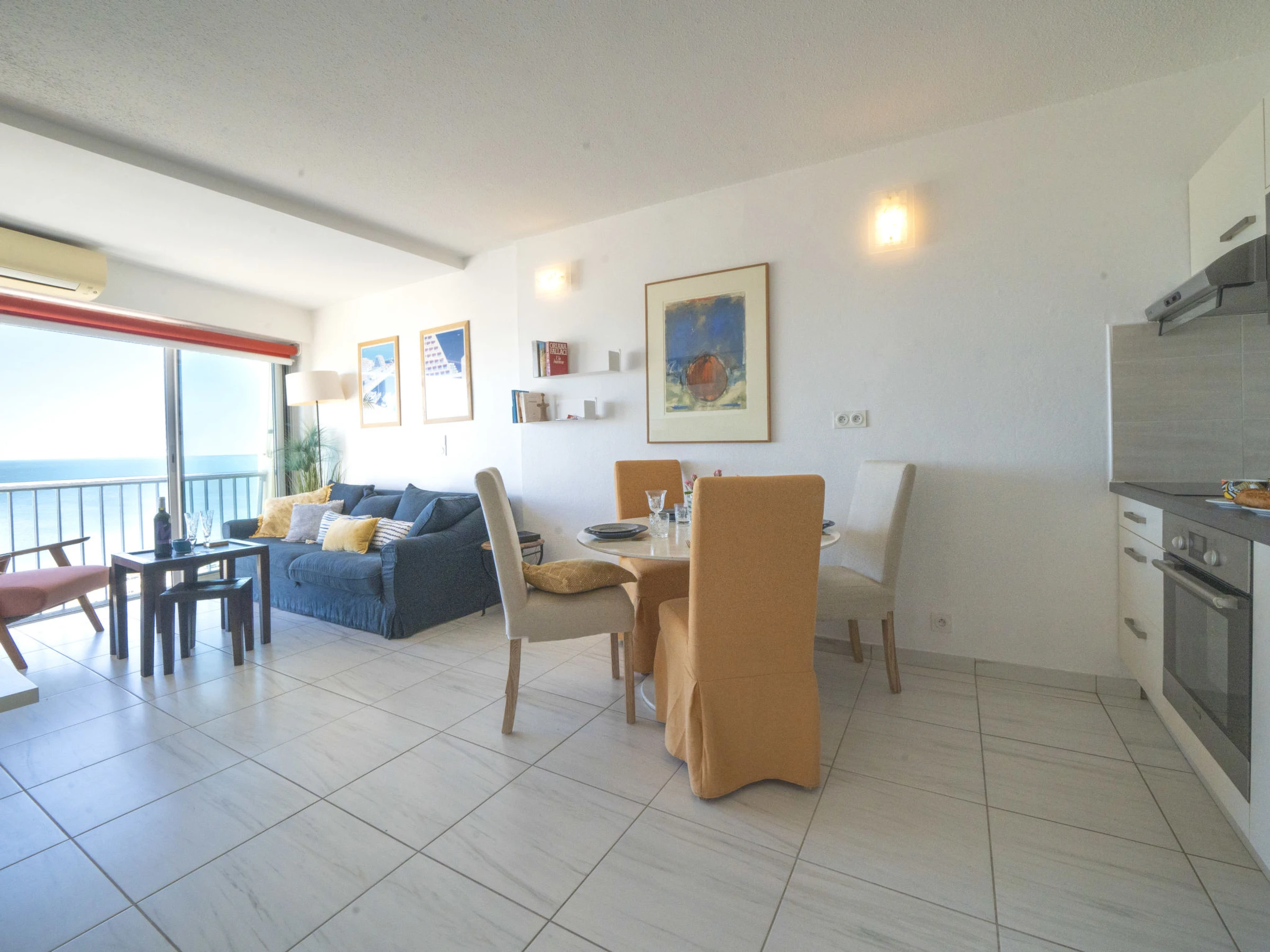 2-room apartment 44 m2 on 8th floor, south facing position. Very comfortable furnishings: living/dining room with 1 double sofabed (160 cm, length 200 cm), TV (flat screen), electric heating and air conditioning. 1 room with veranda with 1 french bed (160 cm, length 190 cm), air conditioning. Open kitchen (oven, dishwasher, 3 induction hot plates, toaster, kettle, microwave, freezer, electric coffee machine). Shower, sep. WC. Electric heating. Small terrace 4 m2, south facing position. Terrace furniture. Very beautiful view of the sea and the countryside. Facilities: washing machine, iron, hair dryer. Internet (WiFi, free). Parking (1 car). Please note: non-smokers only. Smoke alarm. Offer by a private individual according to Art. 155, IV of CGI. [hidden]