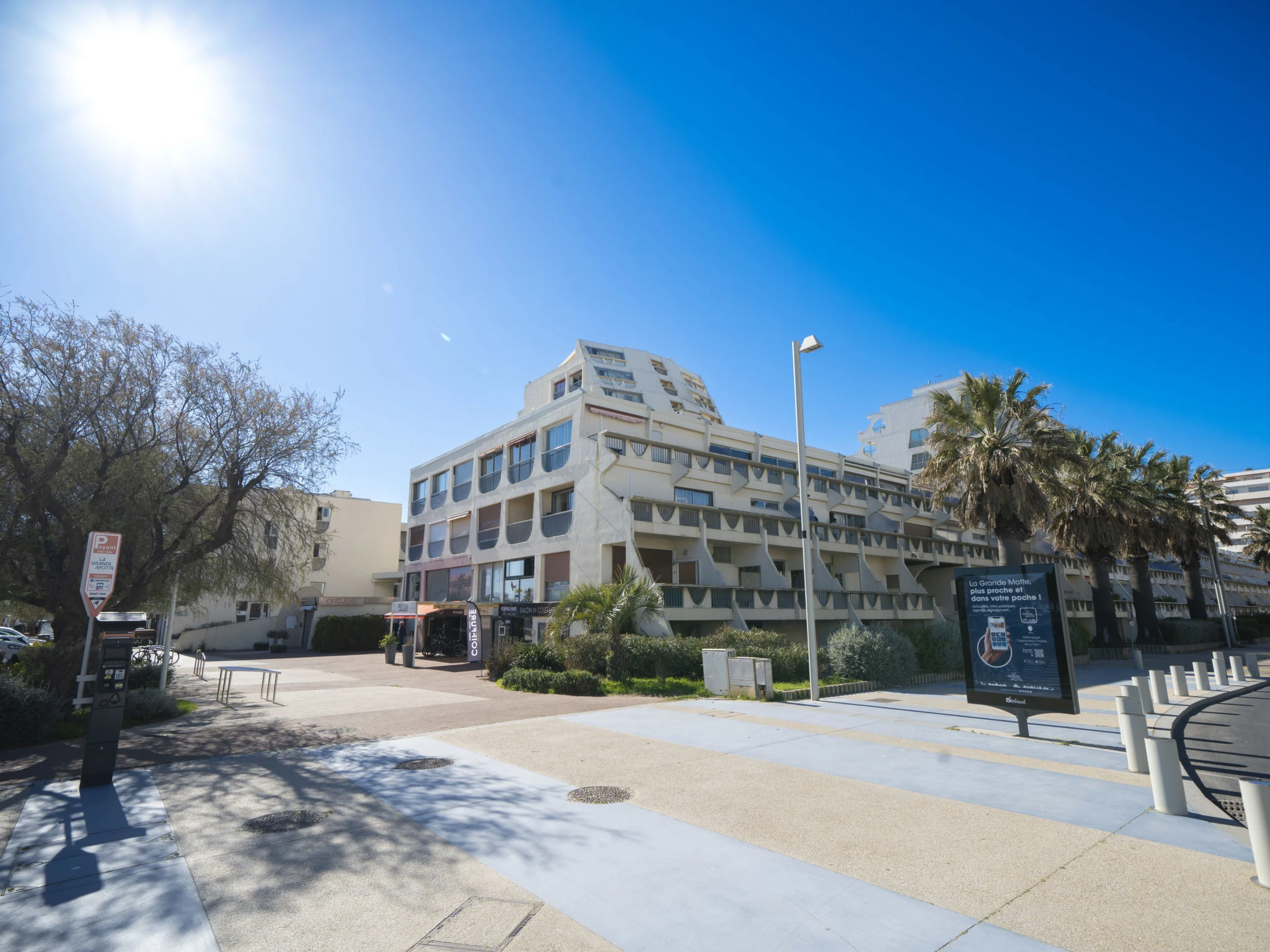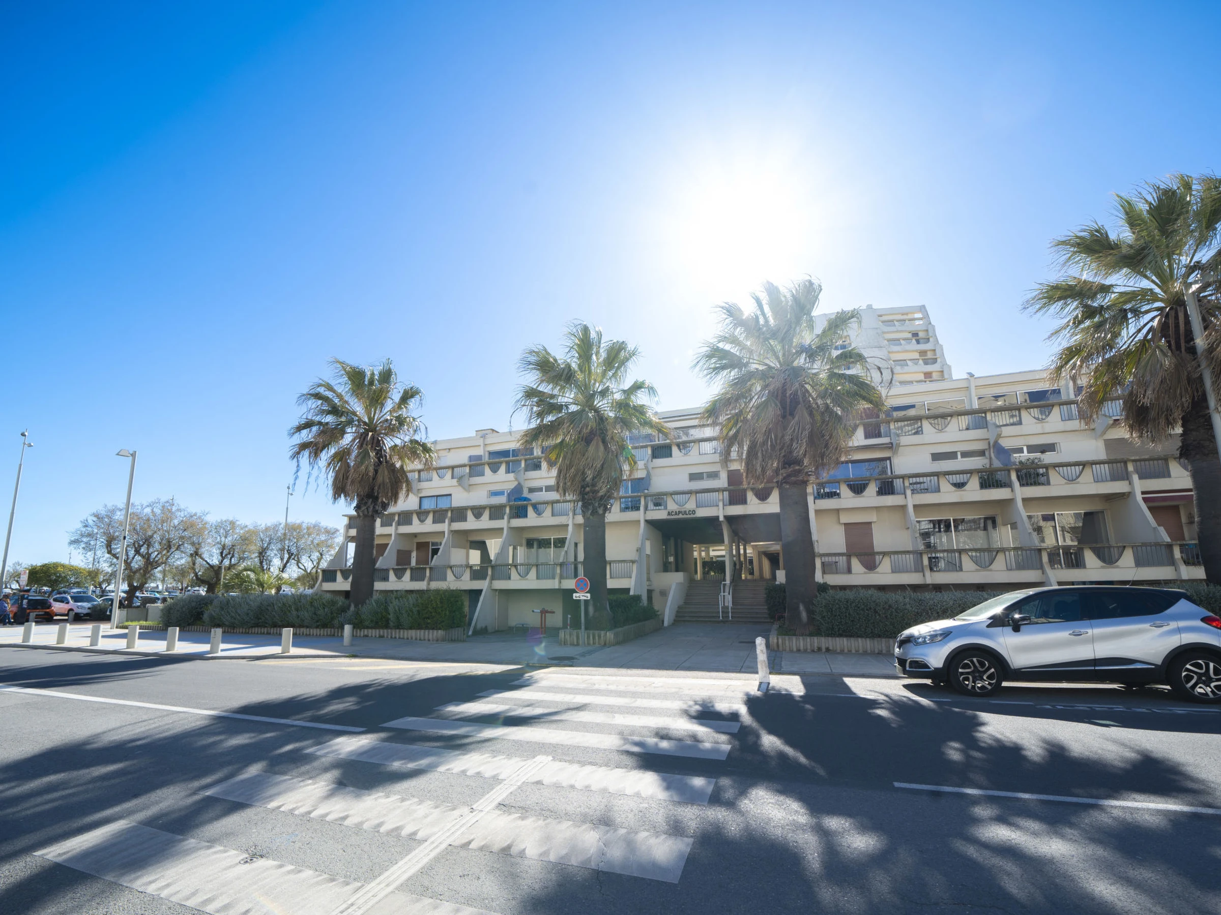 Beautiful residence "Acapulco", 9 storeys. In the centre of La Grande Motte, 100 m from the sea, 50 m from the beach. In the complex: lift. Public parking on the road. Shop, grocery, restaurant 50 m, bar 20 m, bakery 70 m, café 20 m, bicycle rental 70 m, bus stop 100 m, sandy beach 50 m, indoor swimming pool 1.5 km, thermal baths "Thalassothérapie" 1 km. Sports harbour 50 m, golf course (18 hole) 1.5 km, tennis 1.5 km, riding stable 2 km, cycle lane 500 m. Nearby attractions: Seaquarium de Le Grau du Roi 10 km, Les remparts d'Aigues Mortes 12 km, Les Saintes Maries de la Mer 40 km. Please note: entertainment in the season. The keys‘ handover takes place by the agency in La Grande Motte, 2 km. Airfield 20 km from the property. Please note: shops below the building. .