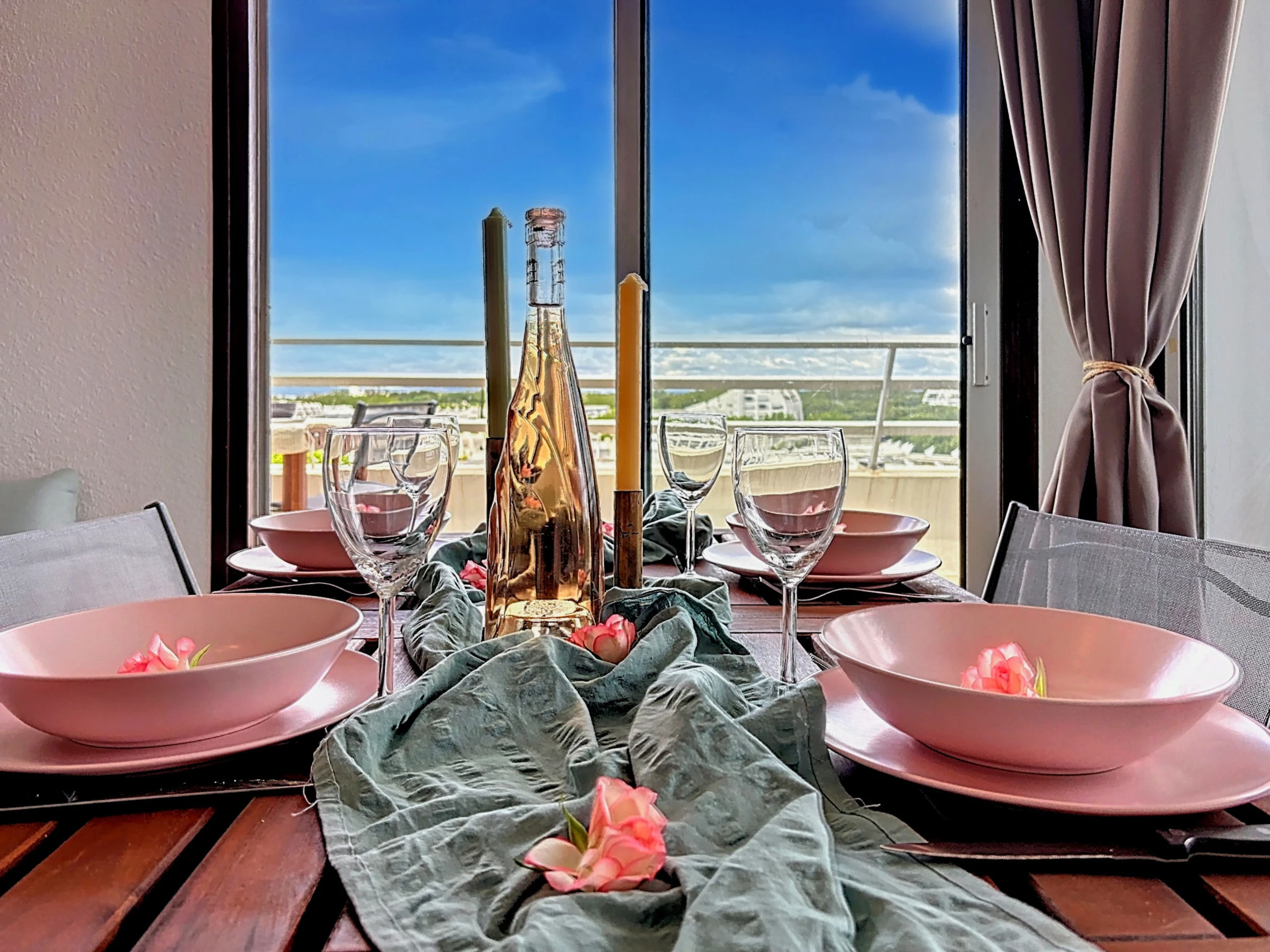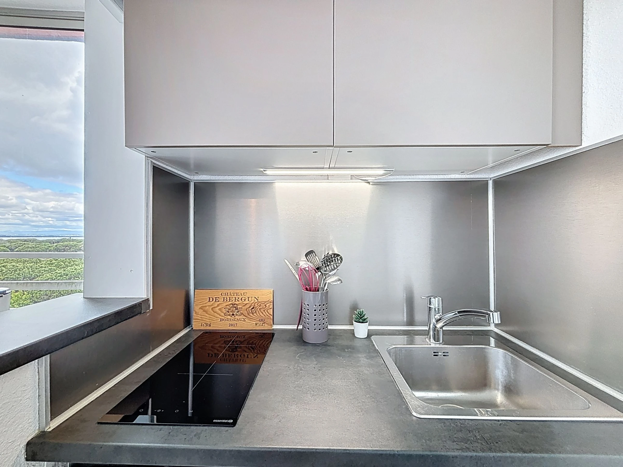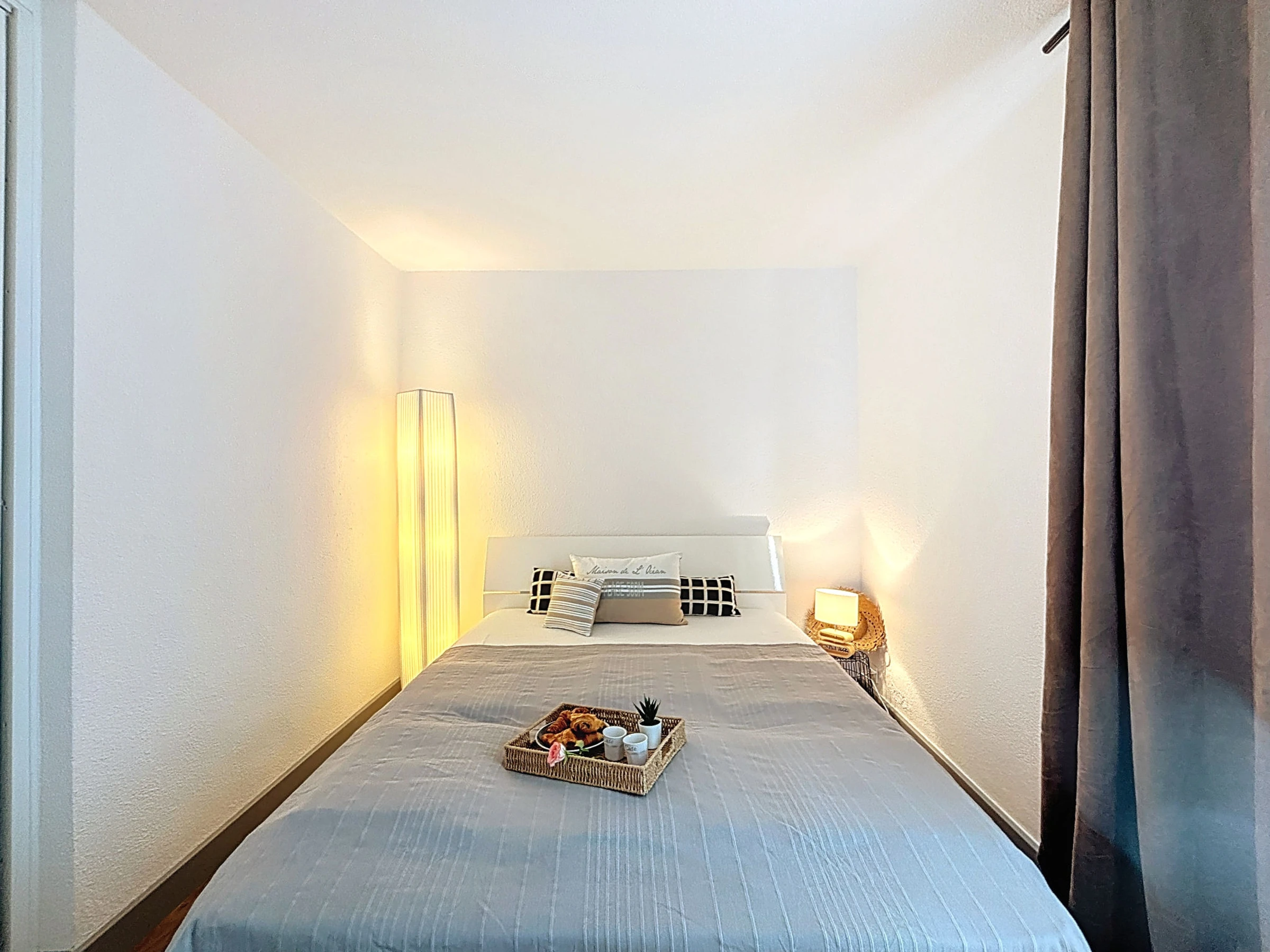 2-room apartment 40 m2 on 6th floor, south-west facing position. Beautiful furnishings: living/dining room with 1 sofabed (140 cm, length 190 cm), TV and air conditioning. Exit to the terrace. 1 room with 1 french bed (1 x 160 cm, length 200 cm). Kitchenette (2 ceramic glass hob hotplates, toaster, kettle, electric coffee machine, Capsules for coffee machine (Nespresso et filtre) extra, combination microwave). Shower, sep. WC. Electric heating, air-conditioning. Large terrace 24 m2, south facing position and west facing position. Terrace furniture, electric barbecue. Panoramic view of the sea and the countryside. Facilities: washing machine. Internet (WiFi, extra). Garage space n 6B6. Please note: non-smokers only. Smoke alarm. Offer by a private individual according to Art. 155, IV of CGI. [hidden]