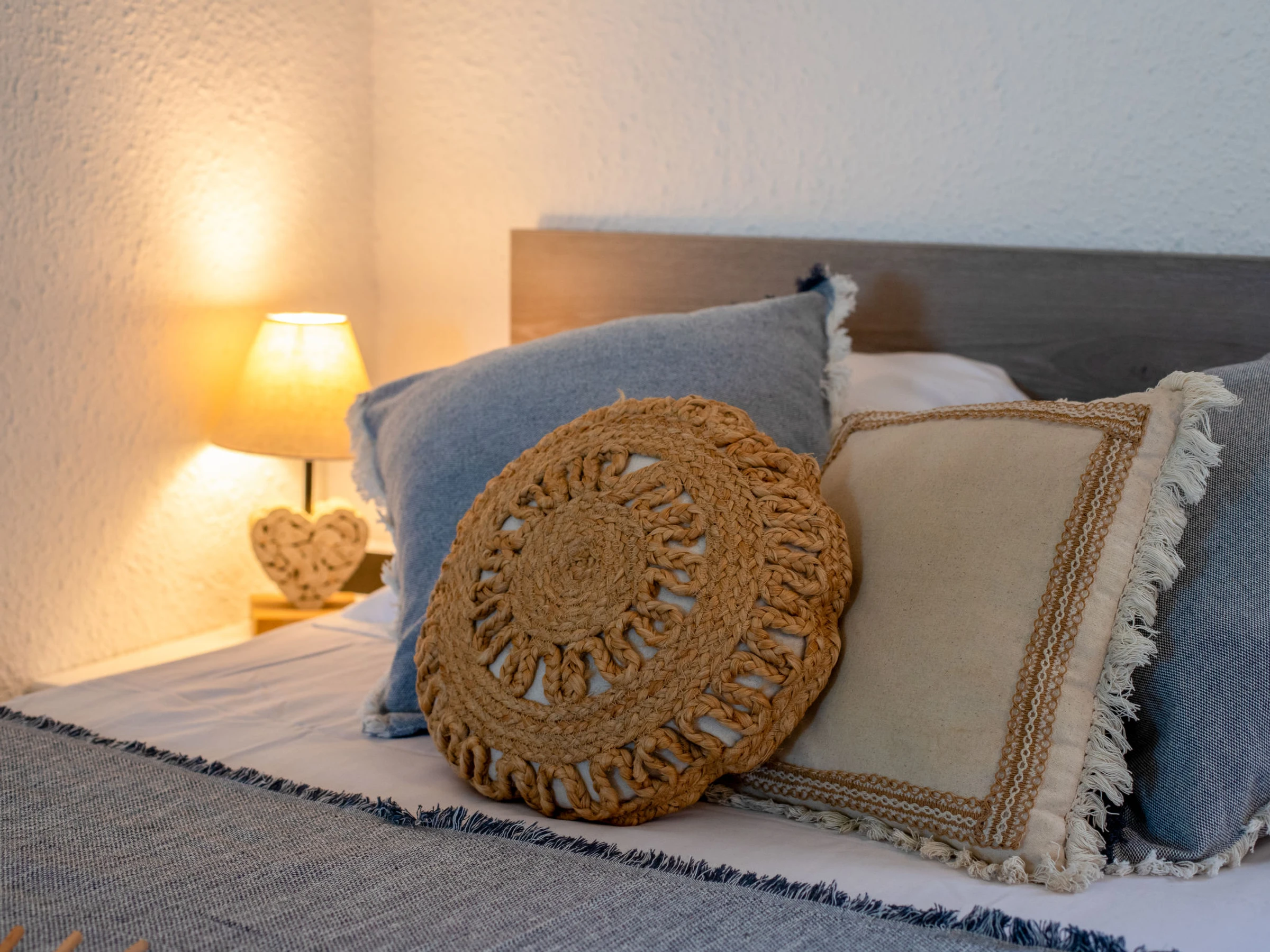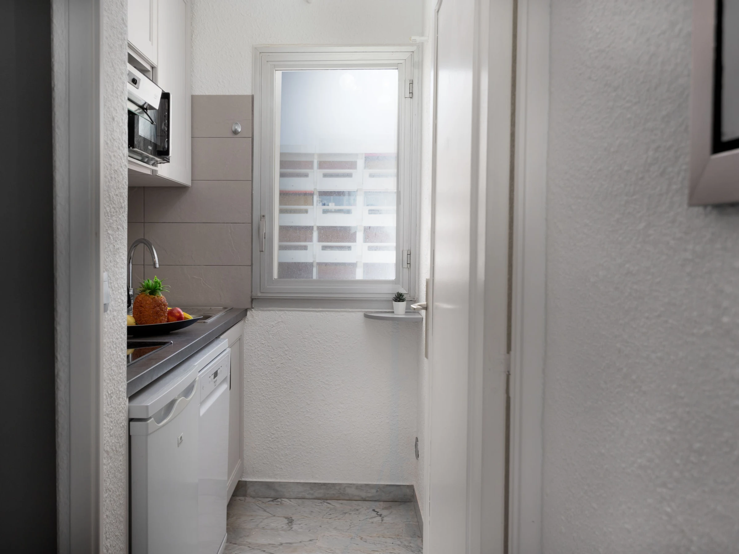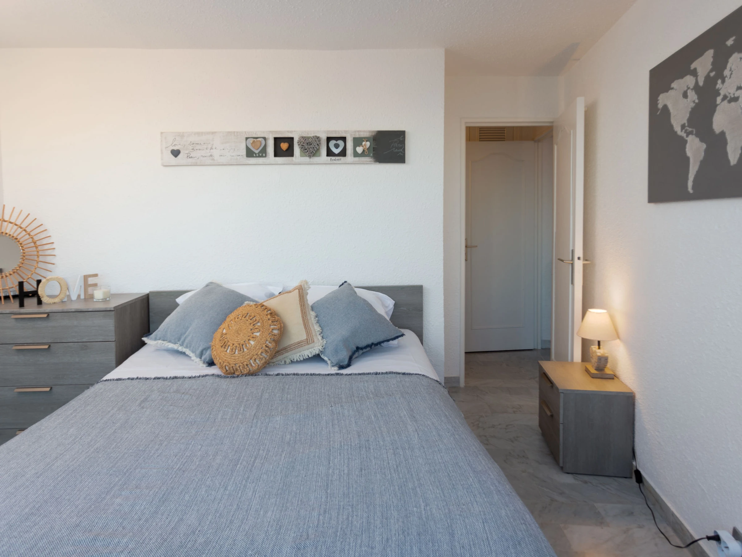 3-room apartment 50 m2 on 4th floor, south-east facing position. Fully renovated, comfortable and modern furnishings: living/dining room with 1 double sofabed (140 cm), TV (flat screen). 1 room with 1 french bed (160 cm). 1 room with 1 french bed (140 cm). Small kitchen (dishwasher, 4 induction hot plates, freezer, combination microwave). Shower/WC. Air-conditioning. 2 small terraces, south-east facing position. Terrace furniture. Very beautiful view of the sea and the swimming pool. Facilities: washing machine. Internet (WiFi, extra). Parking (roofed). Please note: smoke alarm.