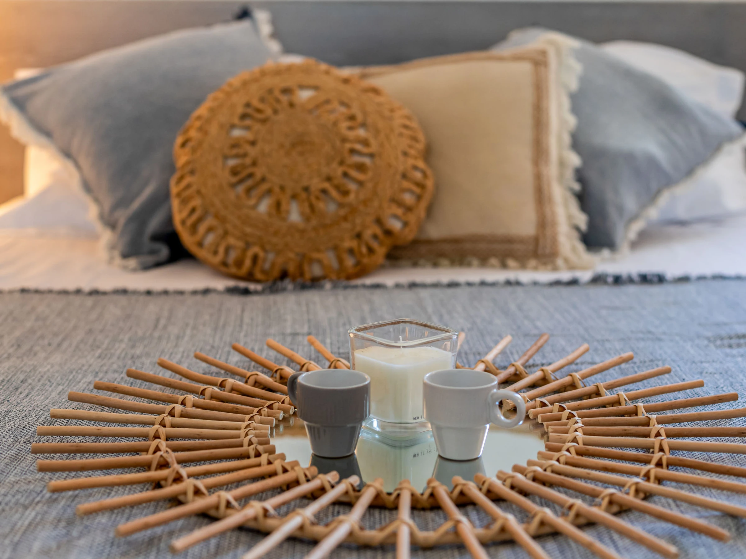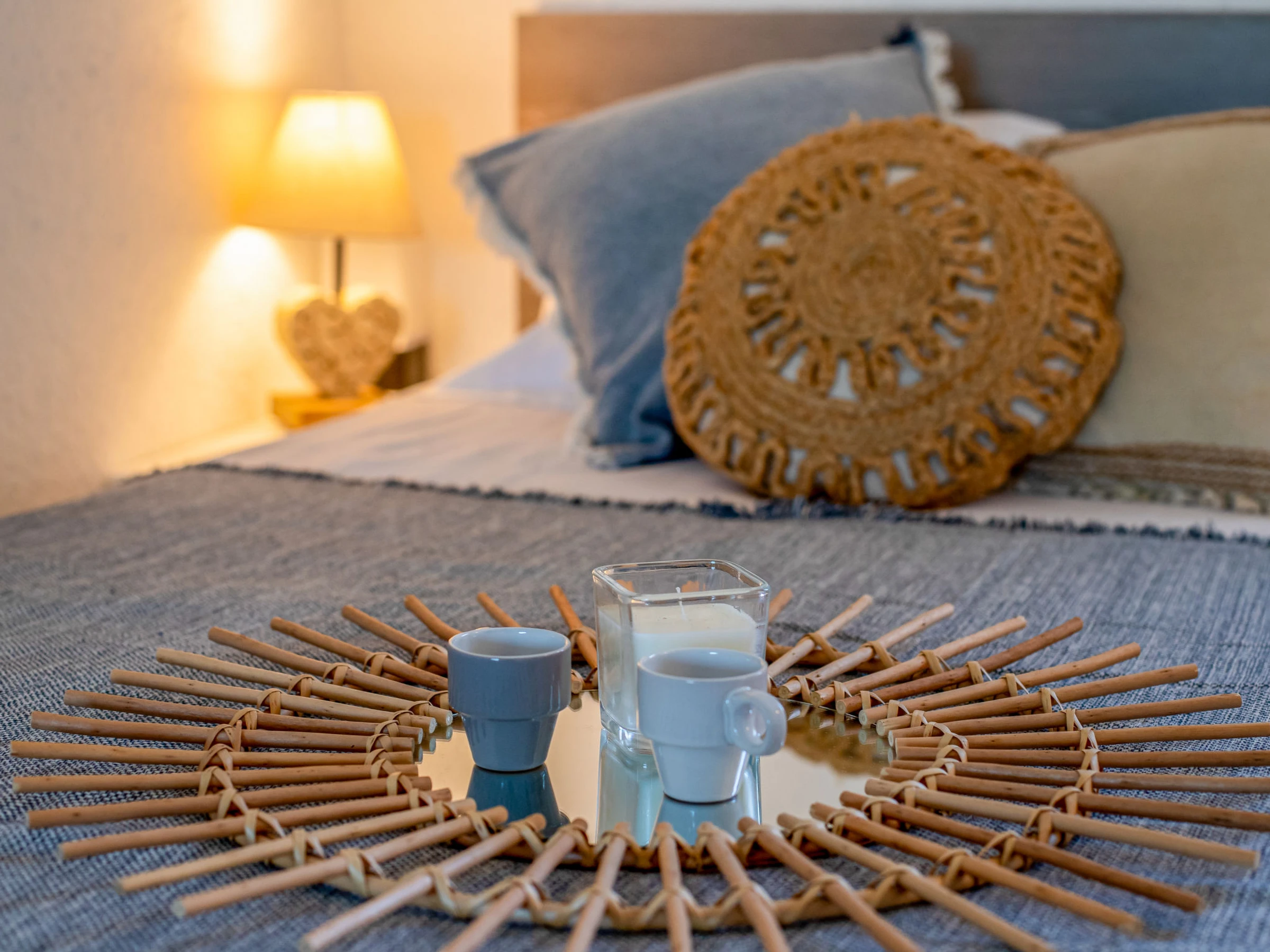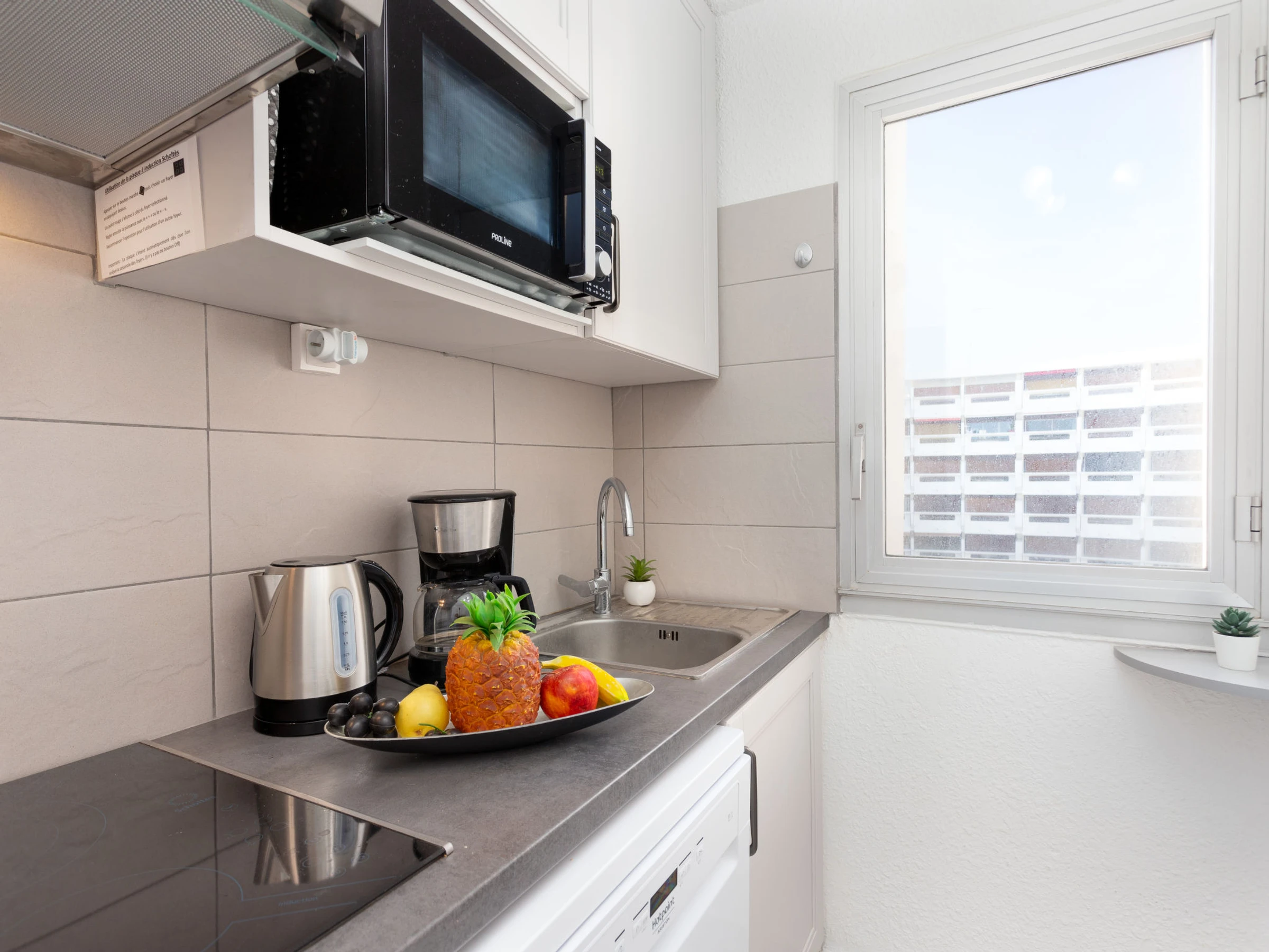 3-room apartment 50 m2 on 4th floor, south-east facing position. Fully renovated, comfortable and modern furnishings: living/dining room with 1 double sofabed (140 cm), TV (flat screen). 1 room with 1 french bed (160 cm). 1 room with 1 french bed (140 cm). Small kitchen (dishwasher, 4 induction hot plates, freezer, combination microwave). Shower/WC. Air-conditioning. 2 small terraces, south-east facing position. Terrace furniture. Very beautiful view of the sea and the swimming pool. Facilities: washing machine. Internet (WiFi, extra). Parking (roofed). Please note: smoke alarm.