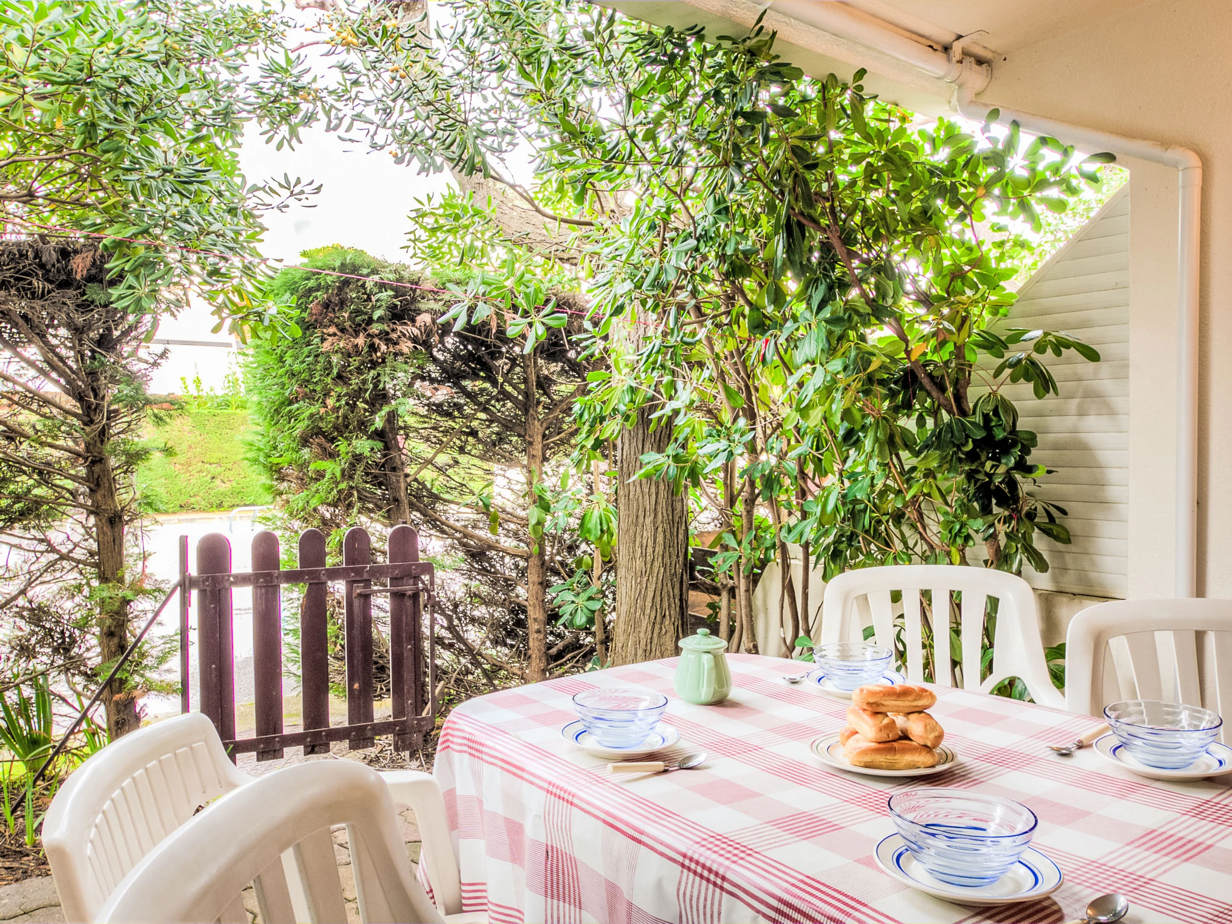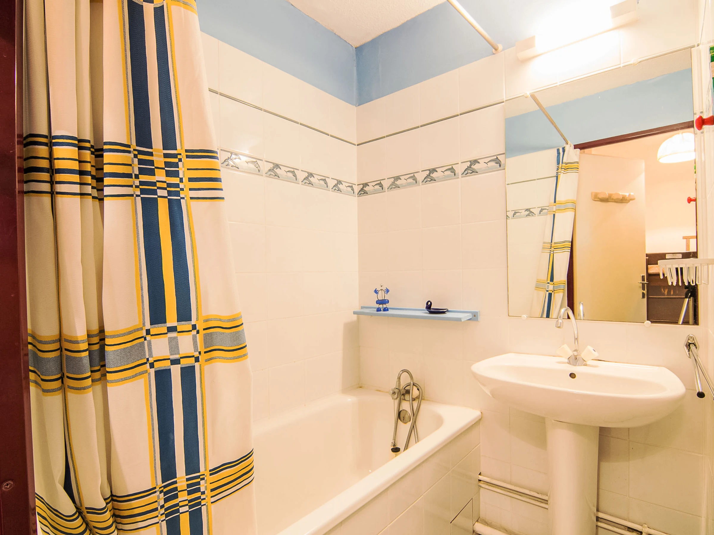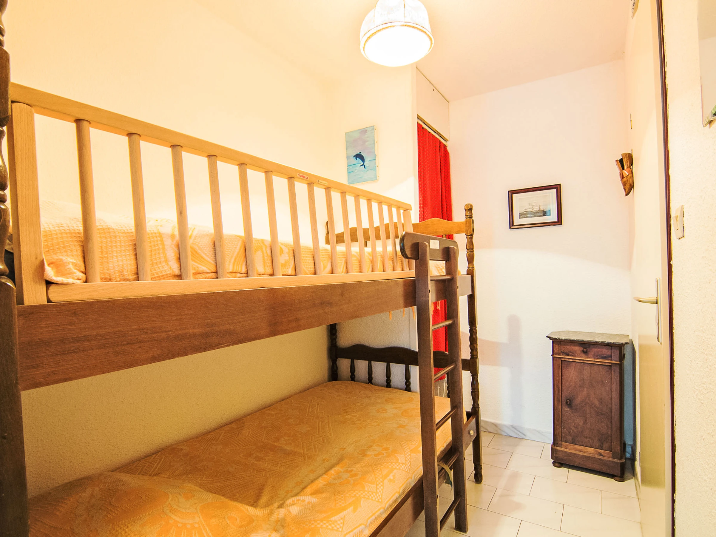 1-room studio 20 m2, on the ground floor. Living/dining room with 1 double sofabed (2 x 80 cm, length 190 cm), TV (flat screen). Entrance hall with 1 x 2 bunk beds (90 cm, length 190 cm). Kitchenette (2 hot plates, toaster, kettle, microwave, electric coffee machine). Bath/WC. Terrace 12 m2. Terrace furniture. Facilities: Internet (WiFi, extra). Parking. Please note: apartment carpark side. Smoke alarm.
