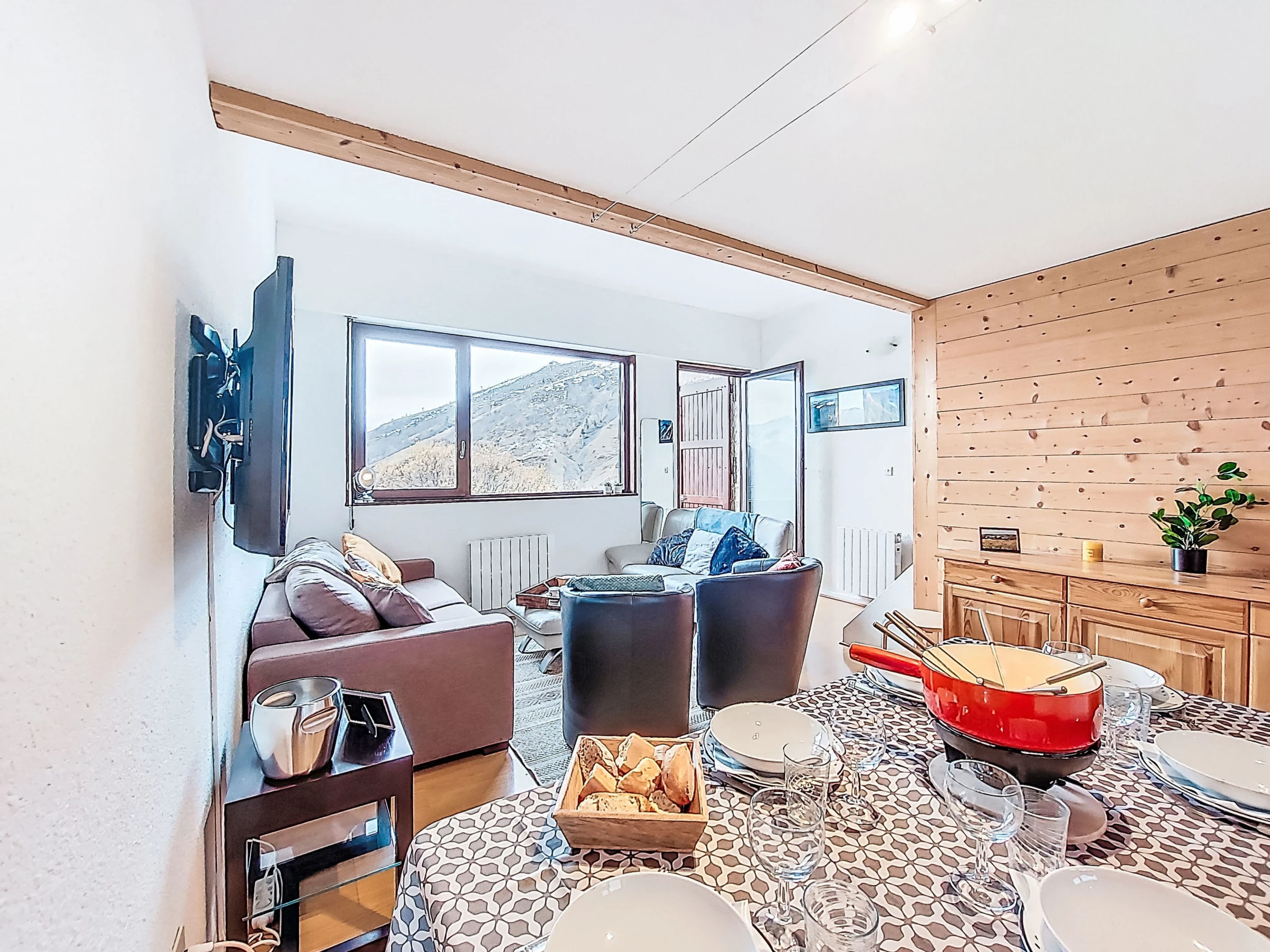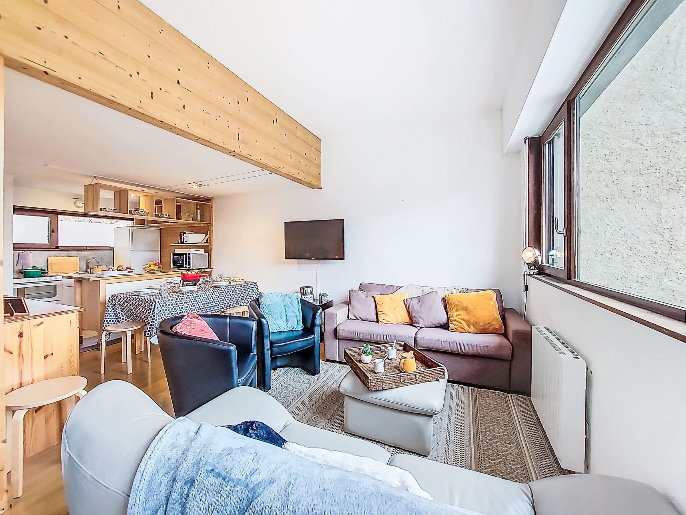 "LA COMBE AUX OURS", 4-room apartment 90 m2 on 3 levels on 1st floor, south-east facing position. Comfortable furnishings: living/dining room with TV (flat screen). Exit to the balcony. Kitchen-/living room (oven, dishwasher, 4 ceramic glass hob hotplates, toaster, kettle, microwave, freezer, electric coffee machine, Capsules for coffee machine (NESPRESSO) extra, raclette grill, fondue Set (cheese)) with bar. Sep. WC. On the lower ground floor: 1 room with 1 french bed (1 x 160 cm, length 190 cm), shower/WC. Upper floor: 1 room with 1 french bed (1 x 160 cm, length 190 cm). 1 room with 1 x 2 bunk beds (80 cm, length 190 cm). Shower/WC. Parquet floors. Balcony 6 m2, south-east facing position. Balcony furniture. Marvellous view of the mountains. Facilities: washing machine, dryer, baby cot for up to 2 year olds, hair dryer. Parking space n 5 (1 car). Please note: 1 pet/ dog allowed. Smoke alarm. Offer by a private individual according to Art. 155, IV of CGI.