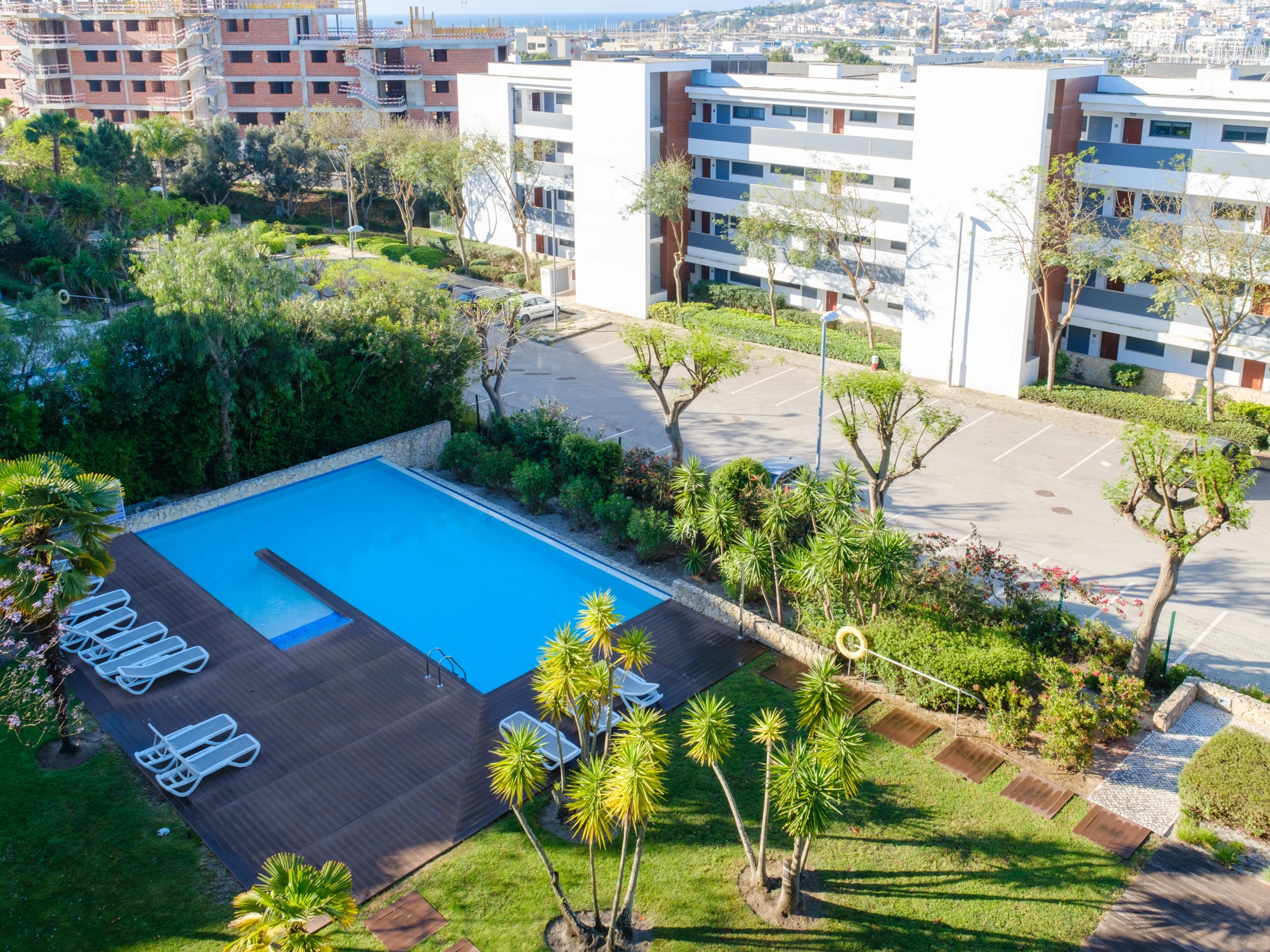 Enjoy the shared outdoor pool and the beautifully landscaped garden, where you can relax on the sun loungers. The apartment's central heating and air conditioning ensure your comfort throughout the year.