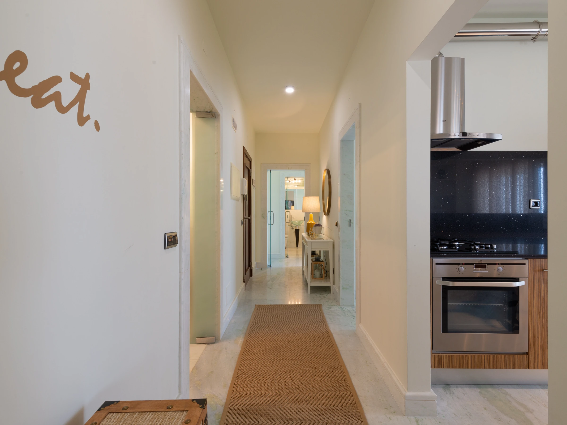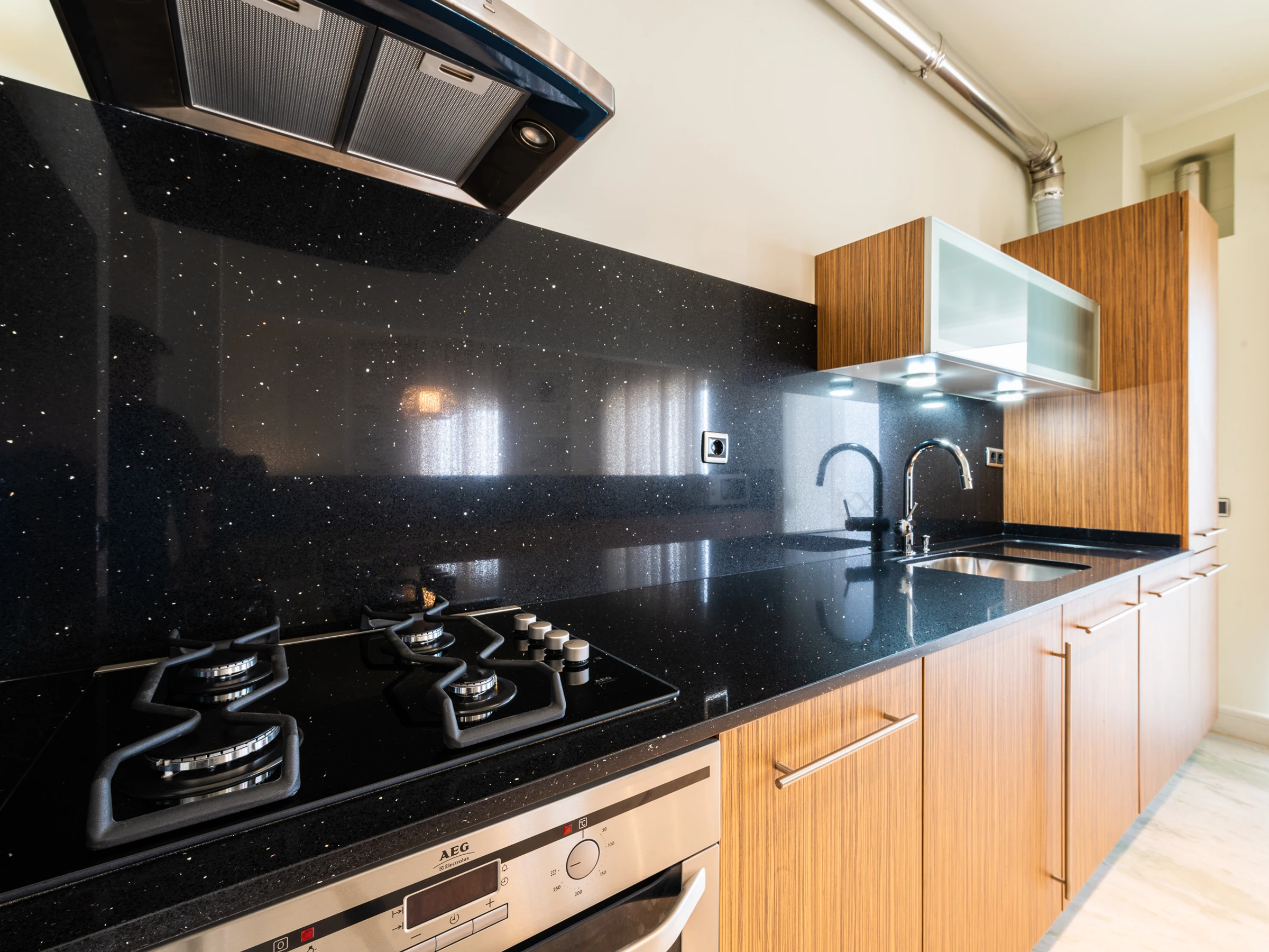 The apartment features two well-appointed bedrooms, each with ample storage space and comfortable beds, ensuring a restful night's sleep. The two modern bathrooms, one with a bathtub, cater to your every need. The open-plan kitchen and dining area are fully equipped with all the necessary appliances and utensils, making it easy to prepare delicious meals.