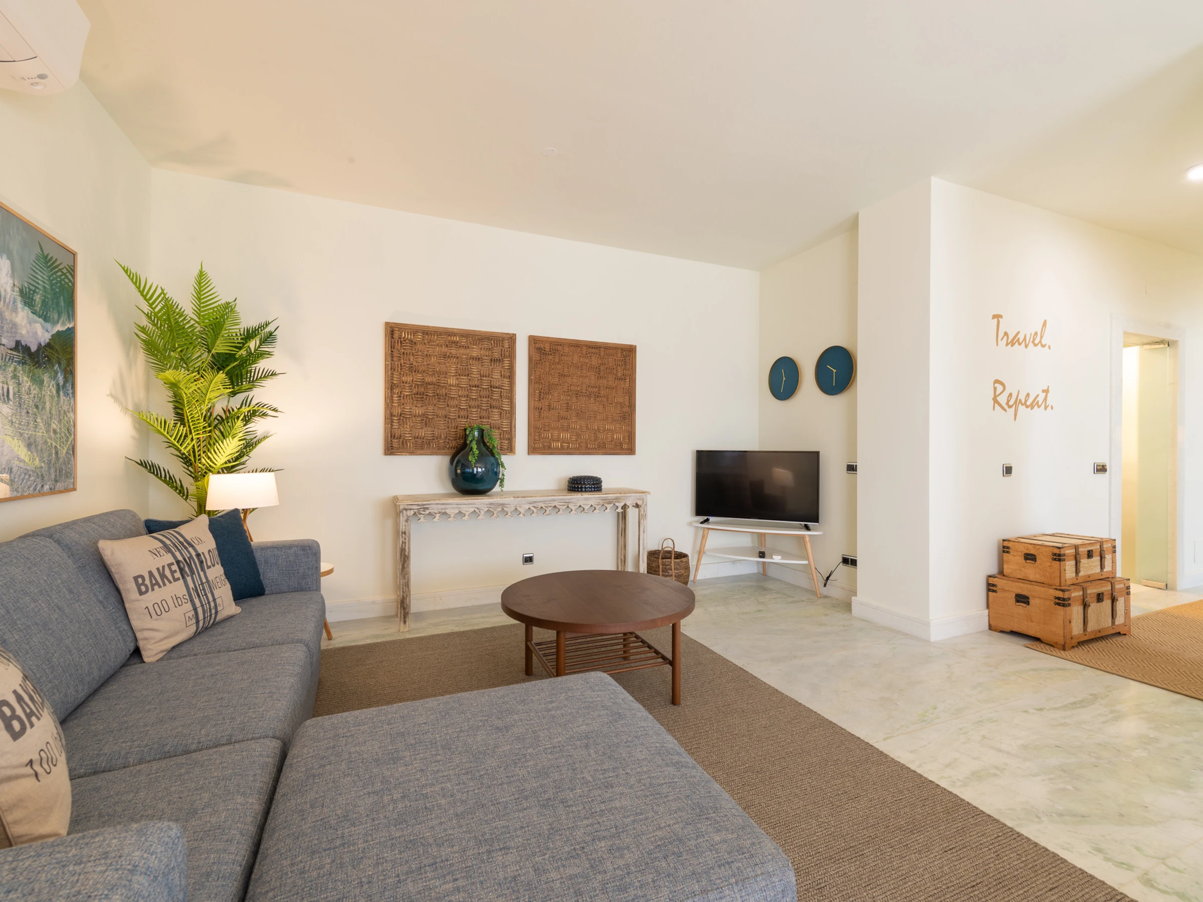 Enjoy the sea breeze and stunning ocean views from the private balcony, the perfect spot to unwind after a day of adventure. The apartment also boasts a cosy living room, complete with a flatscreen TV and comfortable seating, providing a comfortable space to relax and spend quality time with your loved ones.