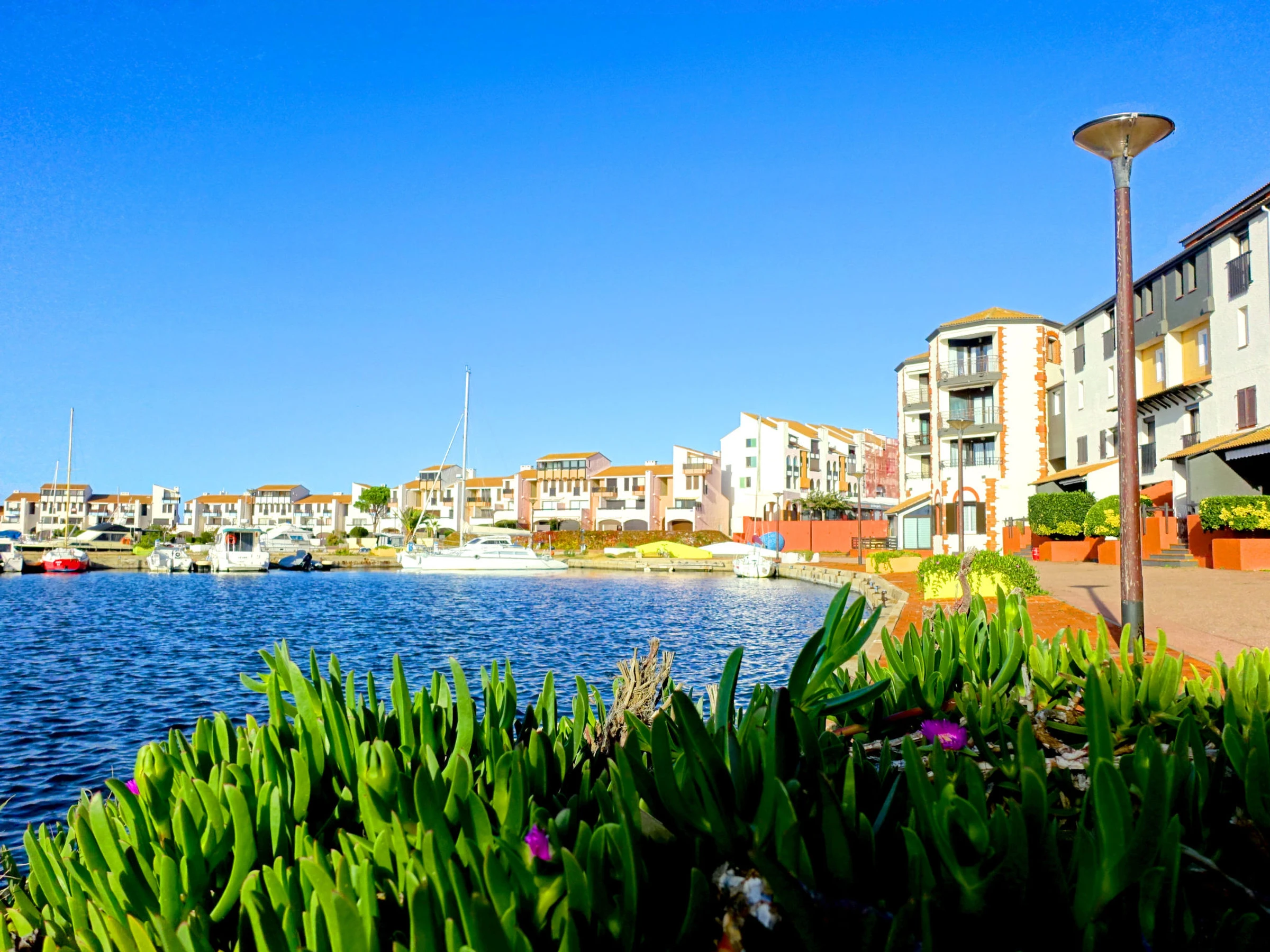 La Coudalère 5 km from Barcarès centre: As part of the water restriction measures linked to drought in some of our departments, please note that the rental swimming pool may be closed by prefectural decree. Residence "Palmyra", 2 storeys. 2.8 km from the sea, 50 m from the lake, 2.8 km from the beach. For shared use: natural pond, 2 swimming pools heated (10 x 15 m, seasonal availability: [hidden] - [hidden] Children's pool, tennis (extra), basketball (extra), children's playground (slide), parking. Shop, grocery 400 m, supermarket 6 km, restaurant, bar, bakery, café, bicycle rental 400 m, bus stop "La Coudalère" 950 m, railway station "Perpignan" 22 km, sandy beach 2.5 km, diving center 3.5 km. Sailing school 400 m, minigolf 1.3 km, riding stable 12 km, cycle lane 5 km. Nearby attractions: Réserve Africaine de Sigean 41 km, Aqualand Port Leucate 7 km, parcours aventure 7 km, téléski nautique site des dosses 5 km, Spot de windsurf 20 m, Cinéma 5 km. Well-known lakes can easily be reached: Lac de villeneuve de la Raho 34 km. Hiking paths: Sentier du guetteur 8 km, La forteresse de Salses 15 km, Sentier du littoral Collioure 40 km. Please note: car recommended, no lift. Entertainment in the season. The keys‘ handover takes place by the agency Barcares 3 km. The apartment is located in a zone with limited traffic. The photograph shows a typical example. Additional accommodations can be booked.