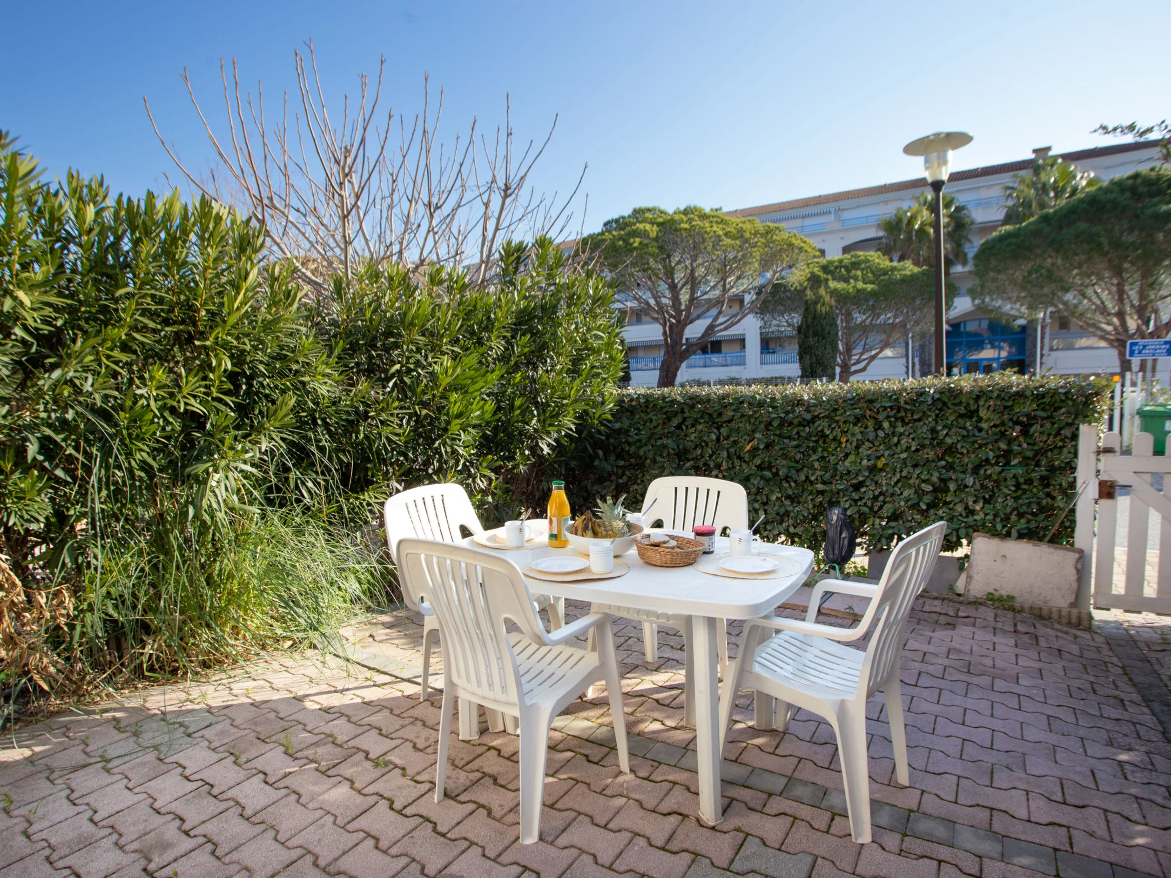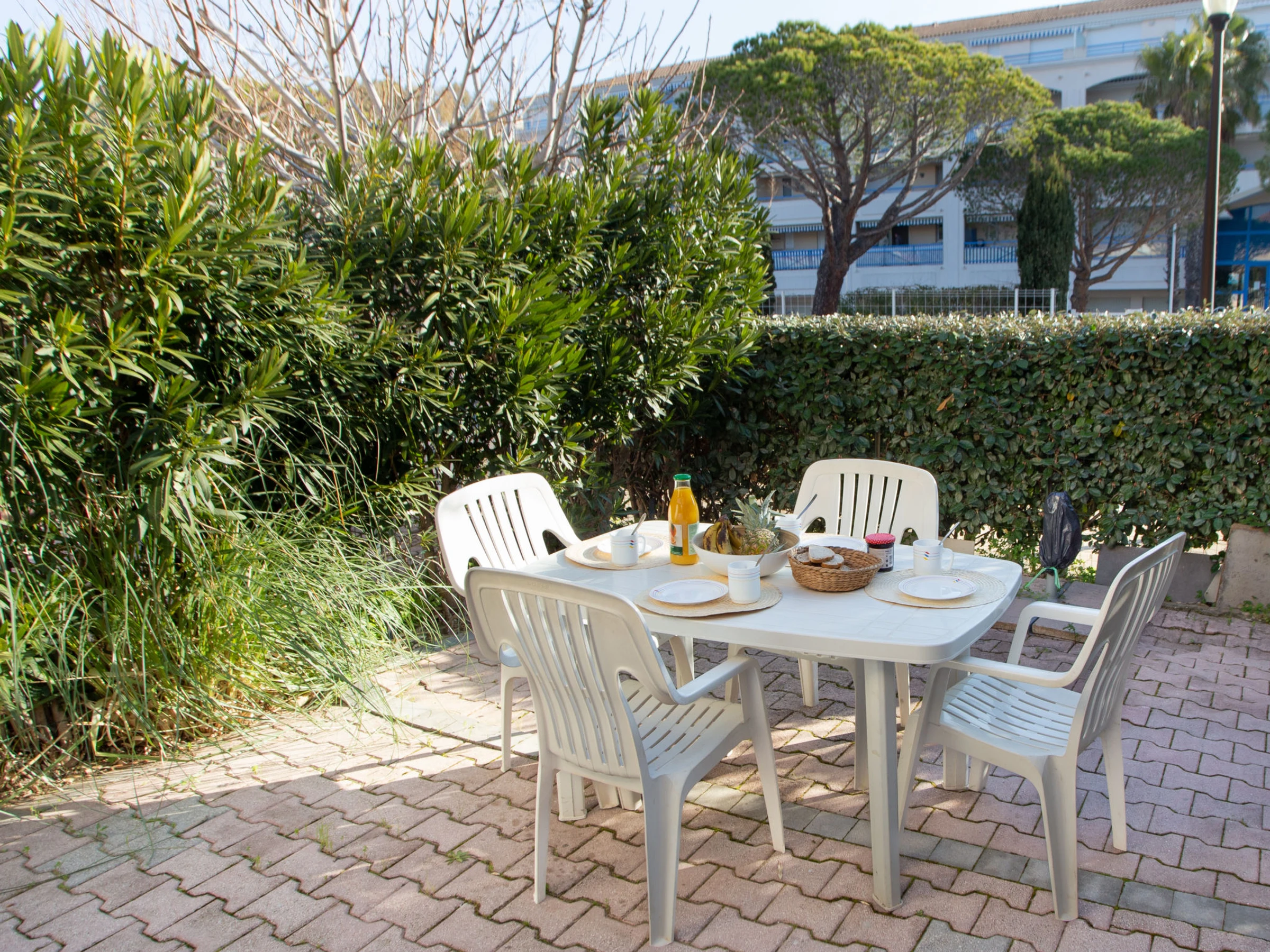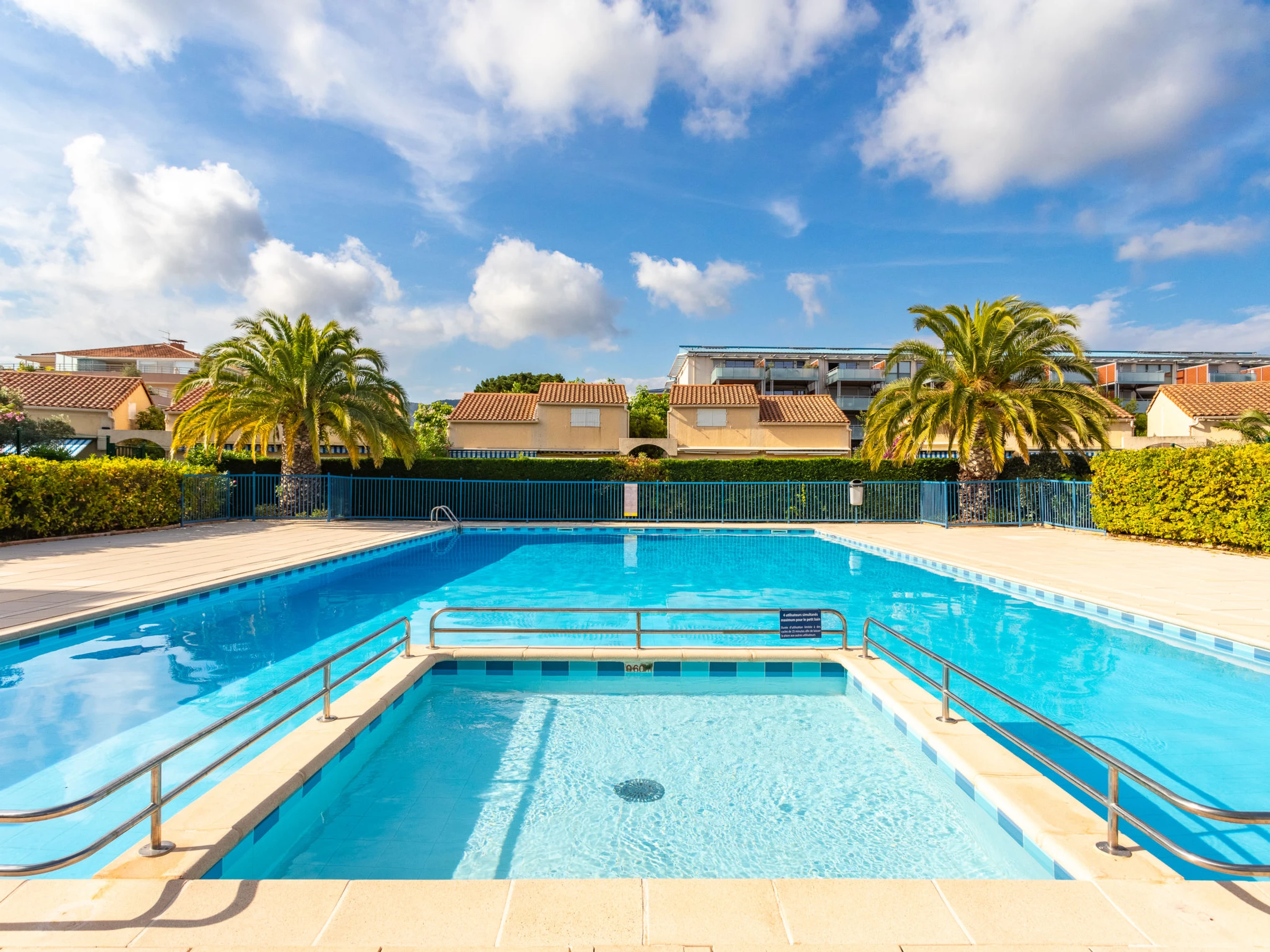 A deposit of EUR 50 per person is charged for entry to the swimming pool, refundable on departure. Residence "Le Domaine d'Azur", built in 1990. In the district of Grand Jardin 900 m from the centre of Le Lavandou, 800 m from the sea, 800 m from the beach. For shared use: swimming pool (10 x 17 m, depth 120 - 200 cm, seasonal availability: [hidden] - [hidden] Public parking 80 m on the road. Shop, grocery, supermarket 800 m, restaurant 1 km, bus stop "Lavandou Gare routière" 900 m, sandy beach 800 m. Sports harbour 2 km, tennis 1 km, minigolf 600 m. Nearby attractions: Saint Tropez 40 km, Magic World 27 km, Parc Olbius Riquier 22 km, Le Jardin des Méditerranées 16 km. Hiking paths: Sentiers du Littoral. Please note: no lift. Residence with electric gates. The keys‘ handover takes place by the agency in Le Lavandou.