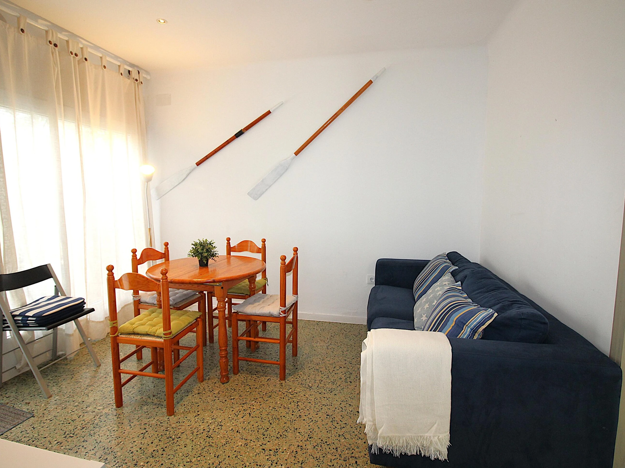 Cozy apartment for 4 people, located on the ground floor. Located 100m from the beach of La Farella and close to the port and shops in the area. It has a large terrace to enjoy the good weather. It is distributed in a living-dining room, renovated kitchen, has two double bedrooms (one with a double bed and one with two single beds) and a bathroom with shower. Outdoor area with terrace and outdoor furniture. Communal parking space inside the building. Pets are not allowed. [hidden]-59