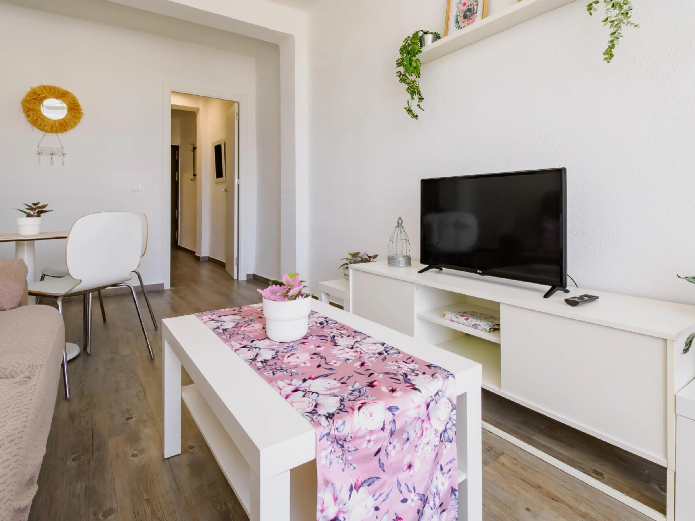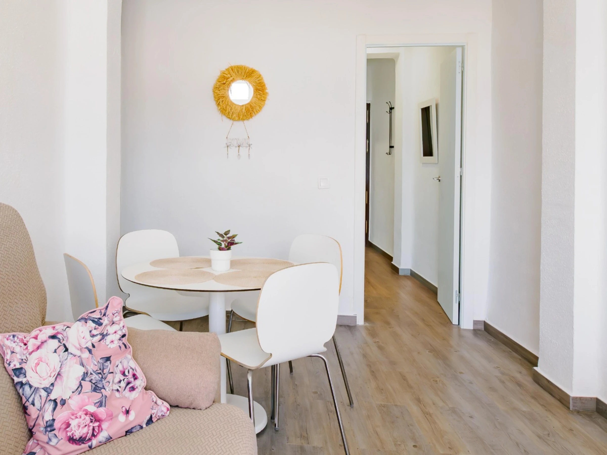 The dining room is bright and comfortable, equipped with a Smart TV, air conditioning and three fans, ideal for cooling down during the summer months. The fibre internet connection allows you to work or enjoy streaming without interruptions.