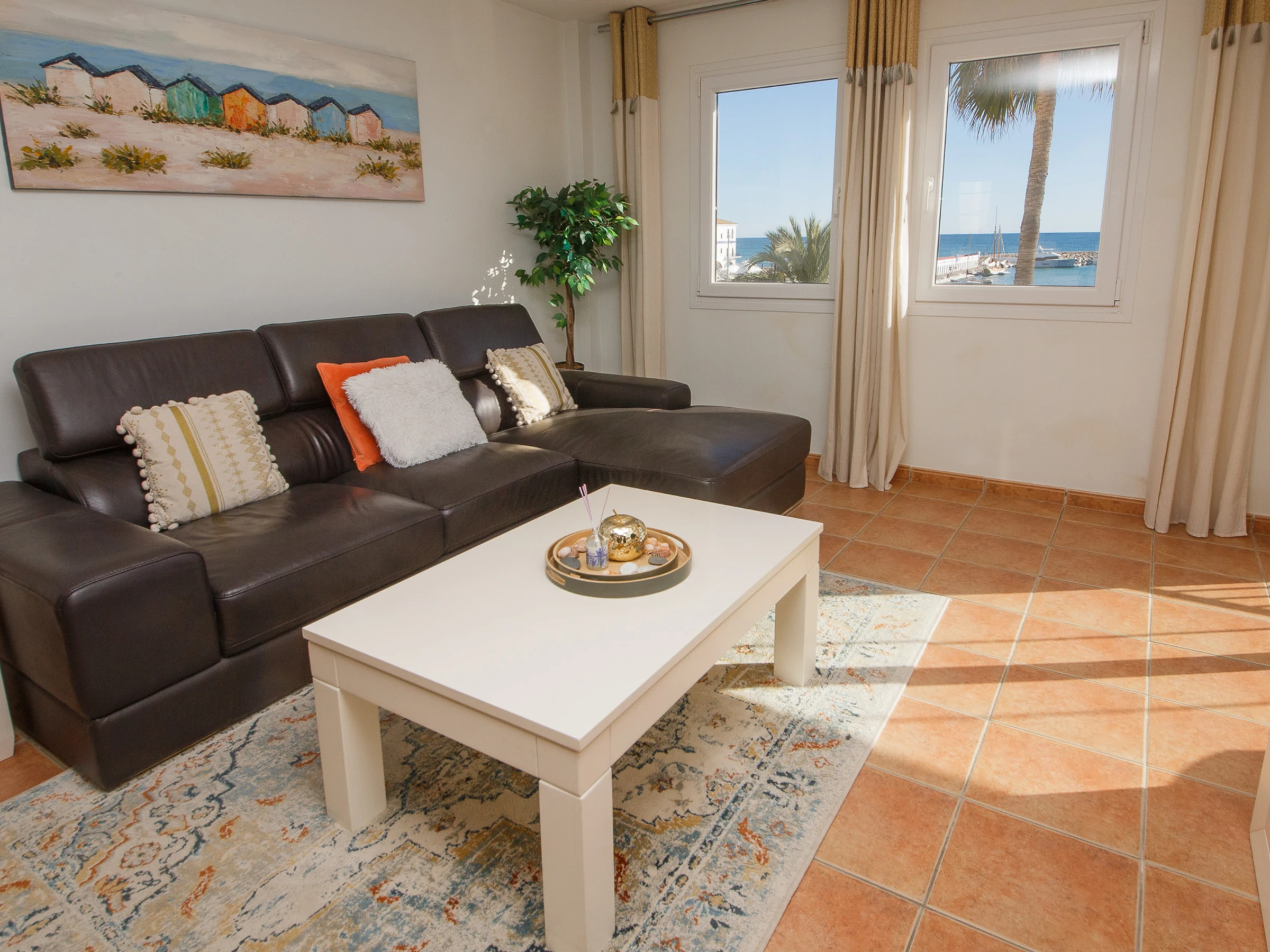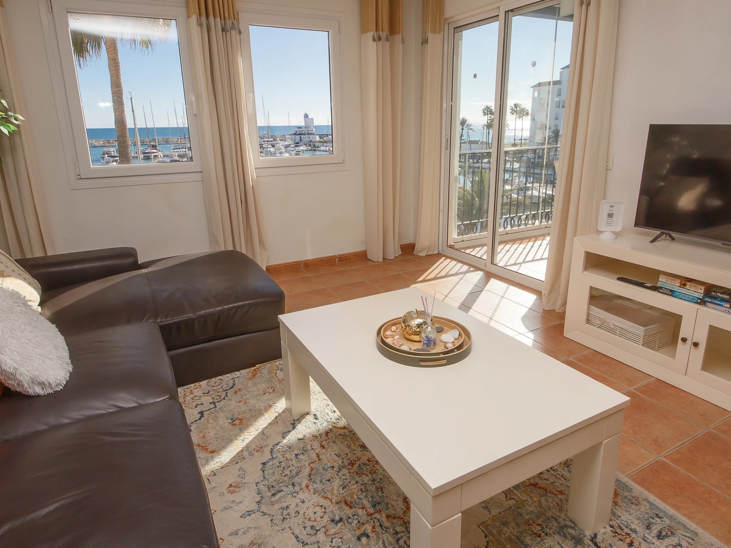 Two-bedroom, two-bathroom apartment located in the heart of Puerto de la Duquesa. The apartment has been renovated and has fantastic views of the marina. The apartment has WiFi, open plan kitchen and terrace with glass curtains that is furnished with a table and four chairs ideal for outdoor dining.