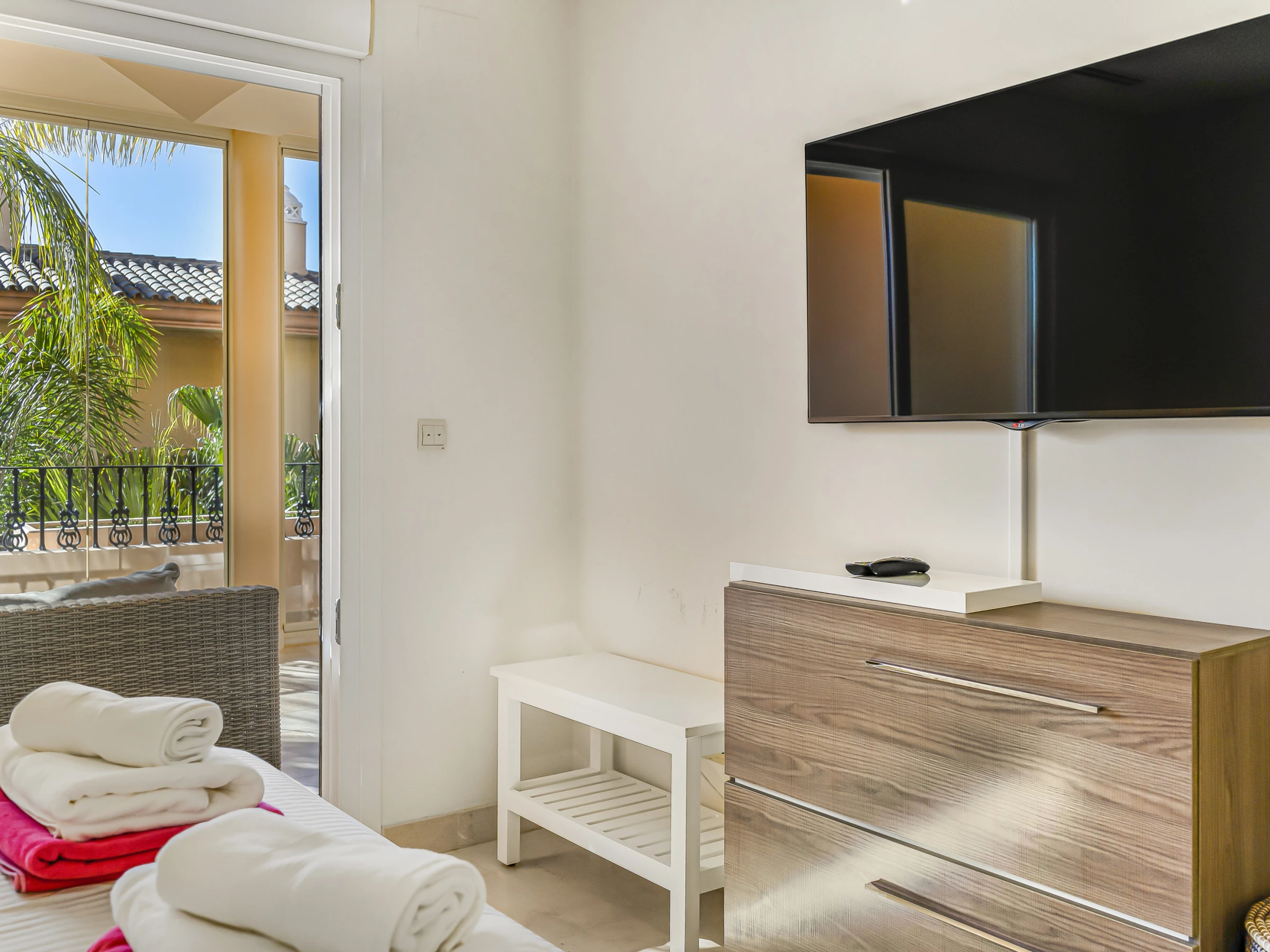 This superb ground floor apartment in the Vista Real community features a wonderful bright terrace and high-quality accommodation for four persons. The location in the hills surrounding the prestigious Golf Valley is perfect for holidays, with quick access by car to the best golf courses, beaches and hot spots along Marbella's coast. There are excellent restaurants within a few minutes’ drive and shops and supermarkets are all close by.