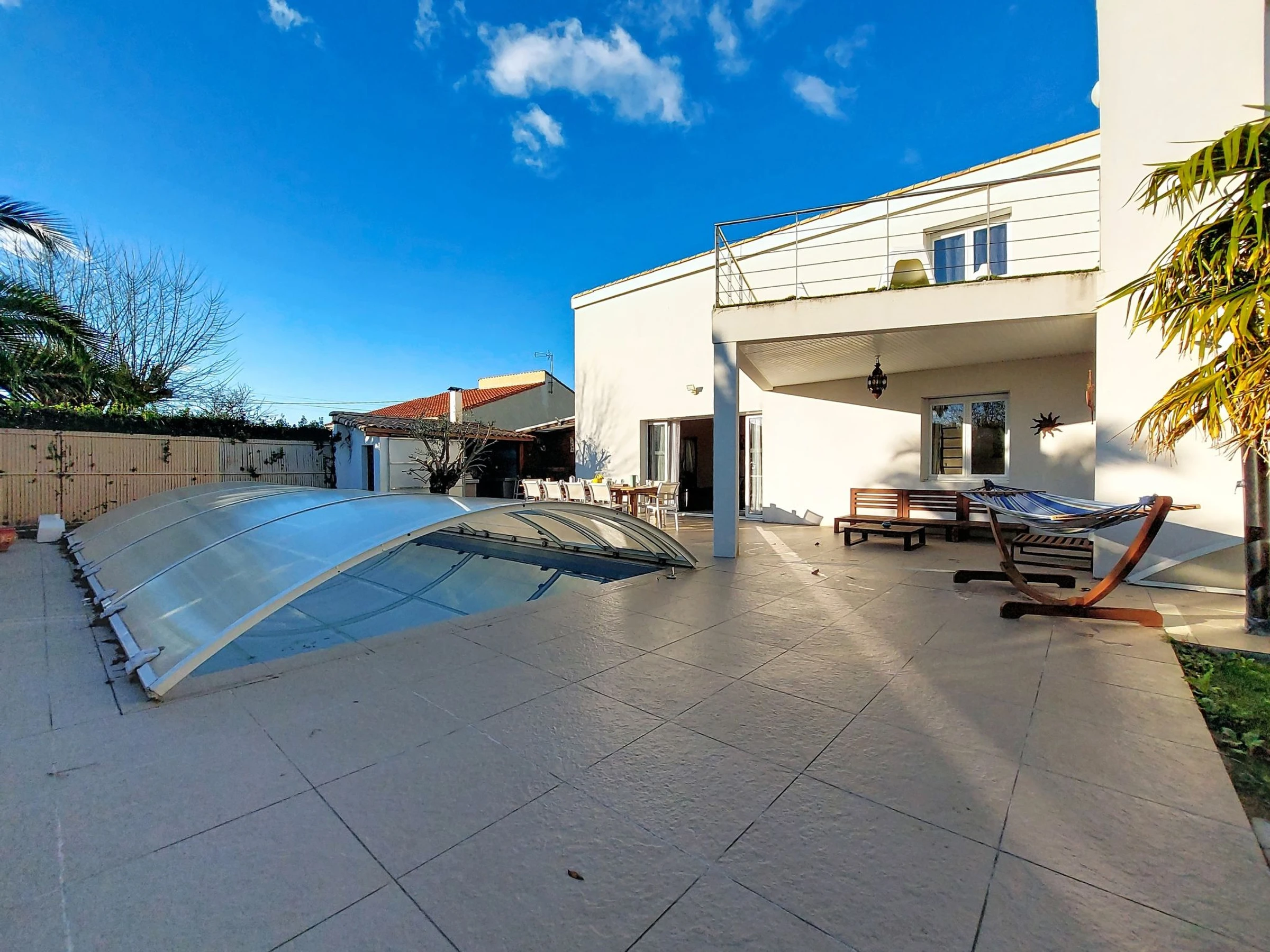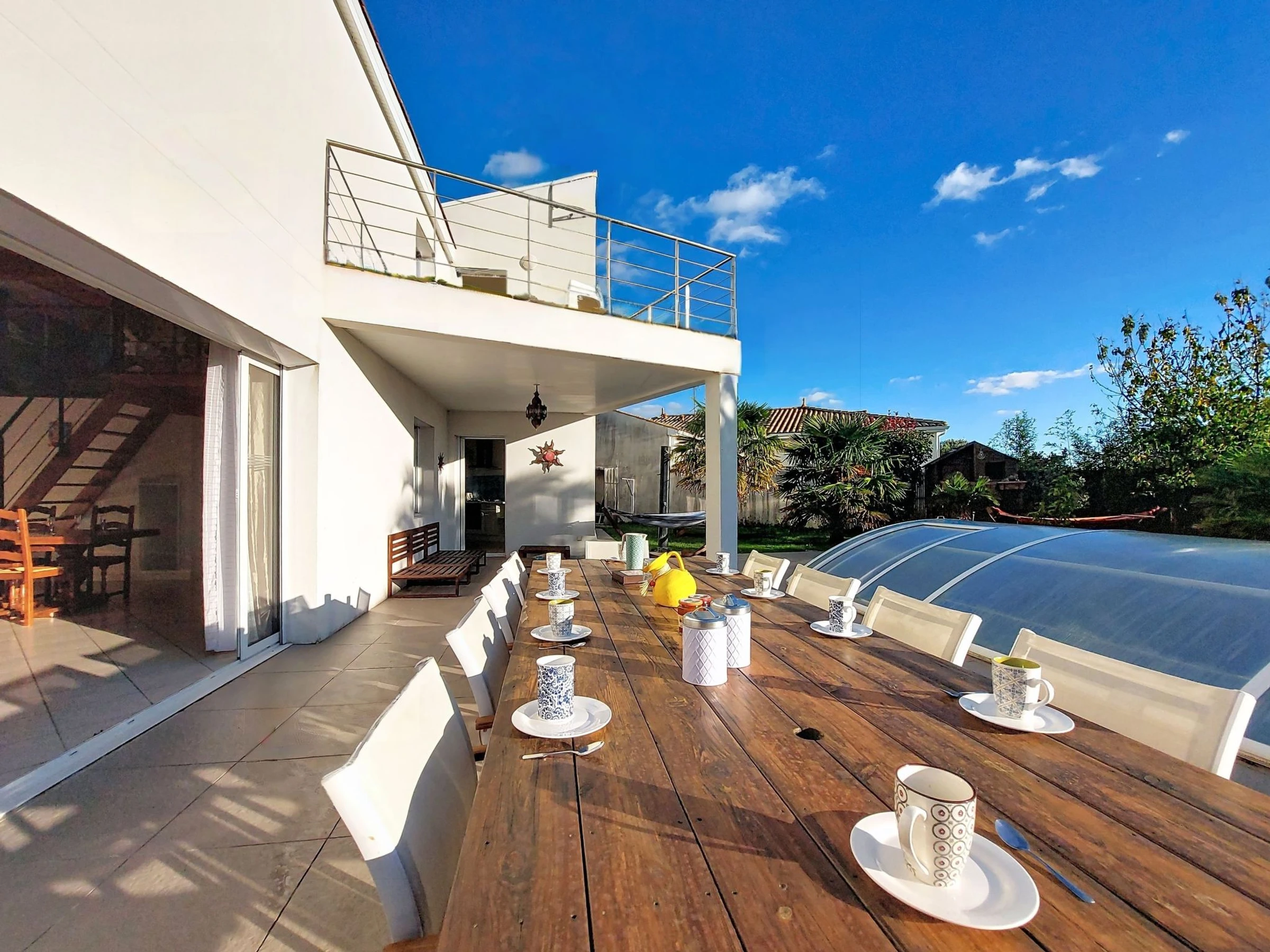 Meschers sur Gironde 6 km from Royan: Villa "Les Roselières", 2 storeys. In the hamlet Le Berceau, 5 km from the sea, 5 km from the beach. Private: property 750 m2 (fenced), trees, swimming pool heated, secured (8 x 4 m, depth 125 - 145 cm, seasonal availability: [hidden] - [hidden] Outdoor shower, table tennis, garden furniture, barbecue, barbecue house, pool maintenance by the owner/gardener. Shop 3.5 km, supermarket 3.5 km, restaurant 3.5 km, bakery 3.5 km, bus stop "Meschers sur Gironde - Vallée" 2 km, railway station "Royan" 8 km, sandy beach "Suzac" 5 km, thermal baths "Thalassotherapie Thalazur Royan" 12 m. Sports harbour 5 km, golf course (18 hole) 17 km. Nearby attractions: Bowling - Family Fun Park 3.5 km, Grottes de Matata 4.5 km, Grottes du Regulus 4.5 km, Le Parc de l'Estuaire 5 km, Talmont sur Gironde 9 km, Embarcadère Royan - Le Verdon 12 km. Please note: car recommended. The owner does not accept any groups. The keys‘ handover takes place by the agency in Vaux sur Mer, 12 km. Main road close by. Neighbourhood highly sensitive to noise. Quietness and good behaviour expected.