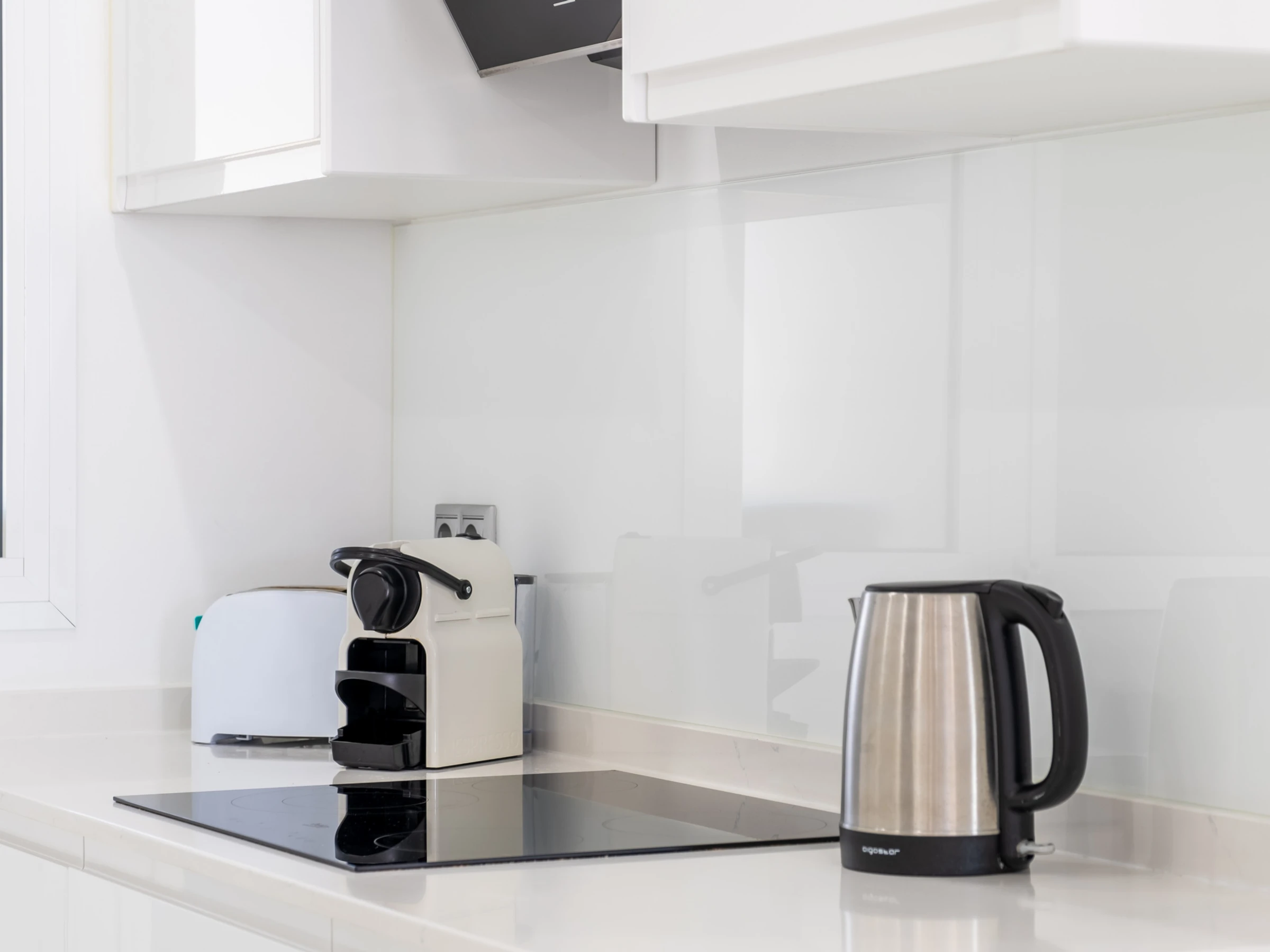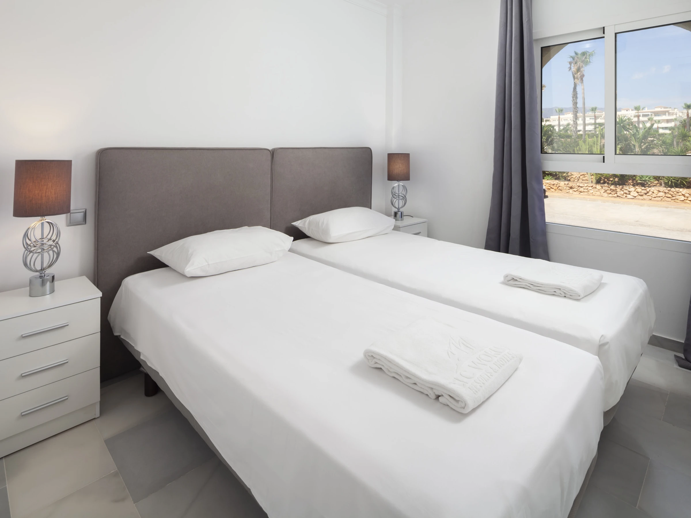 With 80 m² of elegance and comfort, the apartment offers two bedrooms —one with a double bed and another with two single beds—, with capacity for up to 4 guests. Each room has been carefully decorated with a modern style, neutral tones and Mediterranean details that convey serenity and harmony.