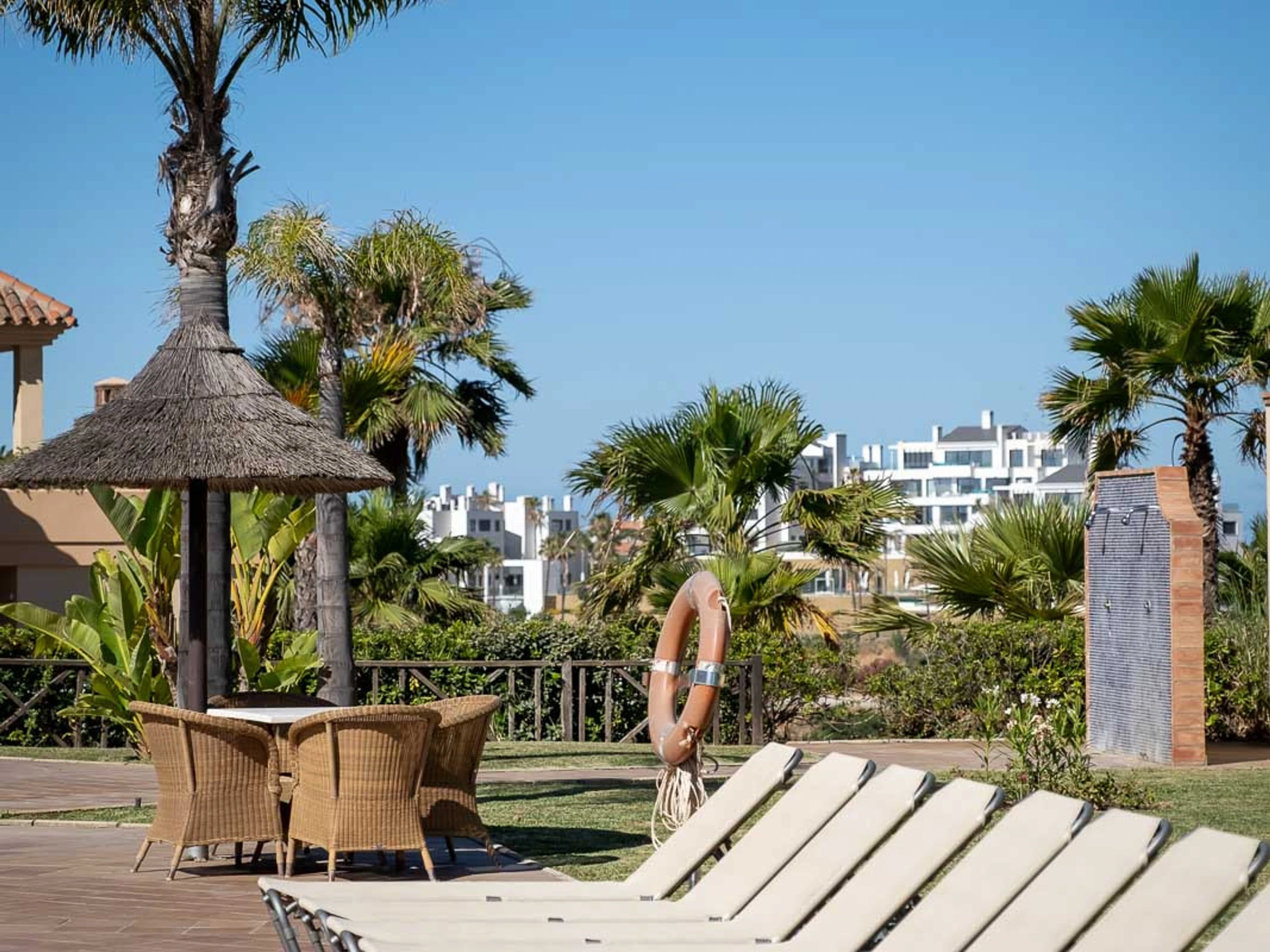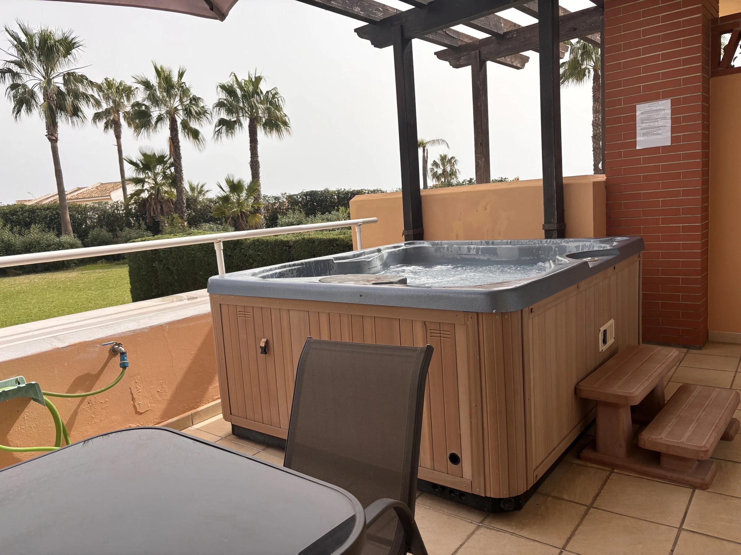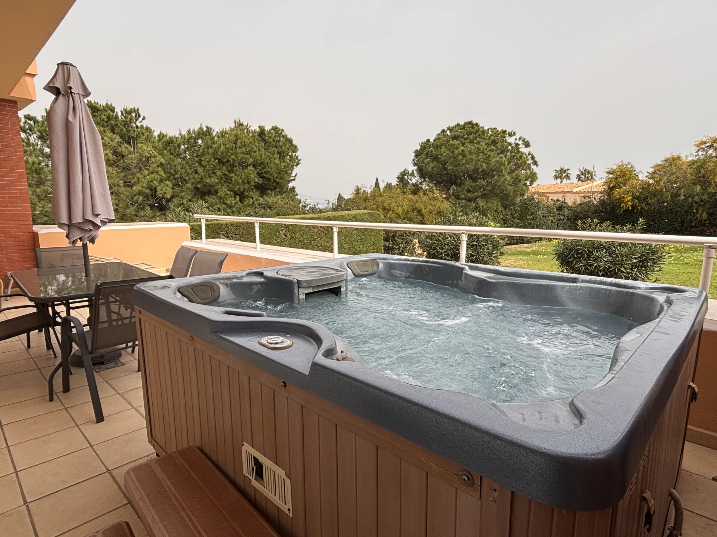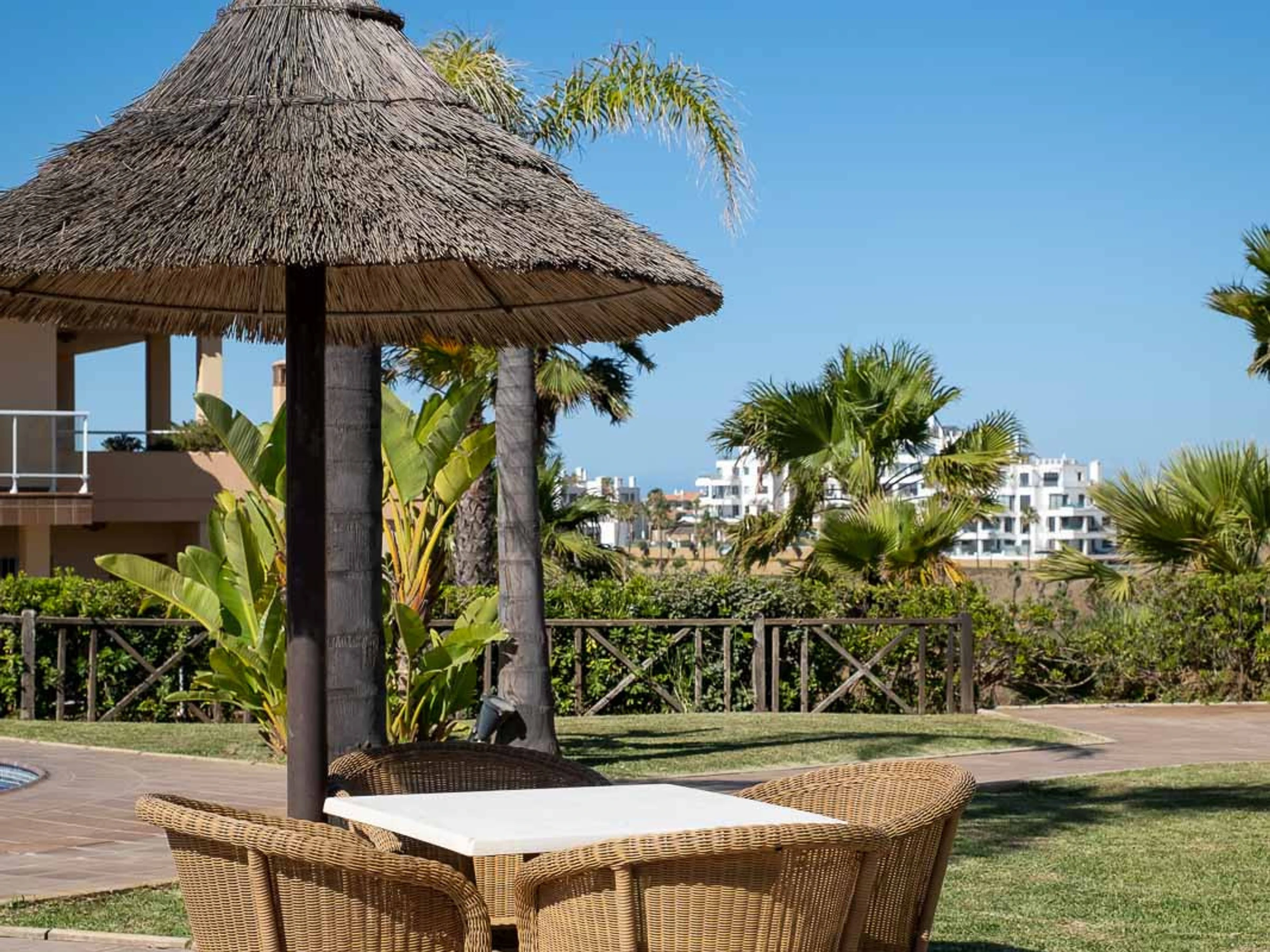 The accommodation is equipped with the following items: lift, garden, garden furniture, 25 m² terrace, washing machine, dryer, iron, safe, internet (Wi-Fi), hair dryer, childrens area, tennis court, heat pump, air-conditioned, swimming pool communal+children's, heated swimming pool communal, open-air parking in the same building, 3 TVs, satellite tv (Languages: Spanish, English).