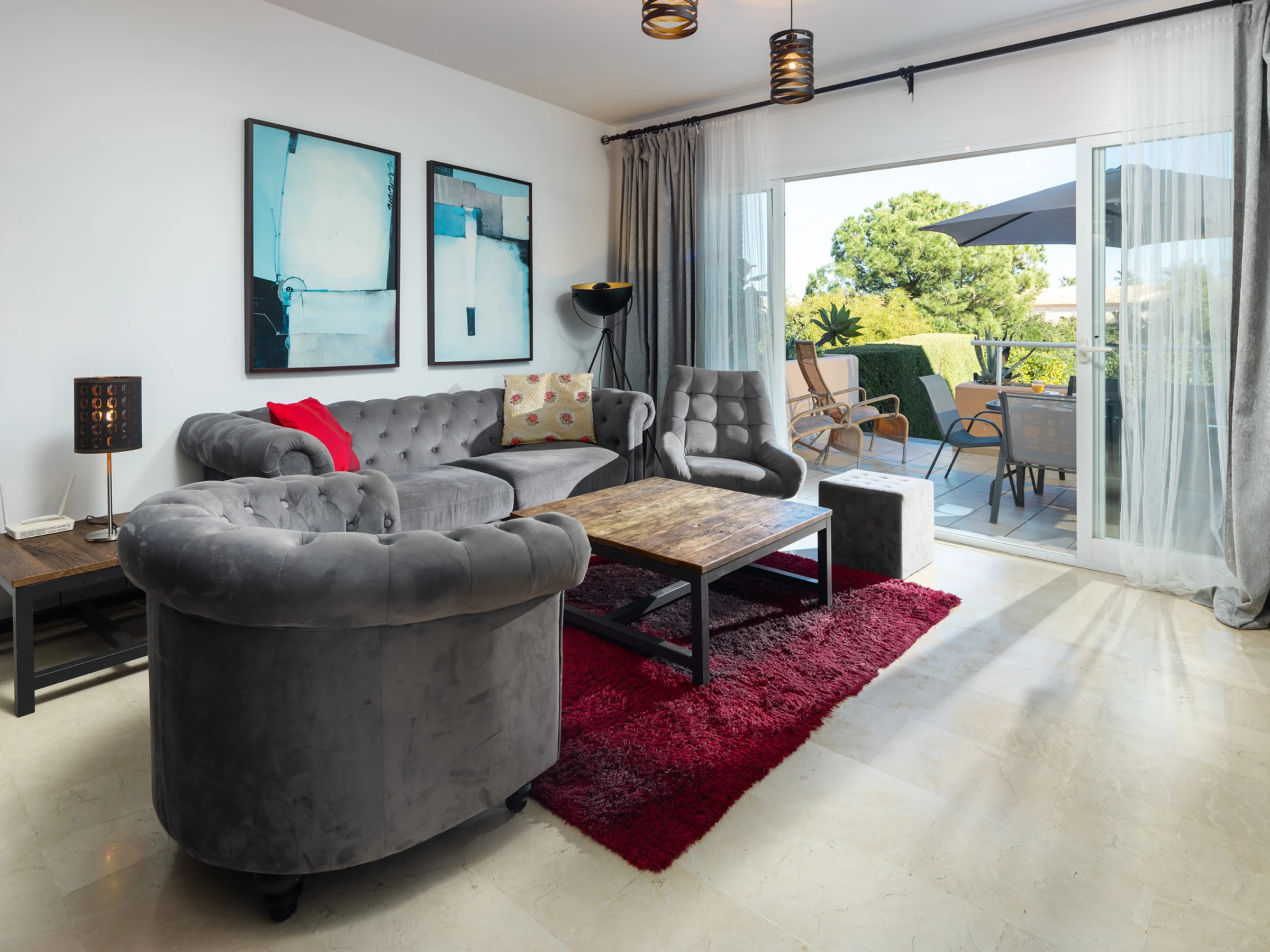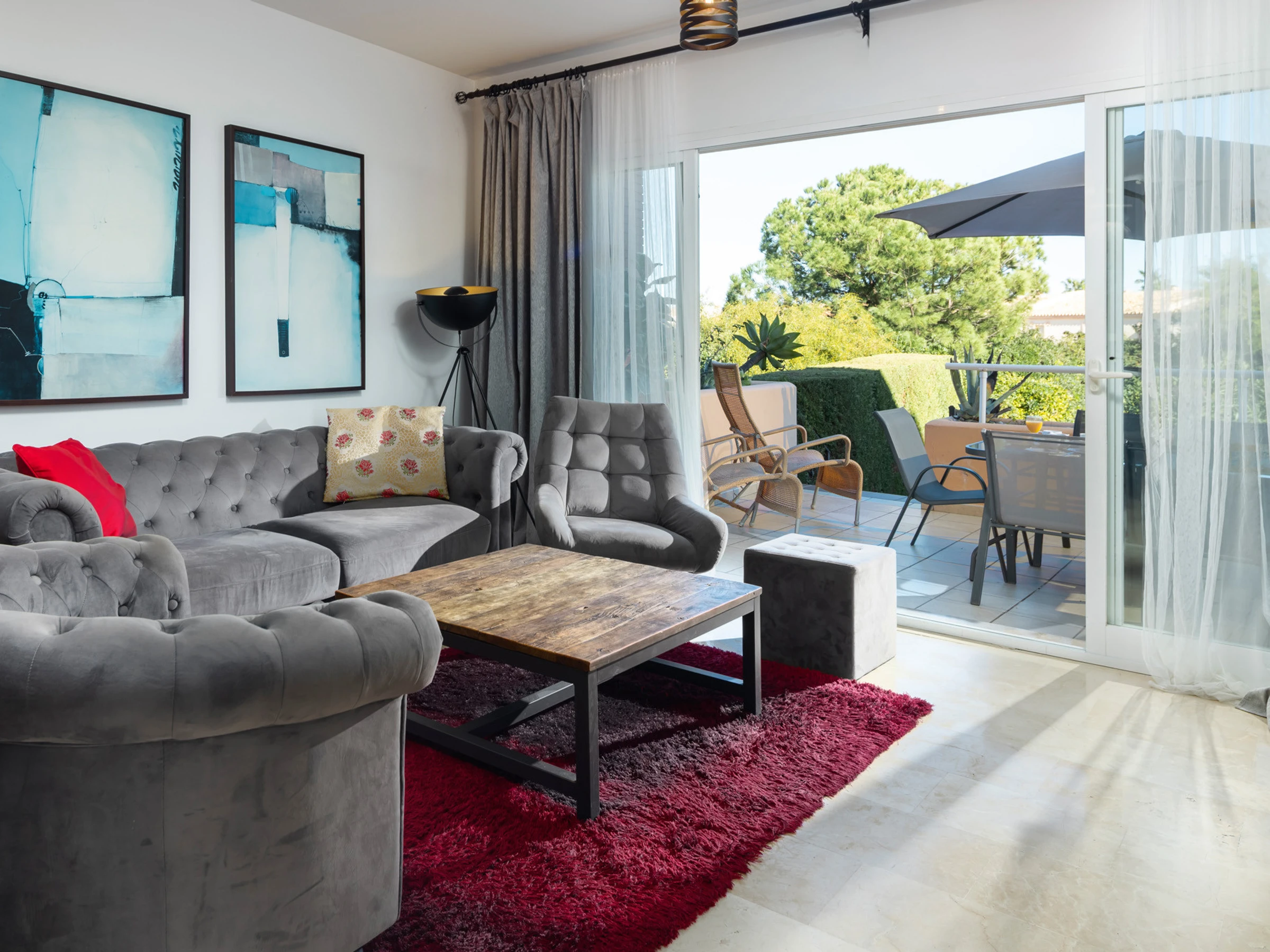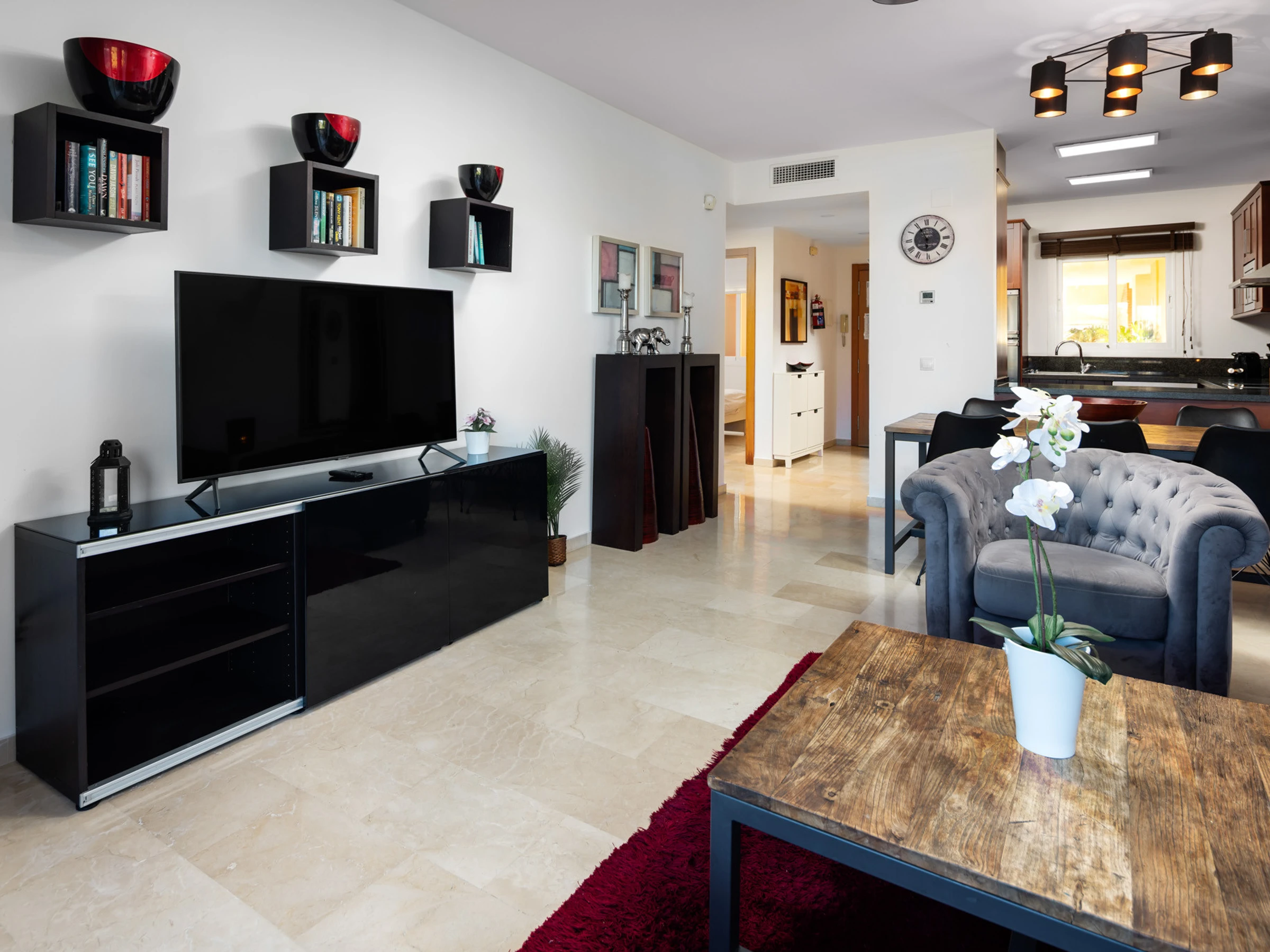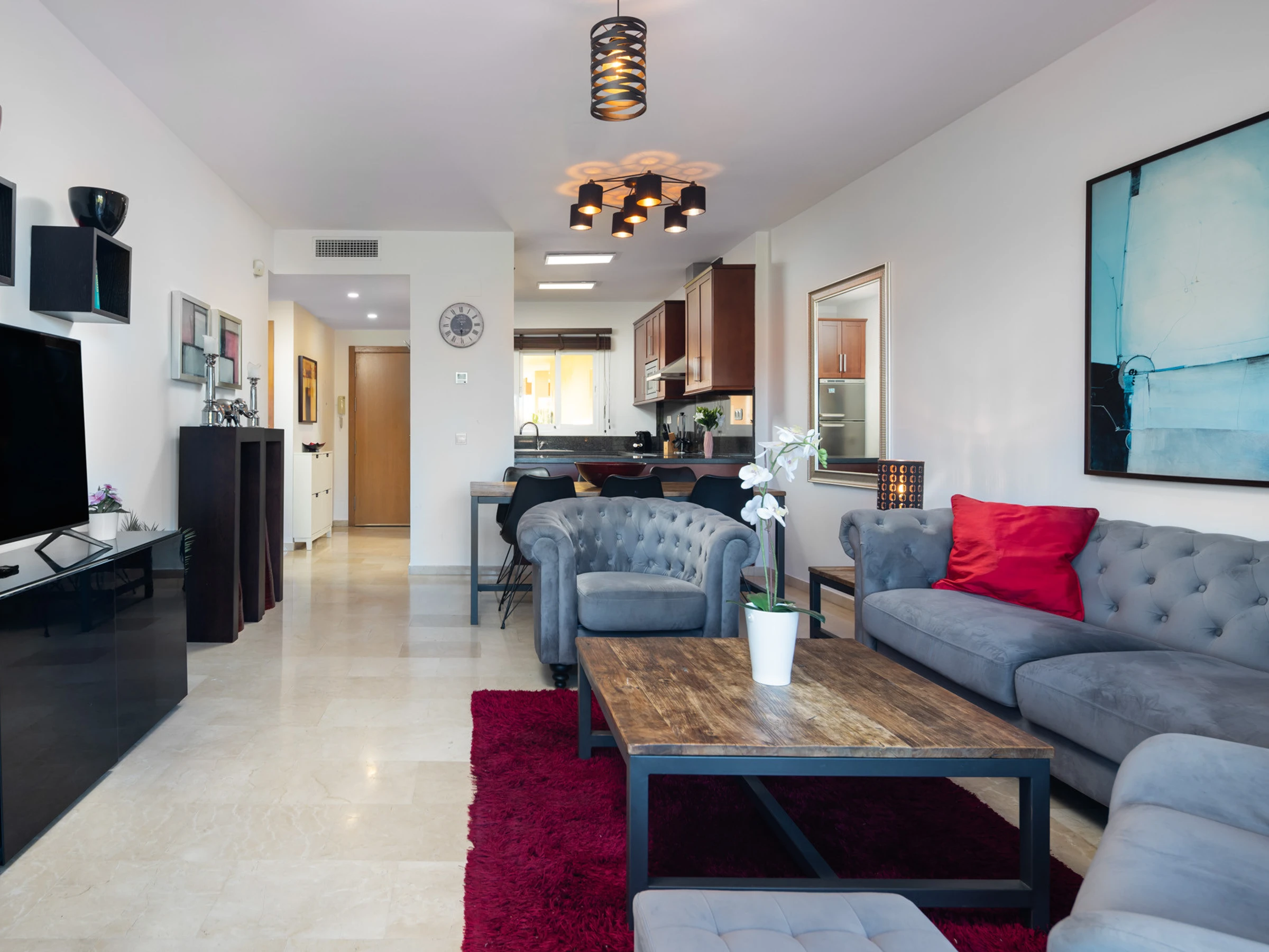 The accommodation is equipped with the following items: lift, garden, garden furniture, 25 m² terrace, washing machine, dryer, iron, safe, internet (Wi-Fi), hair dryer, childrens area, tennis court, heat pump, air-conditioned, swimming pool communal+children's, heated swimming pool communal, open-air parking in the same building, 3 TVs, satellite tv (Languages: Spanish, English).