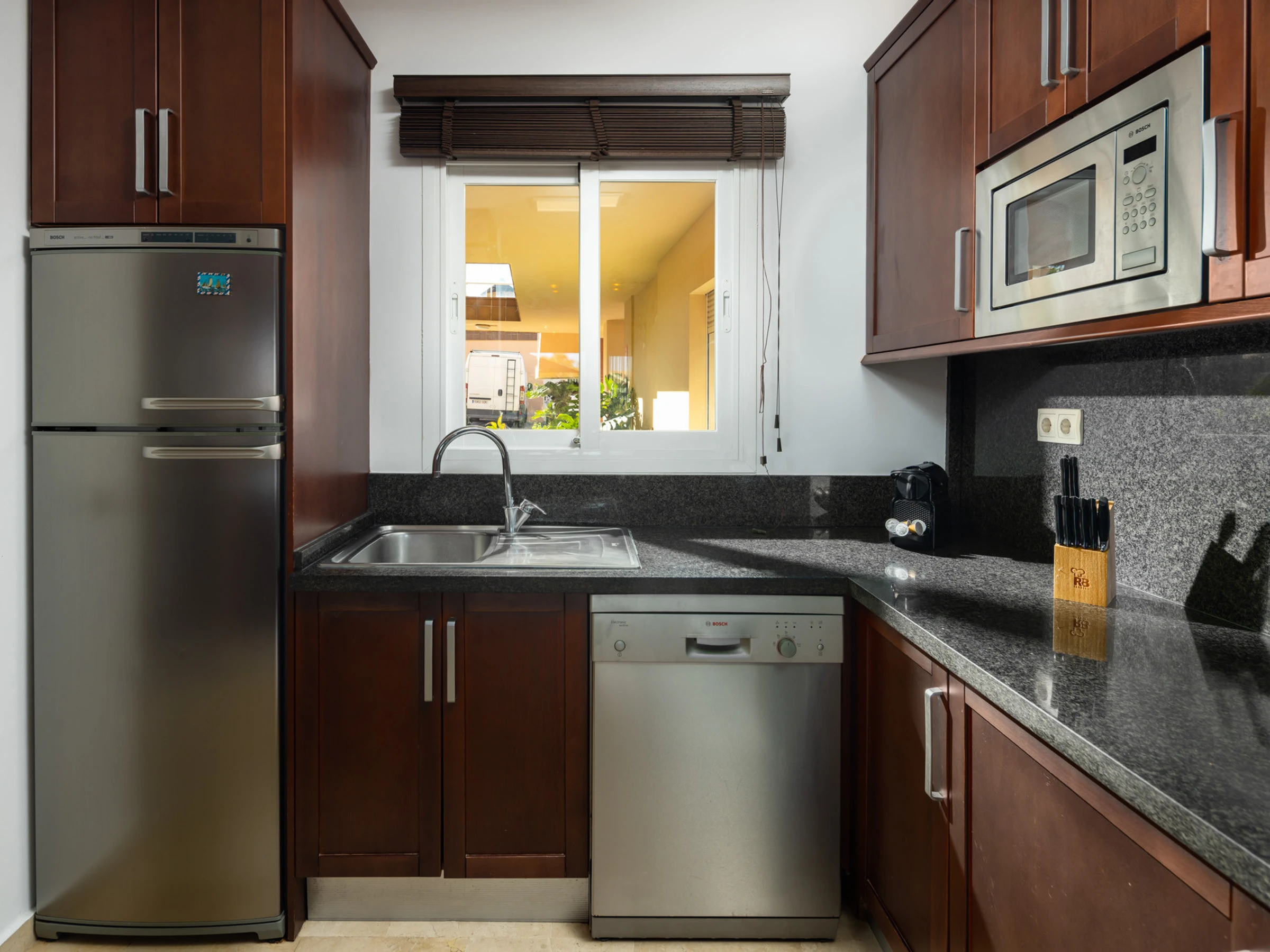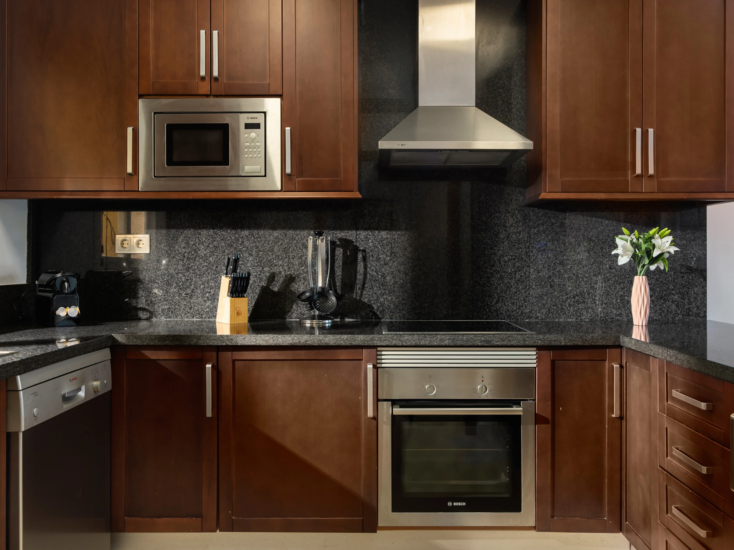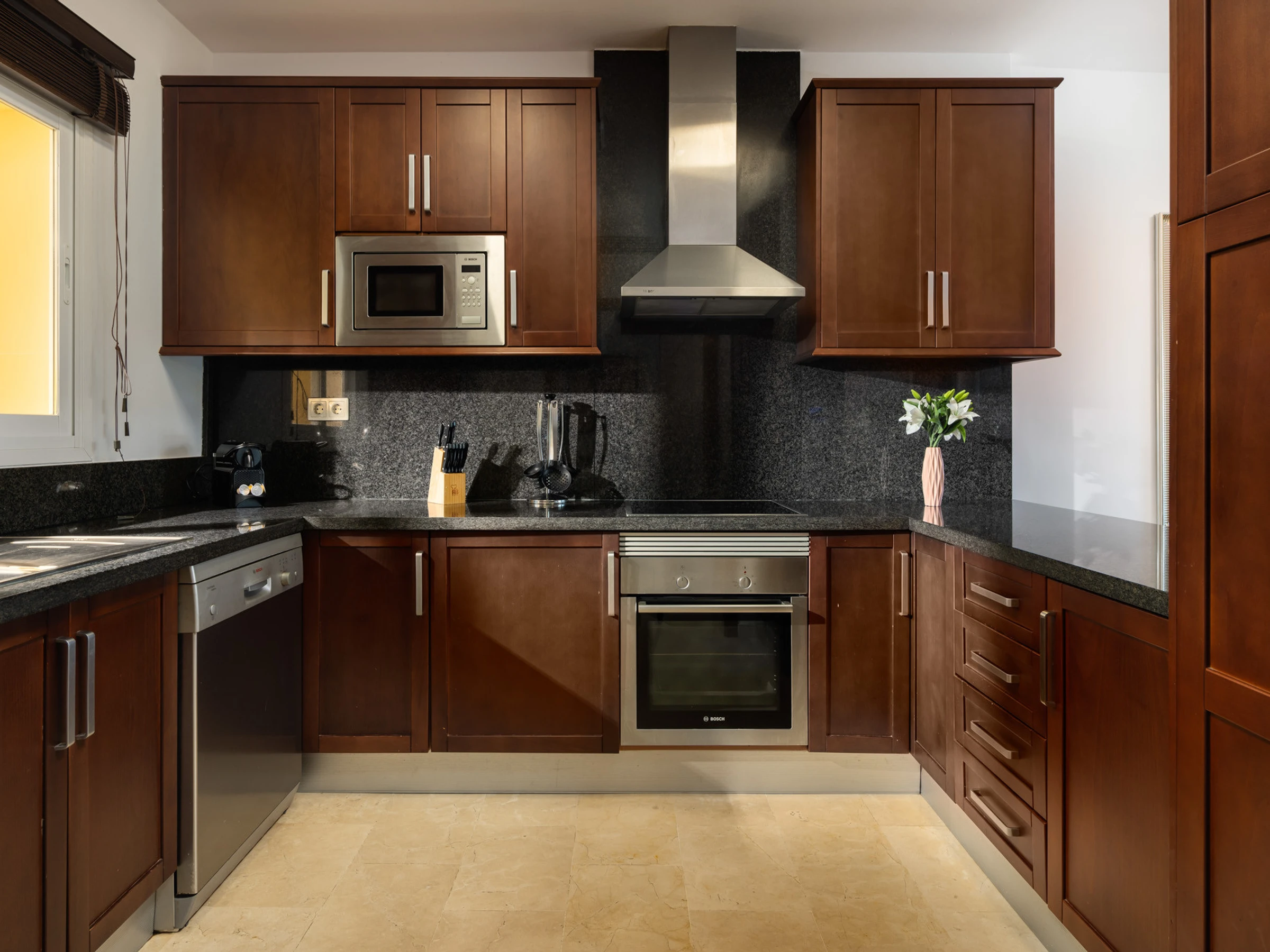 The independent kitchen, of hotplate of glass ceramics, is equipped with refrigerator, microwave, oven, freezer, dishwasher, dishes/cutlery, kitchen utensils, coffee machine, toaster, kettle and juicer.