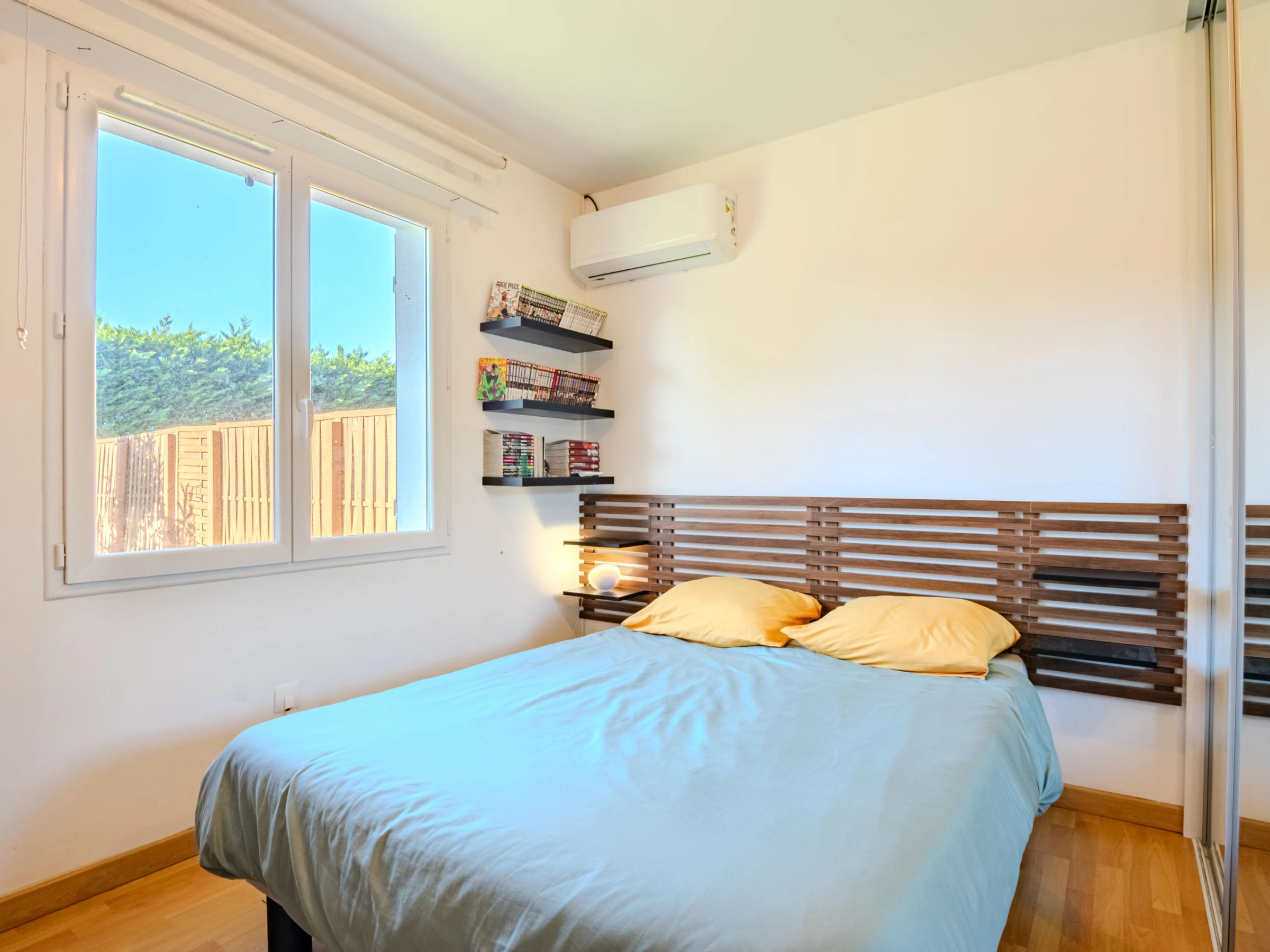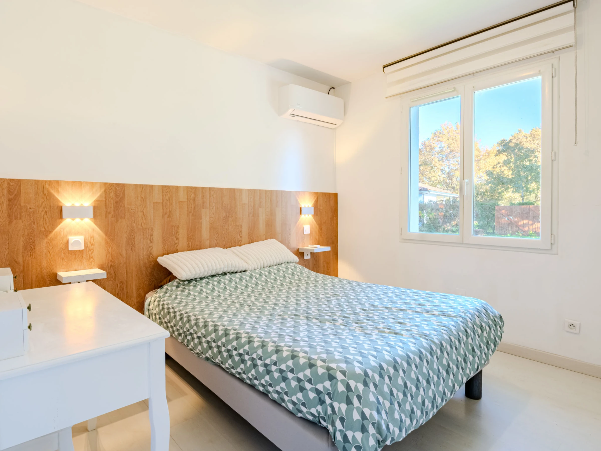4-room house 90 m2. Beautiful and modern furnishings: living/dining room with TV (flat screen), air conditioning. 1 room with 1 french bed (1 x 140 cm, length 190 cm). 1 room with 1 french bed (1 x 140 cm, length 190 cm). 1 room with 1 french bed (1 x 140 cm, length 190 cm). Open kitchen (oven, dishwasher, 1 induction hot plates, 4 gas rings, toaster, kettle, microwave, freezer, electric coffee machine, Capsules for coffee machine (filtre)). Shower, sep. WC. Air-conditioning, forced-air heating. Large terrace 36 m2, east facing position. Terrace furniture, barbecue. Facilities: washing machine, dryer, iron, hair dryer. Internet (WiFi, free). Parking (fenced). Please note: non-smokers only. 1 small pet/ dog allowed. Smoke alarm. Offer by a private individual according to Art. 155, IV of CGI.