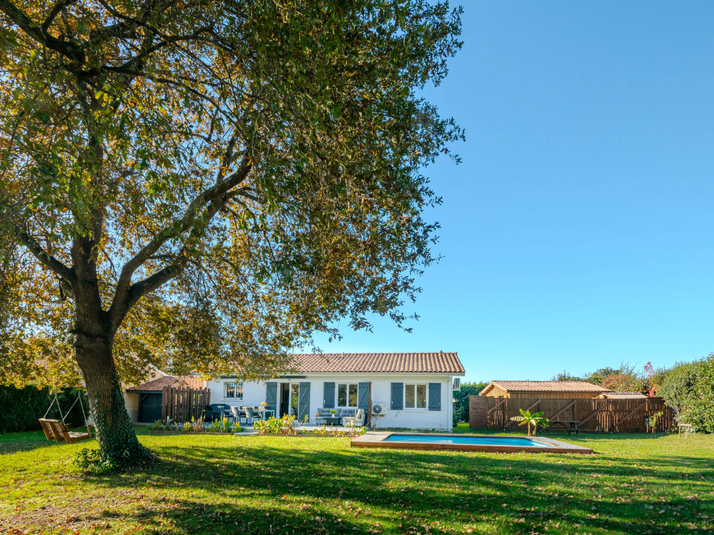 Pontenx les Forges 20 km from Mimizan Plage: Single-family house "Vaccine", built in 2005. Property composed of main house and outbuilding, in the resort 300 m from the centre of de Pontenx les Forges, 1 km from the edge of the forest, 20 km from the sea, 10 km from the lake, 20 km from the beach. Private: property 1'300 m2 (fenced), swimming pool angular (5 x 2 m, depth 140 cm, seasonal availability: [hidden] - [hidden] with alarm system. Terrace (36 m2), garden furniture, barbecue, parking (for 2 cars). Shop 1 km, grocery 11 km, shopping centre 11 km, restaurant 500 m, pedestrian zone 11 km, bus stop "pontenx centre" 1 km, railway station "Labouheyre" 20 km, sandy beach "la garluche" 20 km, bathing lake "Saint Paul en Born" 6 km. Surf school 17 km, riding stable 10 km, cycle lane 100 m. Nearby attractions: Skate Parc 16 km, Eco musée Marquèze 35 km, Accro branche 11 km, arcachon 65 km. Well-known lakes can easily be reached: Aureilhan 10 km.