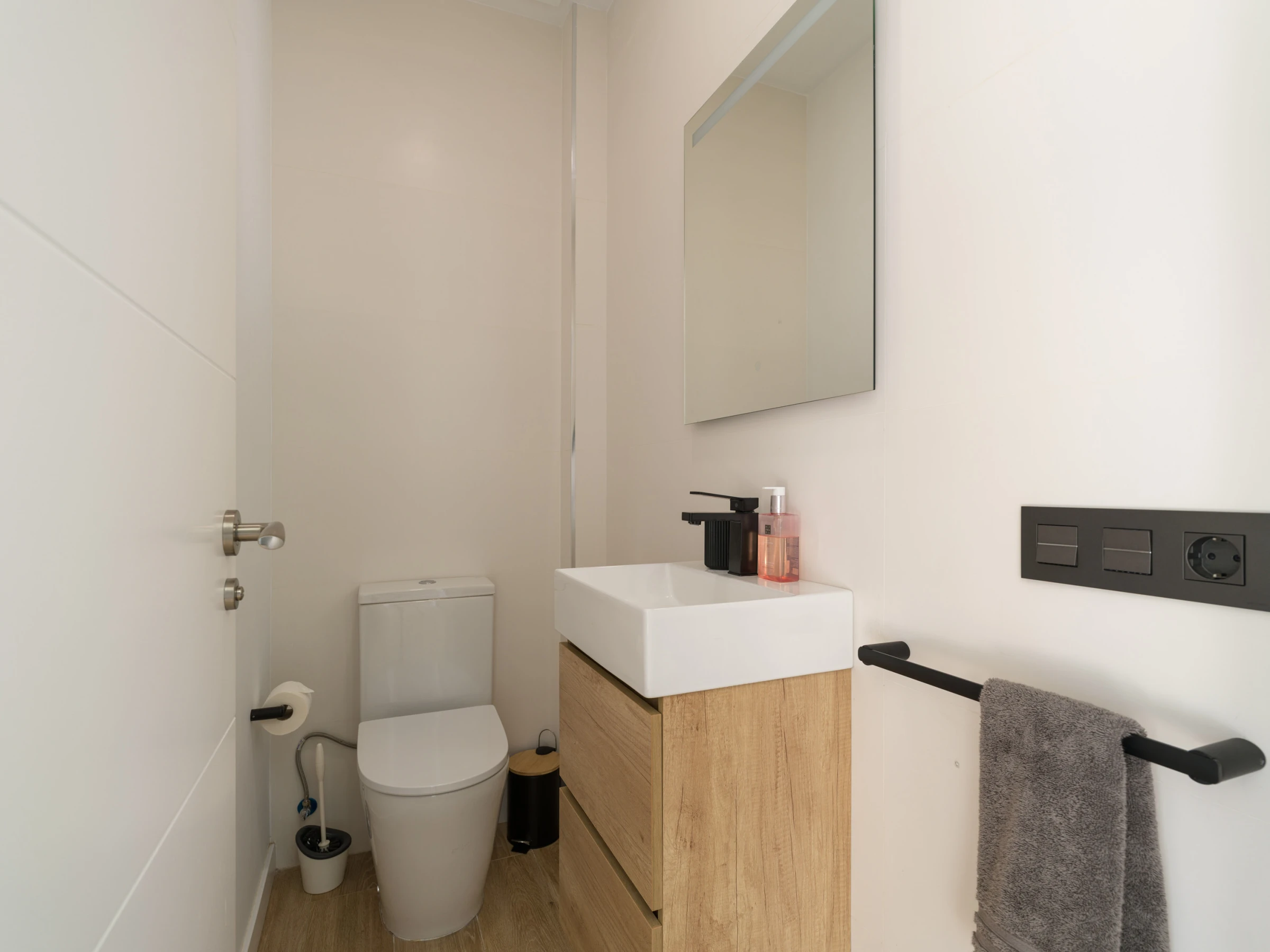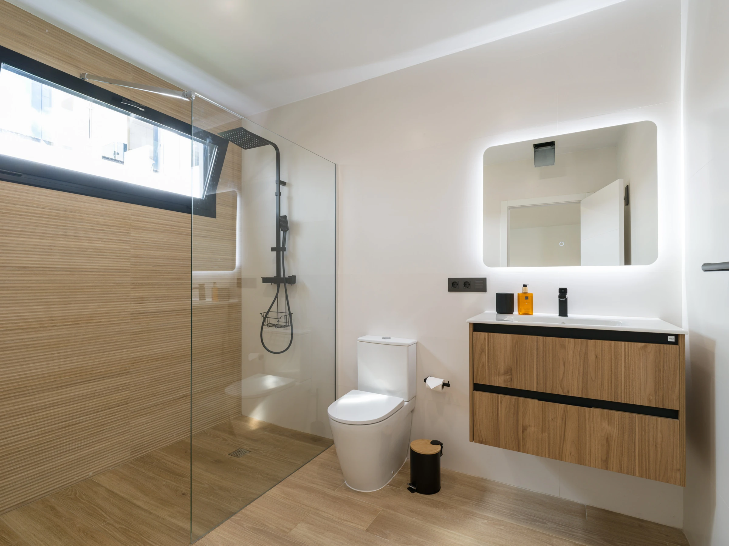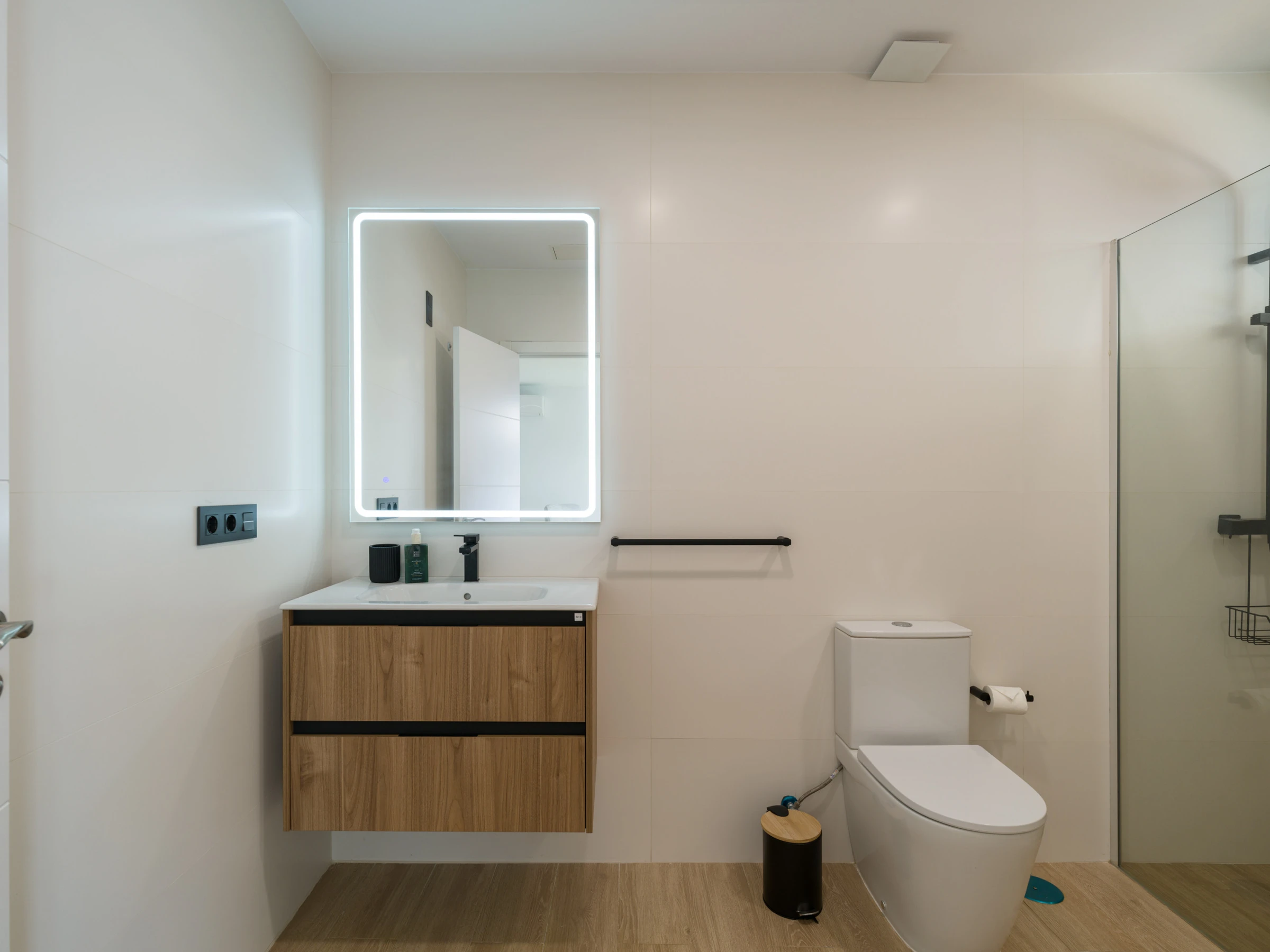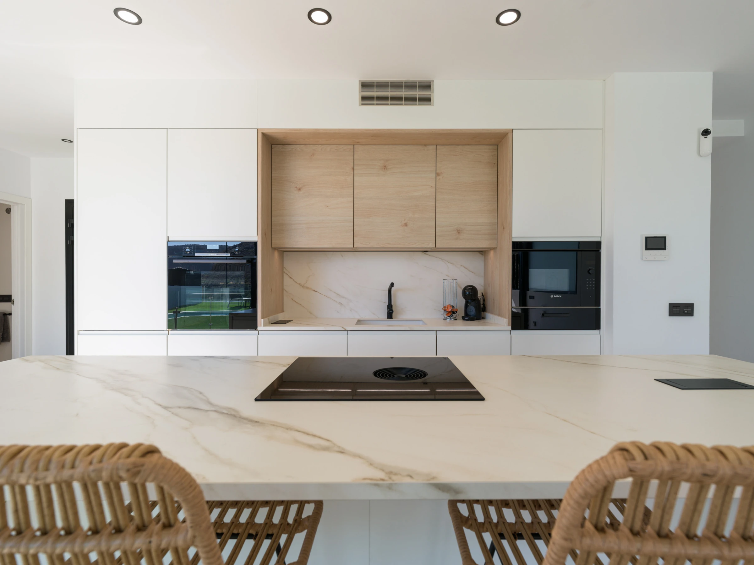 The exterior is one of the great attractions of the villa. The completely fenced perimeter provides privacy and tranquillity, while the outdoor area invites you to enjoy the open air with a heated private pool, sun loungers, outdoor shower, gas barbecue, shaded sofa area and outdoor dining room, ideal for relaxing and taking advantage of the sunny weather throughout the day.