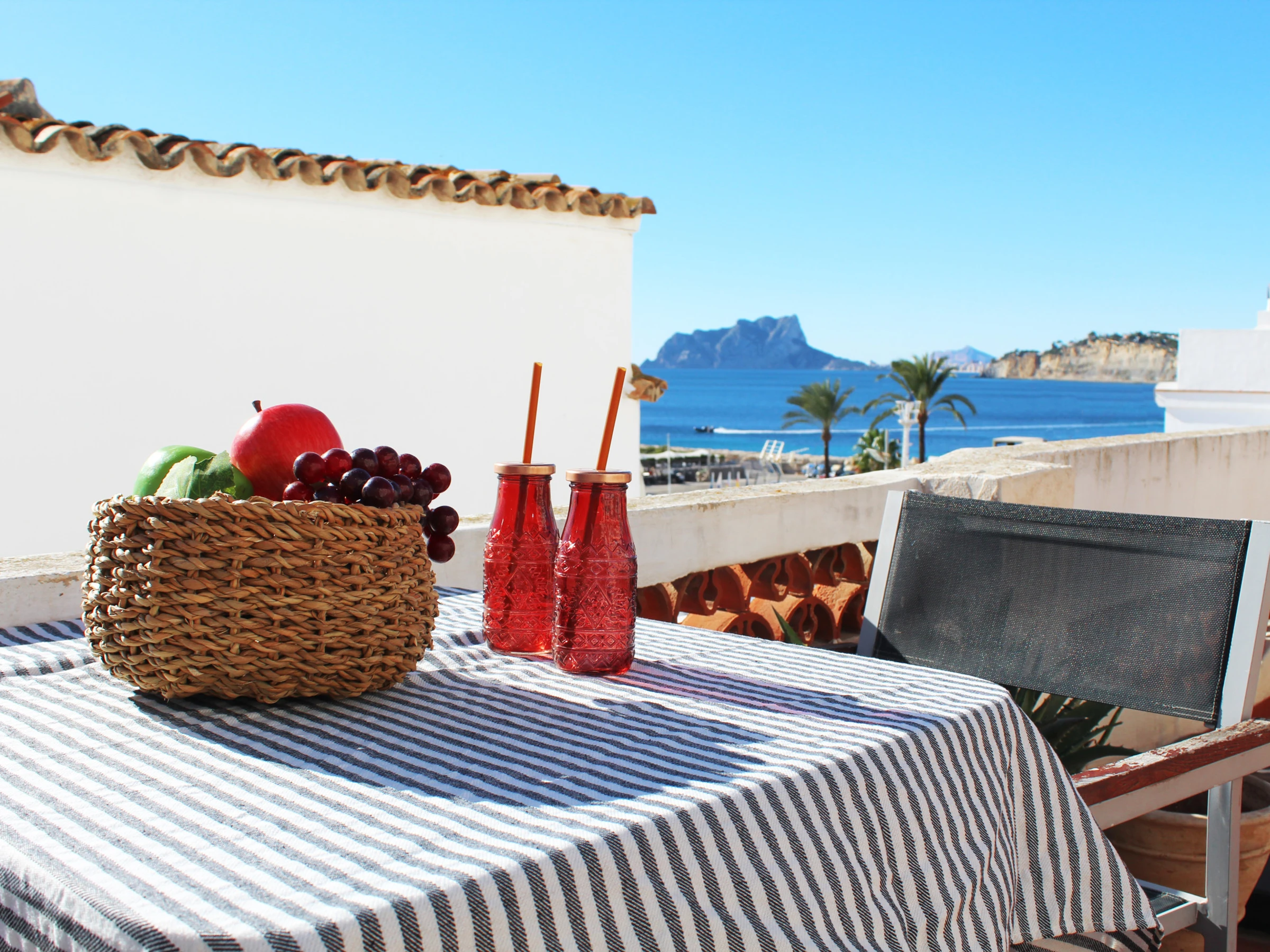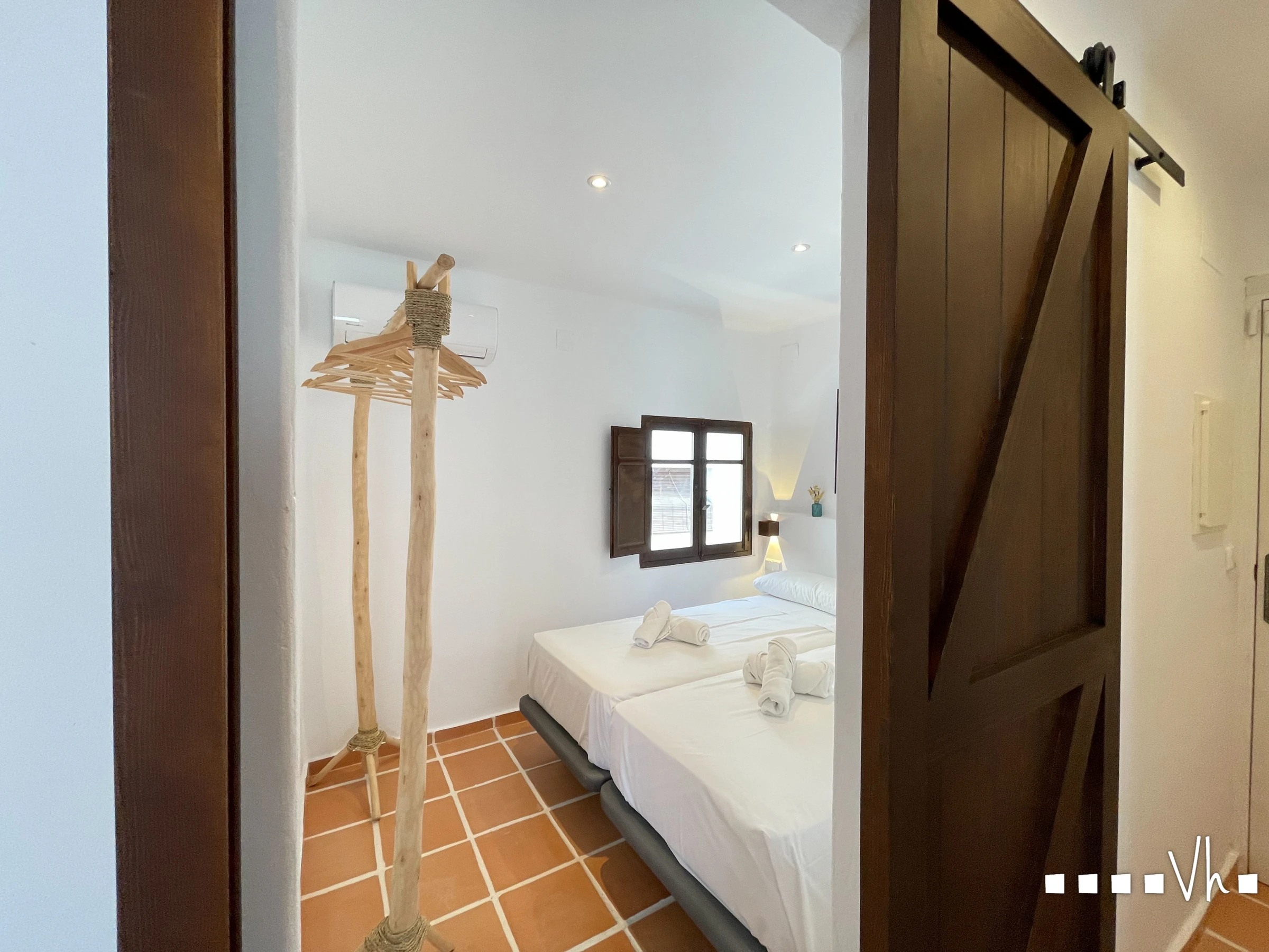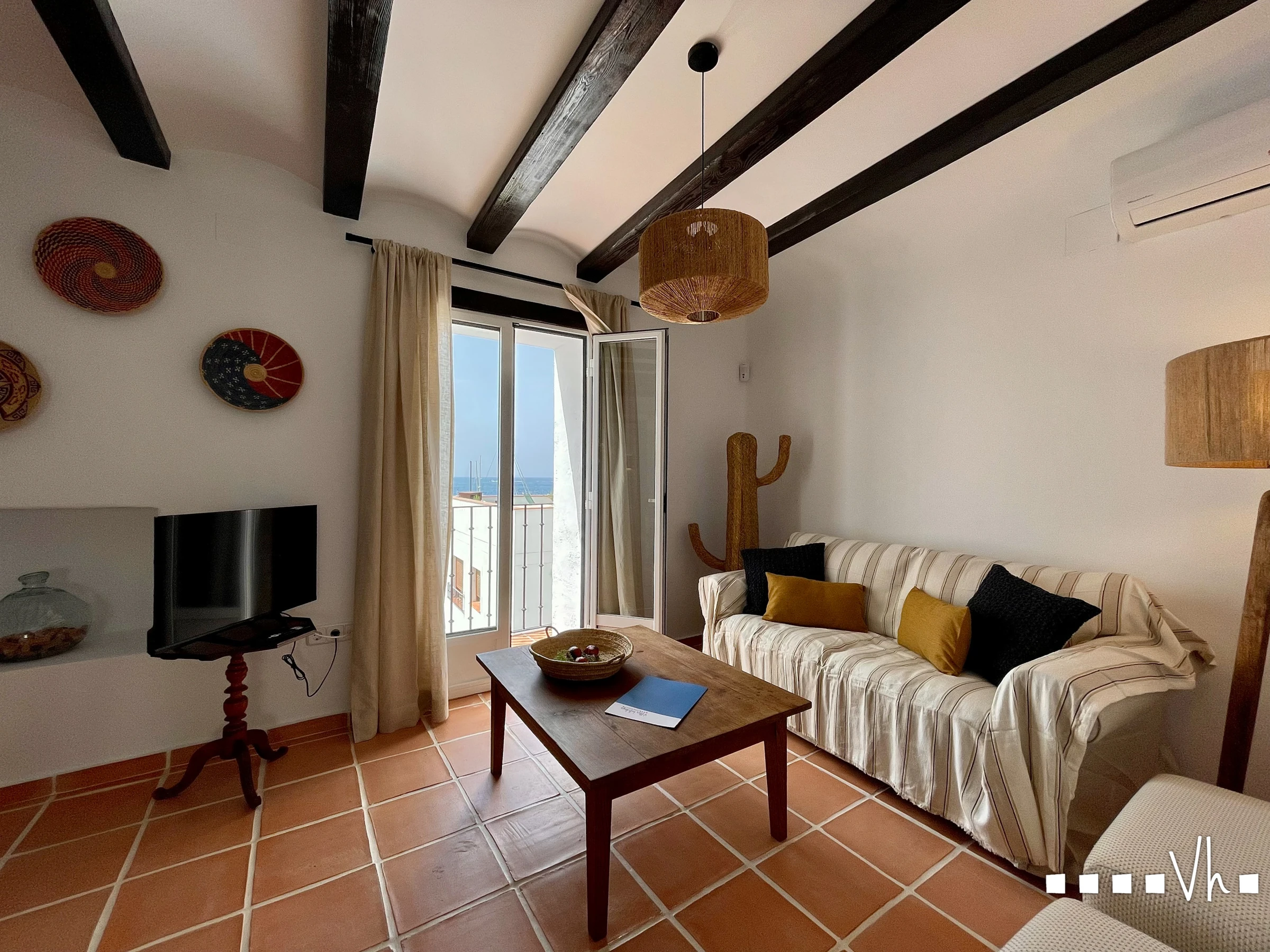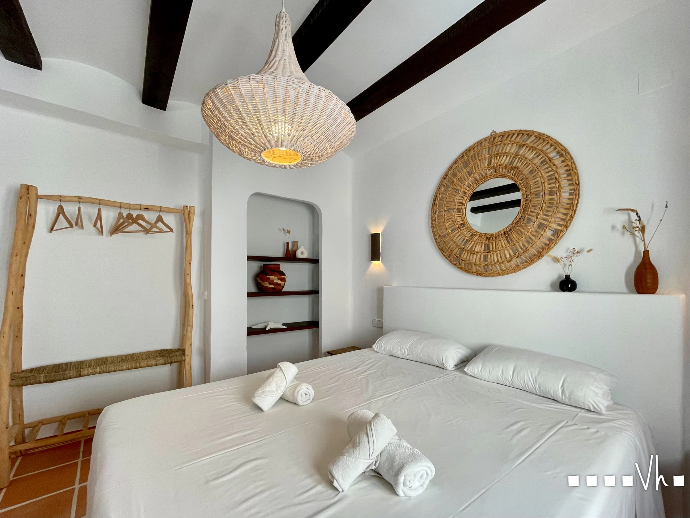 This charming recently renovated apartment is located in the heart of Moraira, just a few metres from the port and the beach. It is a typical Mediterranean house, painted white, with terracotta floors, wooden beams and windows, decorated with great care in light colours and natural materials.