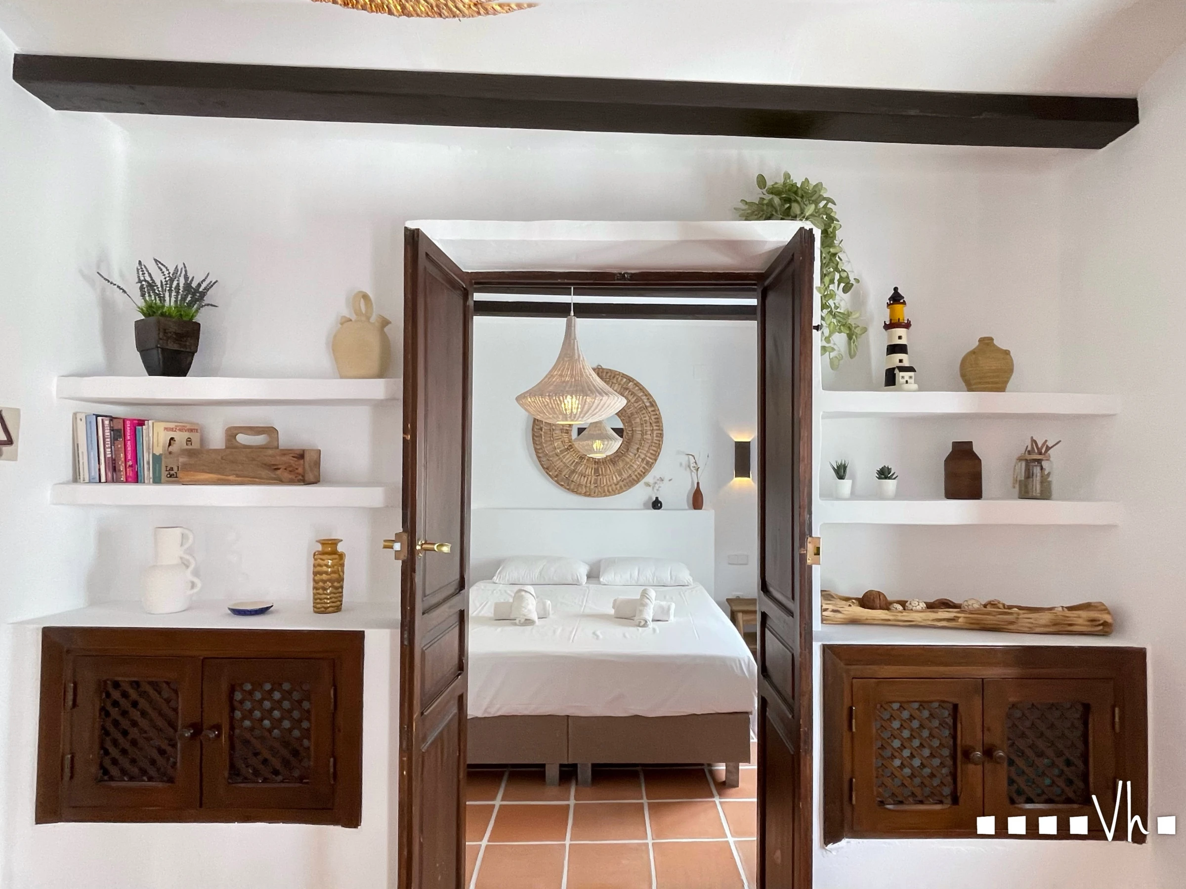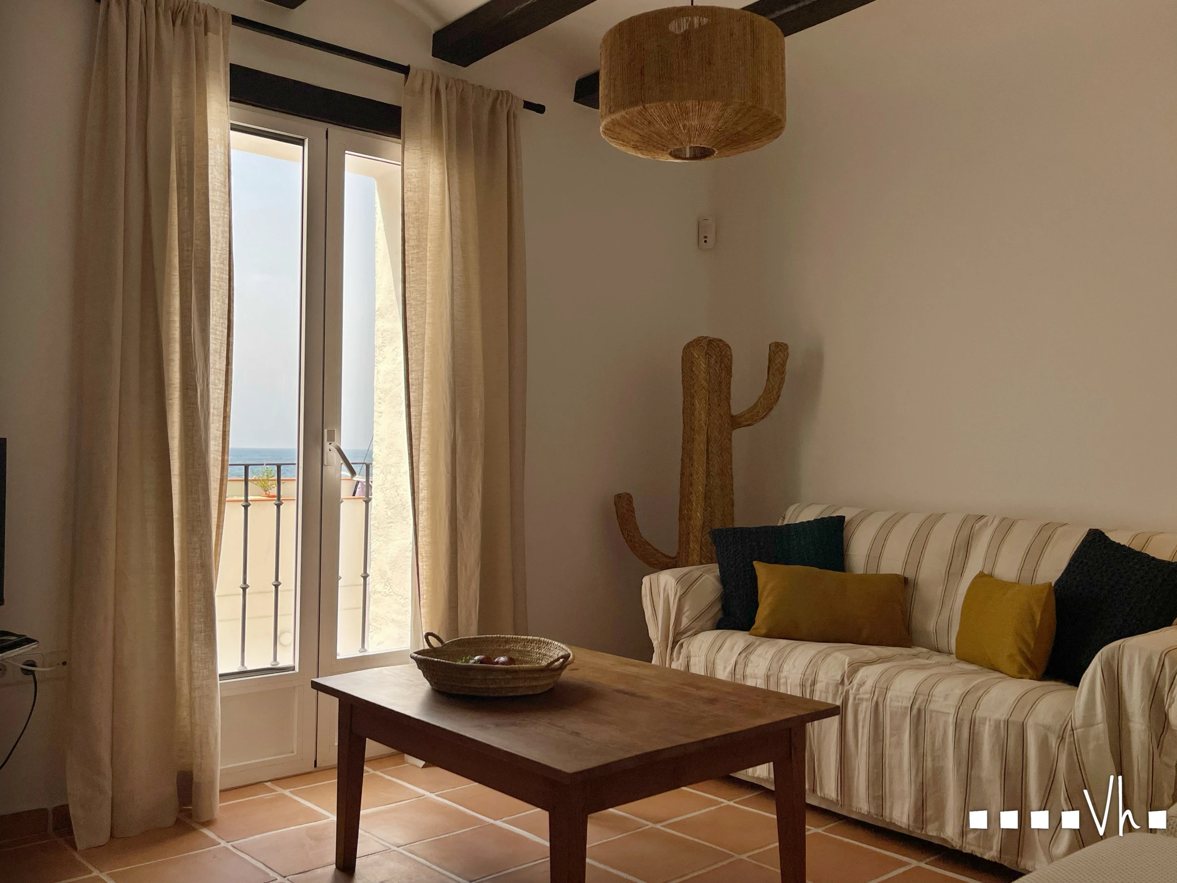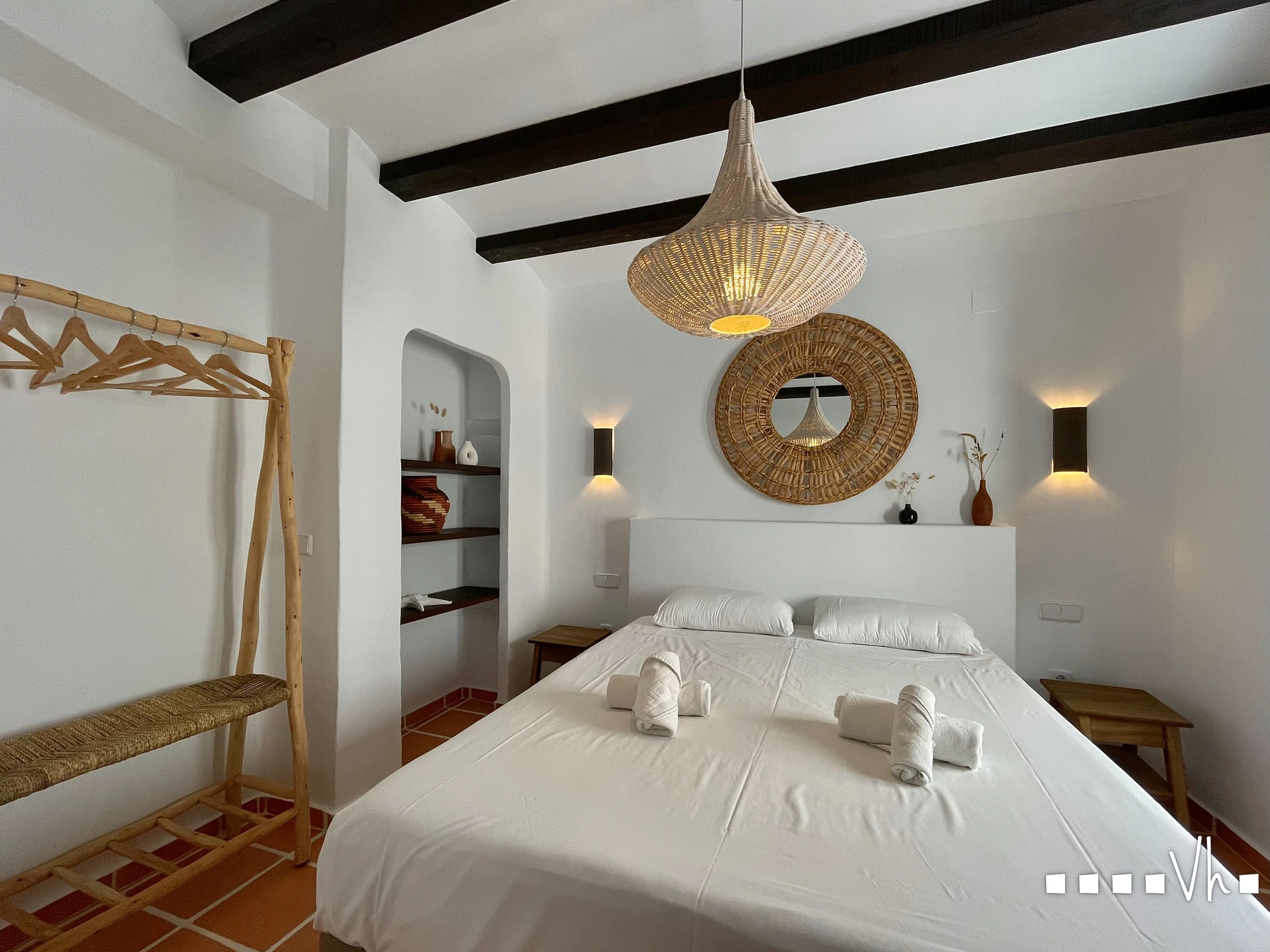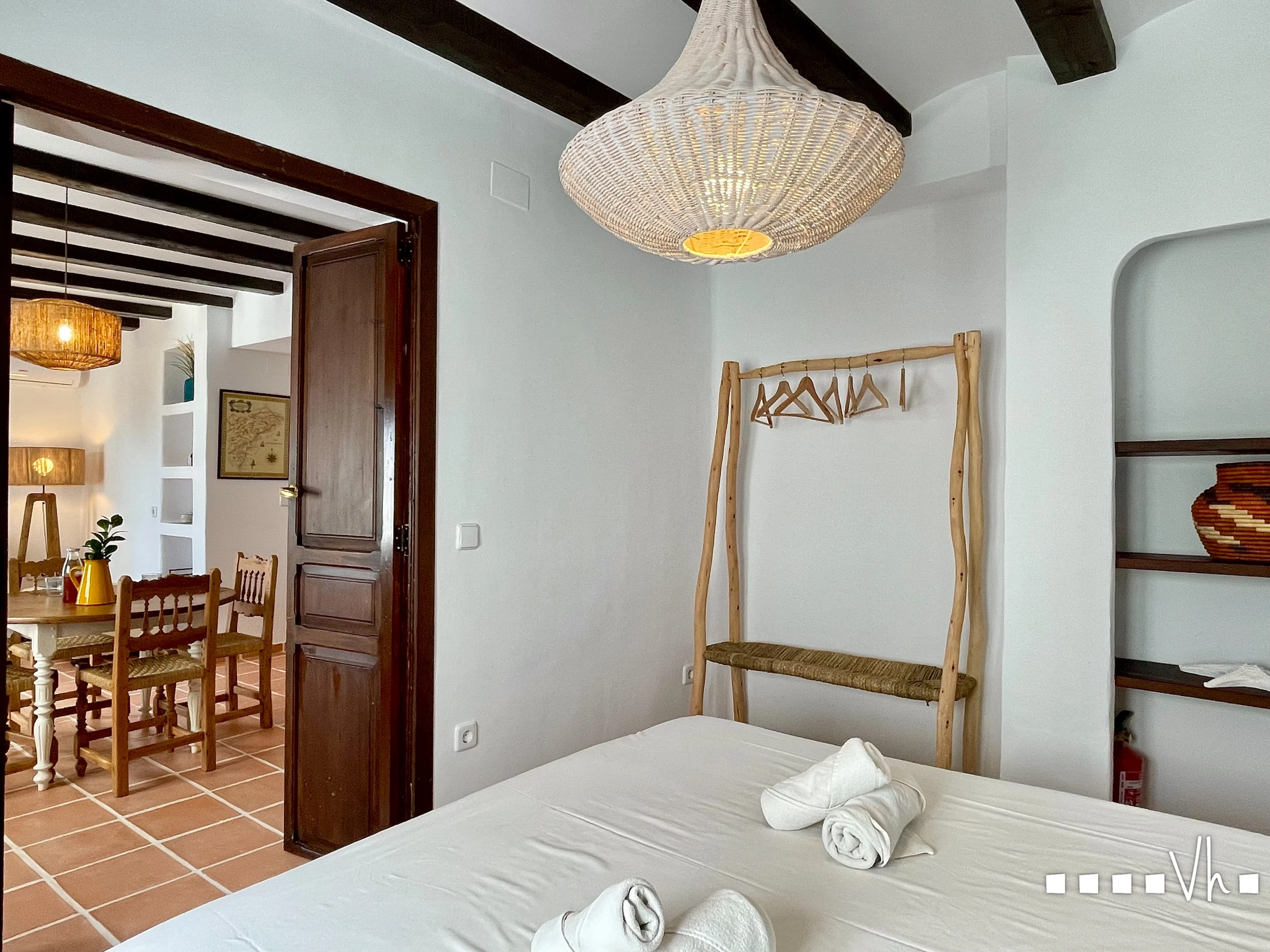 This charming recently renovated apartment is located in the heart of Moraira, just a few metres from the port and the beach. It is a typical Mediterranean house, painted white, with terracotta floors, wooden beams and windows, decorated with great care in light colours and natural materials.