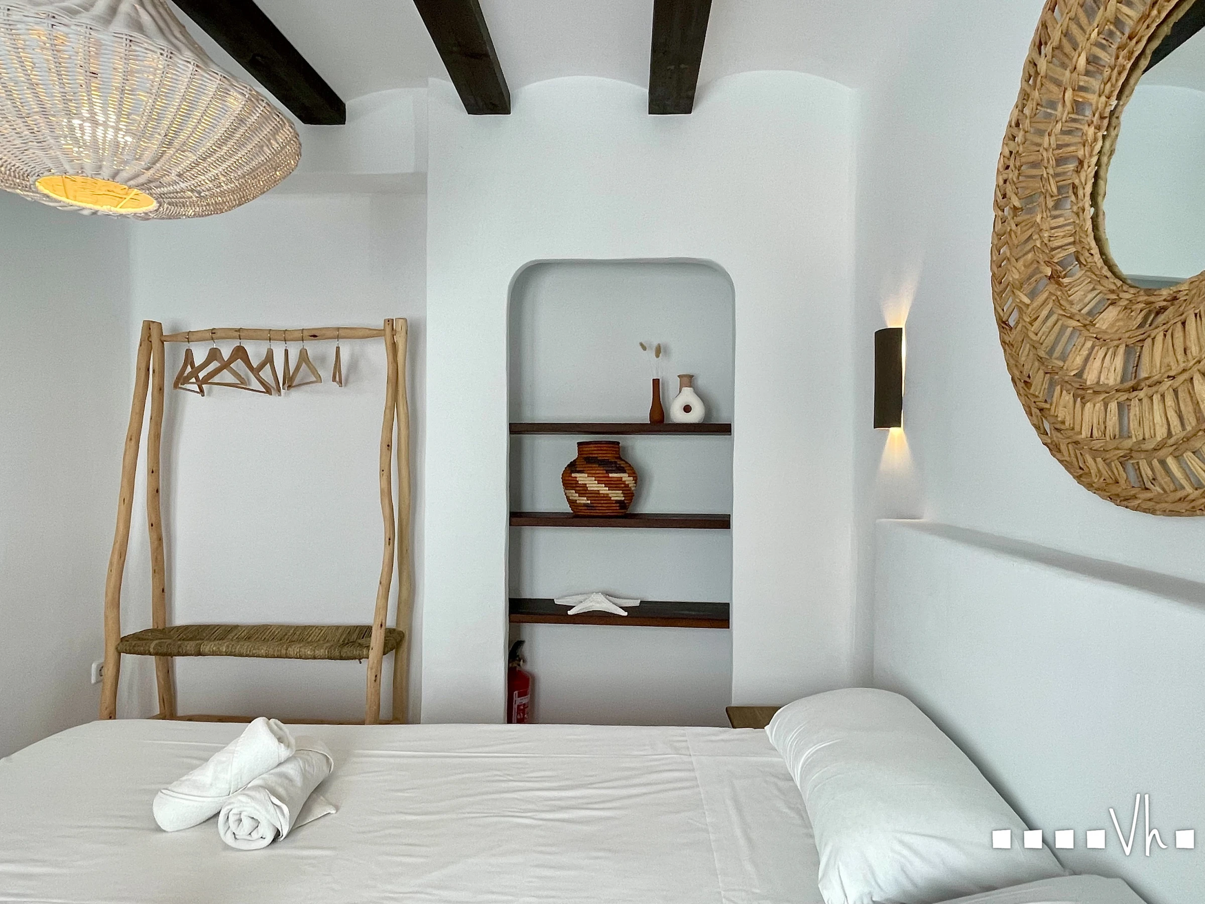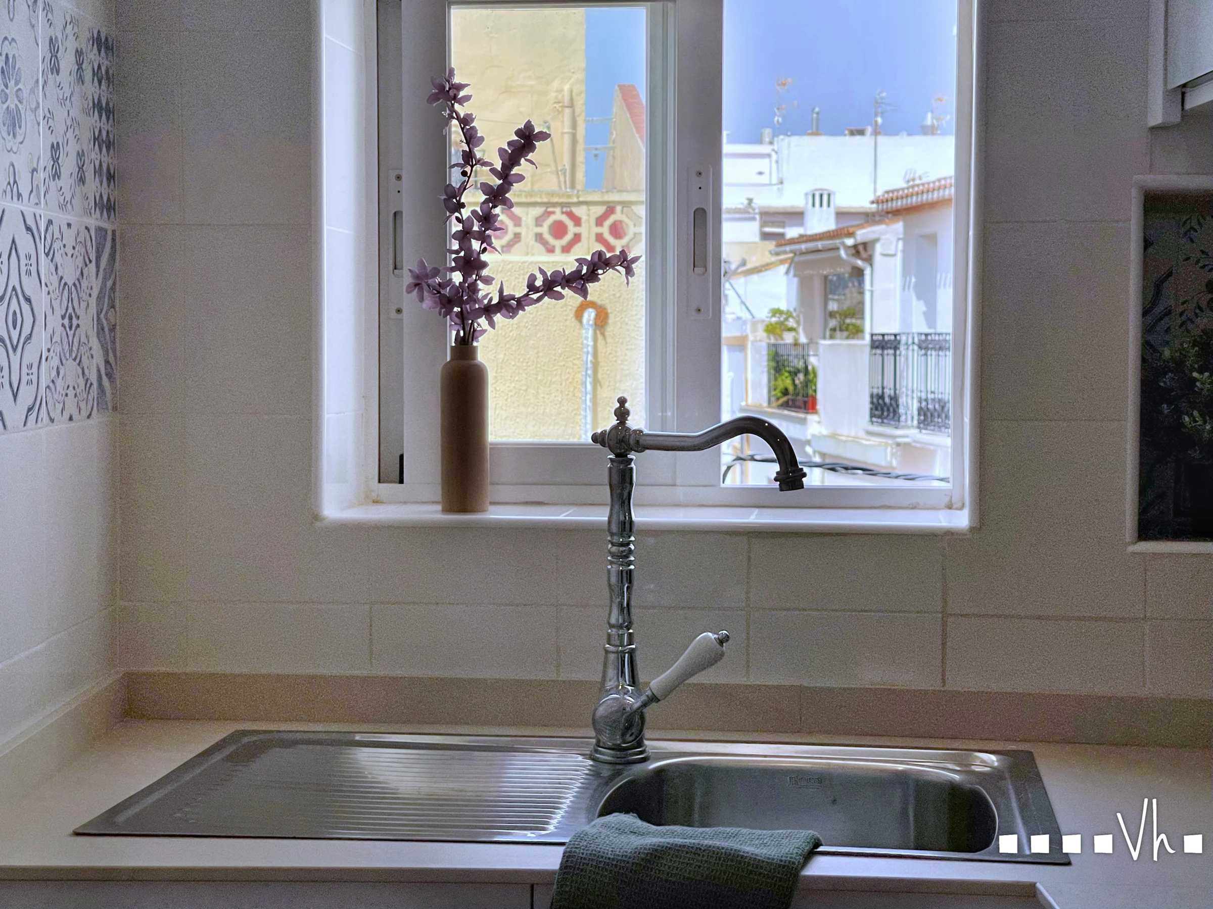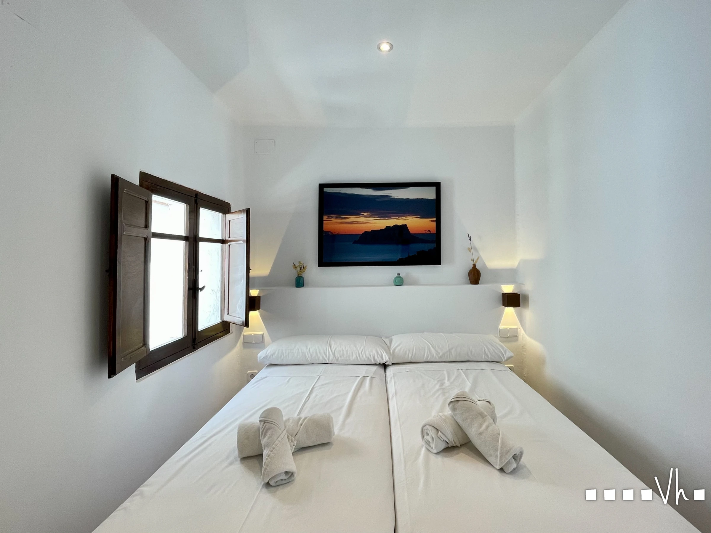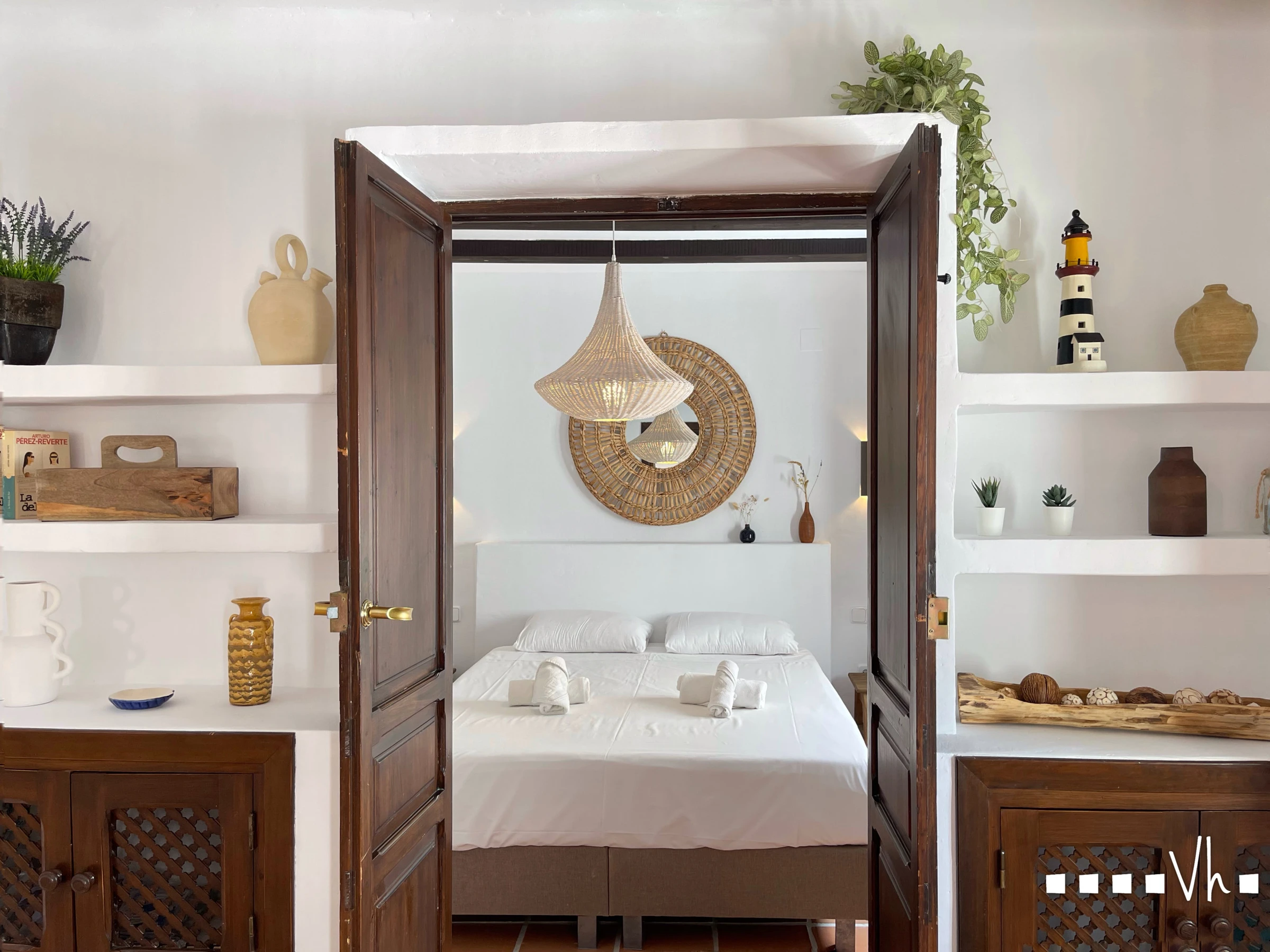 This charming recently renovated apartment is located in the heart of Moraira, just a few metres from the port and the beach. It is a typical Mediterranean house, painted white, with terracotta floors, wooden beams and windows, decorated with great care in light colours and natural materials.
