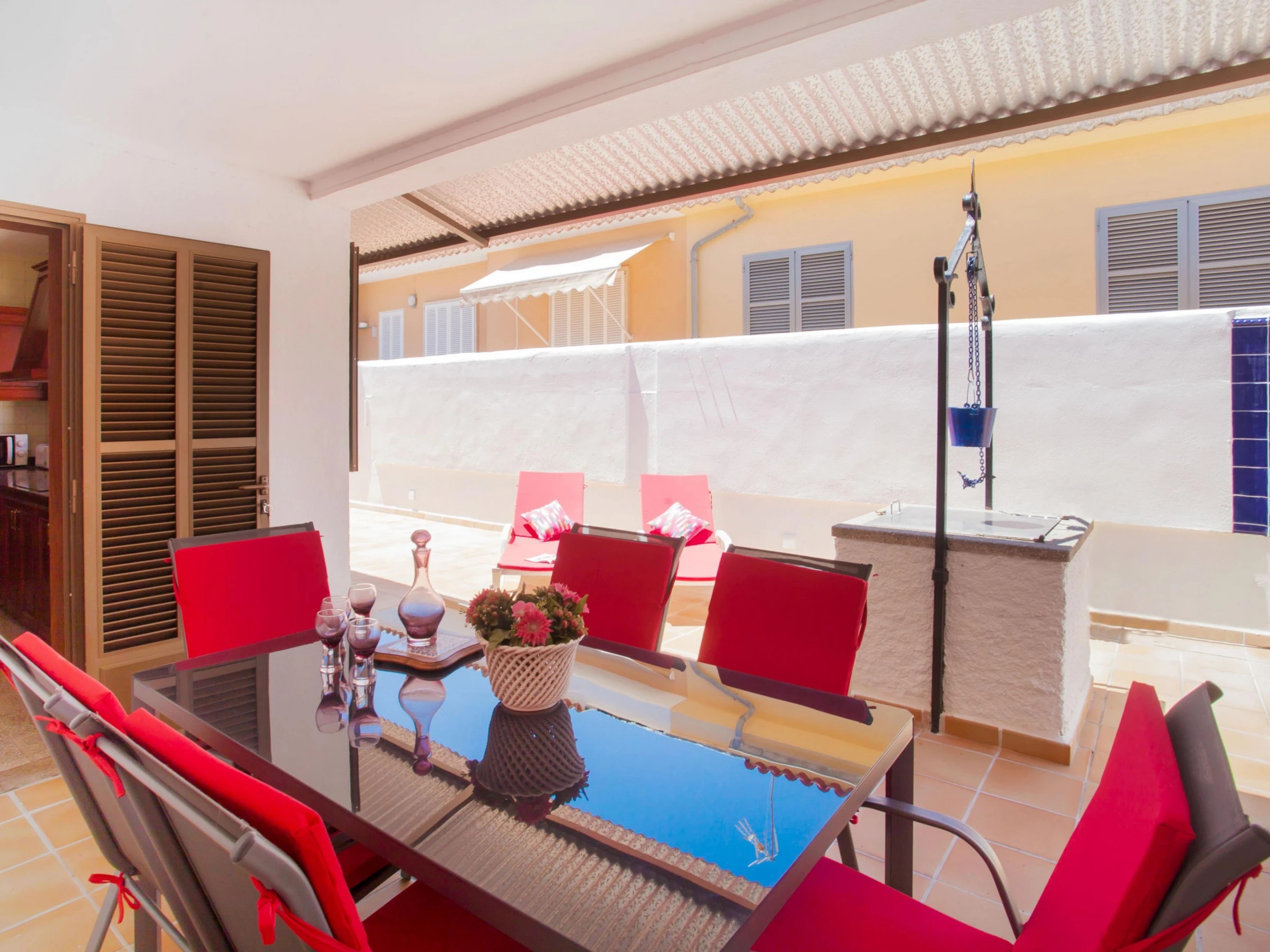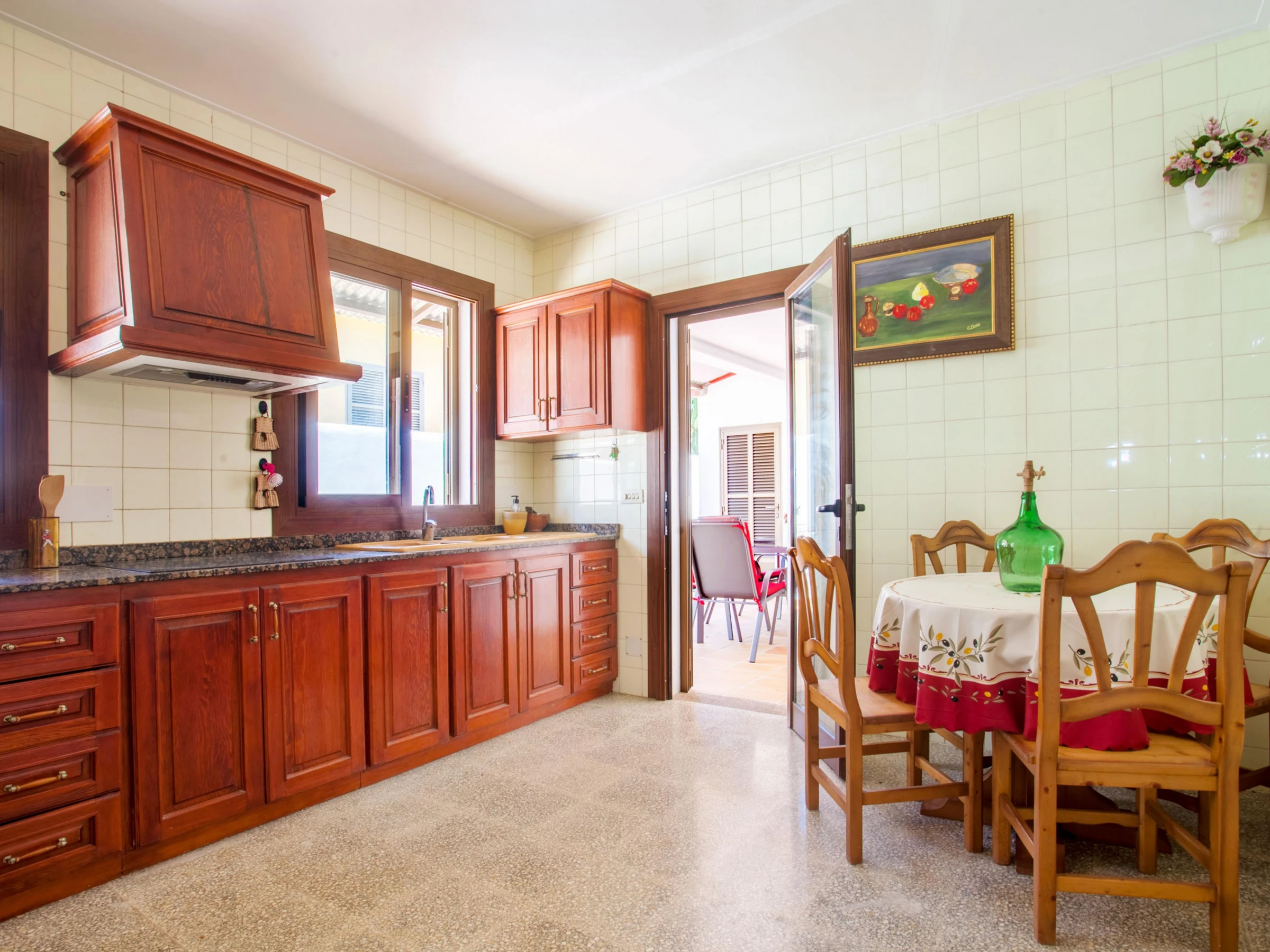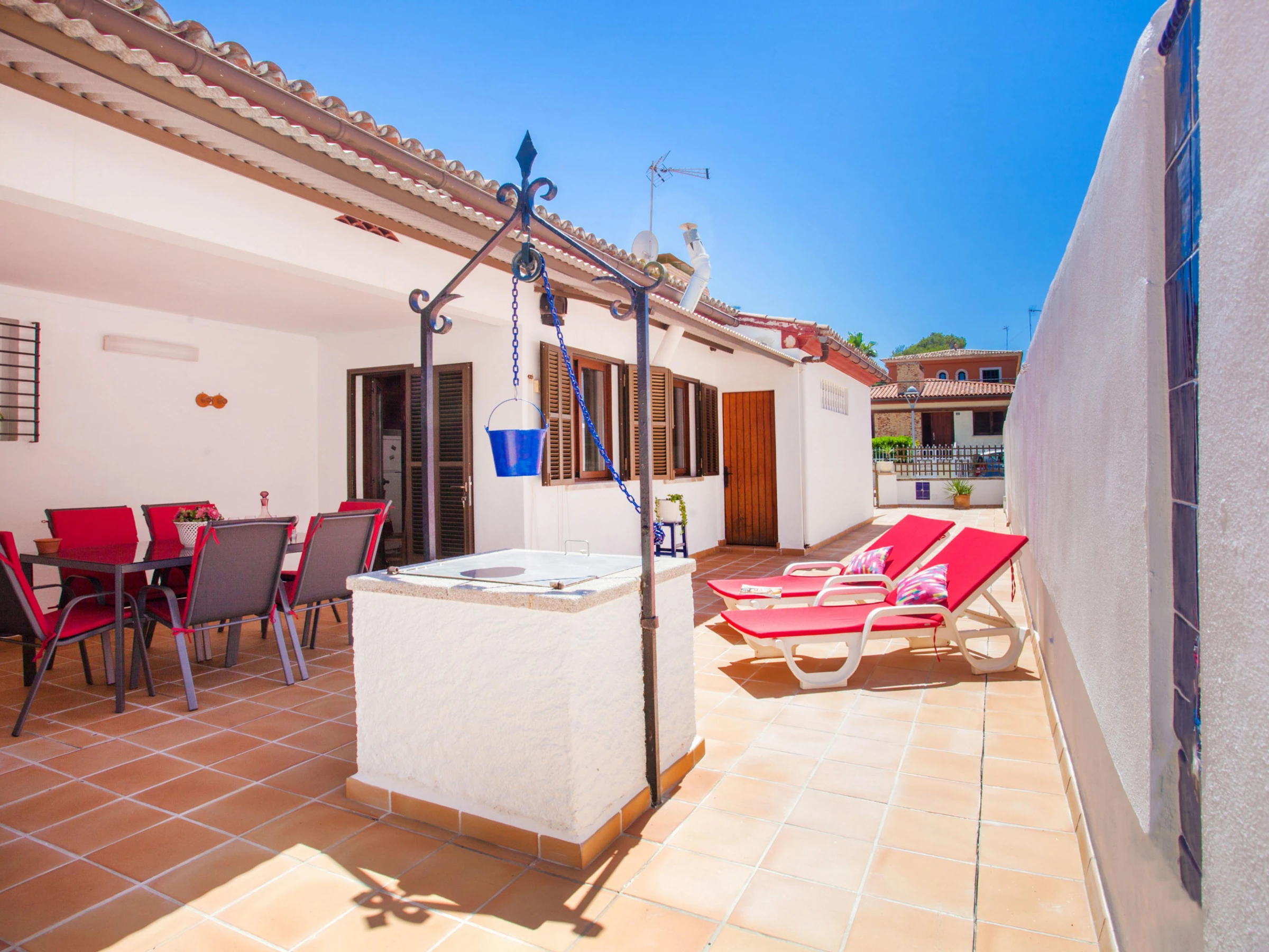 The interior is traditionally decorated with wooden beams and simple furniture. The air-conditioned living/dining room has several armchairs for lounging and watching TV (satellite channels). The table can seat up to six people. The Majorcan kitchen has a ceramic hob, dishwasher and the necessary utensils to prepare meals. In the separate laundry room there is a washing machine, iron and ironing board. The bathroom has a bathtub. You can rest in three bedrooms, two with double bed, air conditioning and wardrobe, and one with two single beds, air conditioning and radiator. If you are travelling with a baby, we can provide a cot and high chair on request.