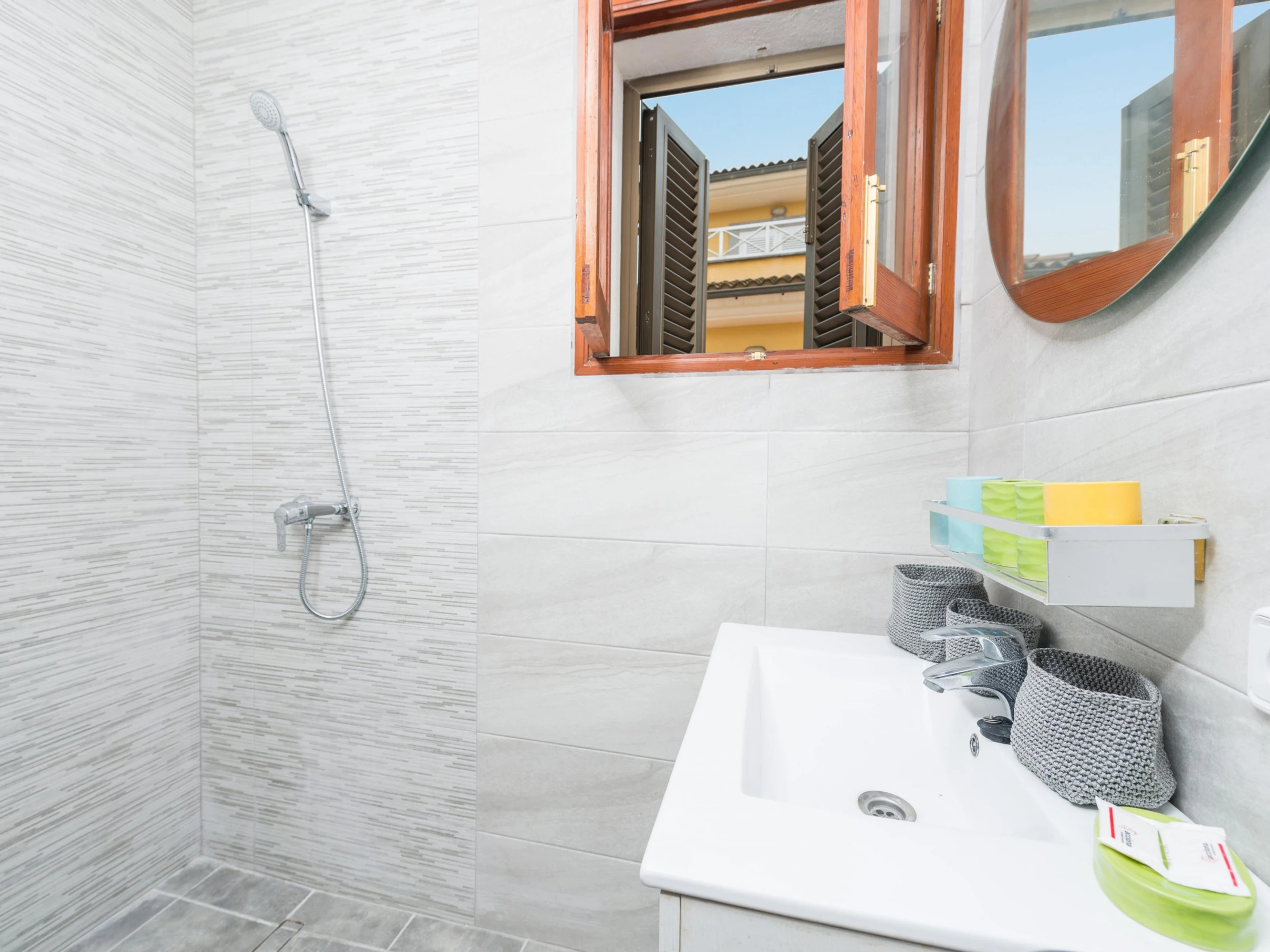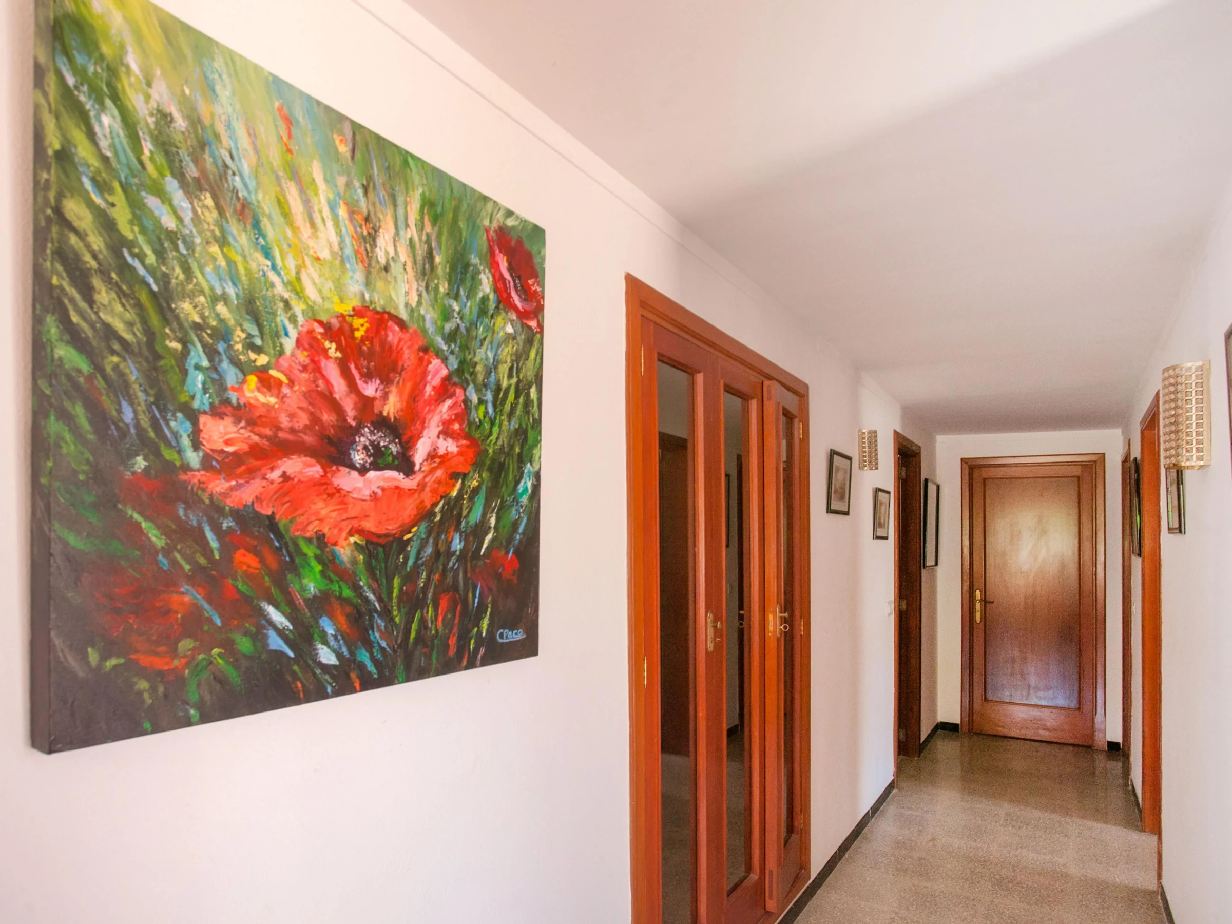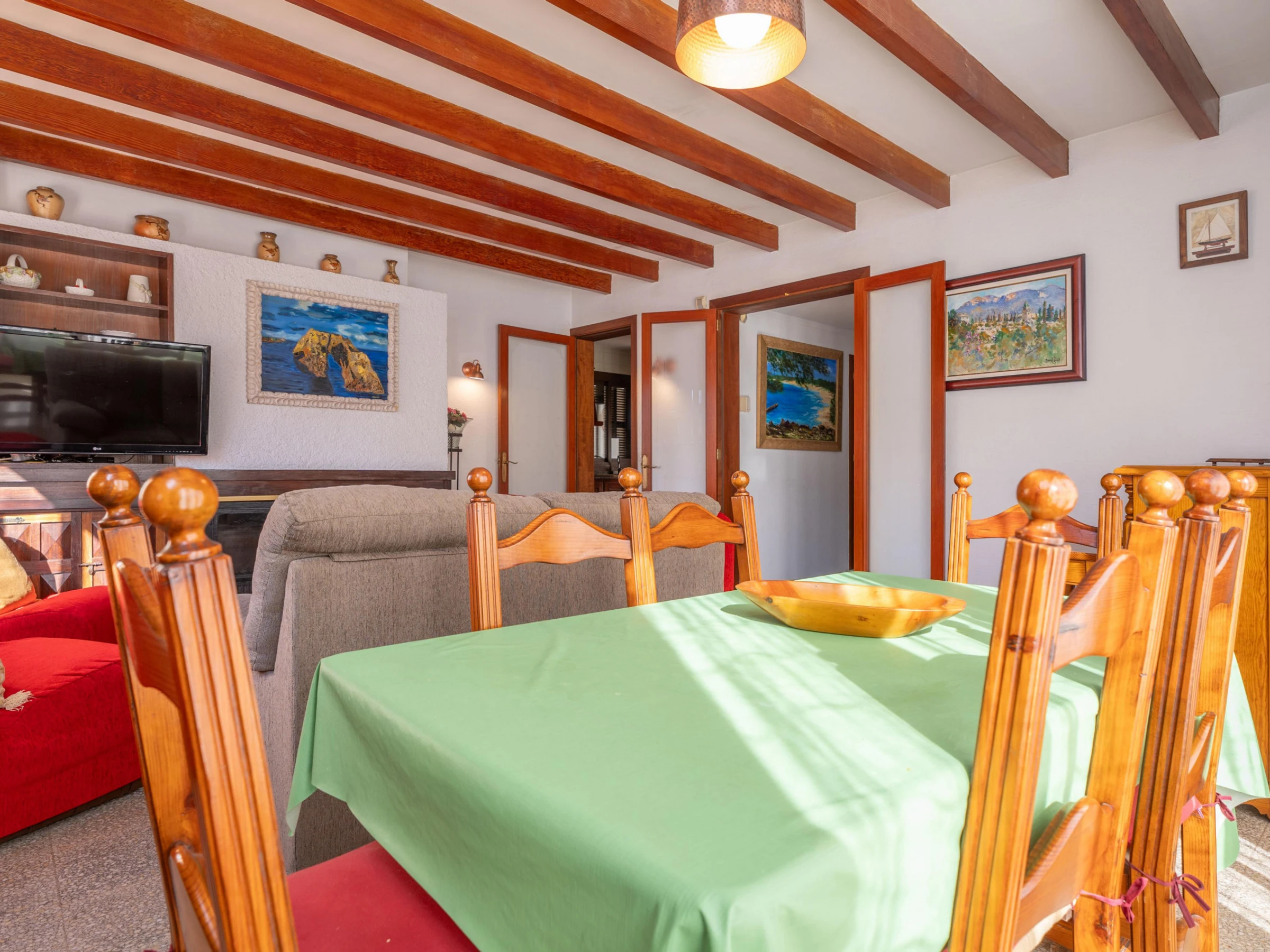 The interior is traditionally decorated with wooden beams and simple furniture. The air-conditioned living/dining room has several armchairs for lounging and watching TV (satellite channels). The table can seat up to six people. The Majorcan kitchen has a ceramic hob, dishwasher and the necessary utensils to prepare meals. In the separate laundry room there is a washing machine, iron and ironing board. The bathroom has a bathtub. You can rest in three bedrooms, two with double bed, air conditioning and wardrobe, and one with two single beds, air conditioning and radiator. If you are travelling with a baby, we can provide a cot and high chair on request.