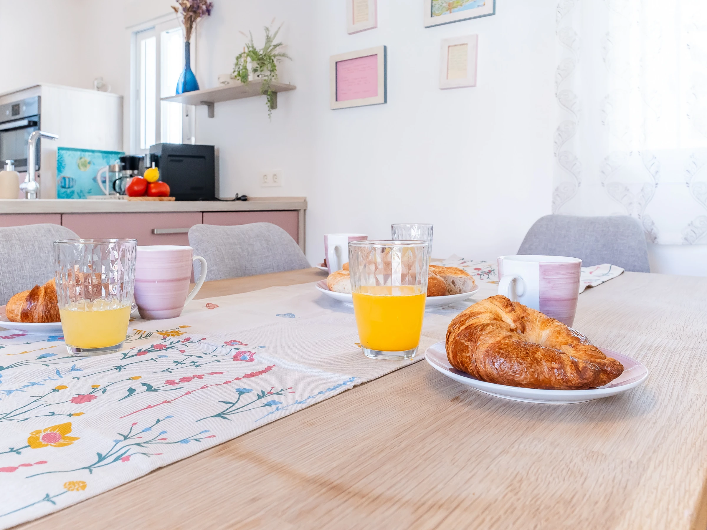 Inside you will find a comfortable lounge with Smart TV, WiFi connection, air conditioning throughout the accommodation and heating, so you can enjoy the house in any season of the year. The modern, fully equipped American kitchen has an oven, microwave, dishwasher, freezer, juicer, kettle, toaster and two options for coffee lovers: filter coffee machine and Nespresso.