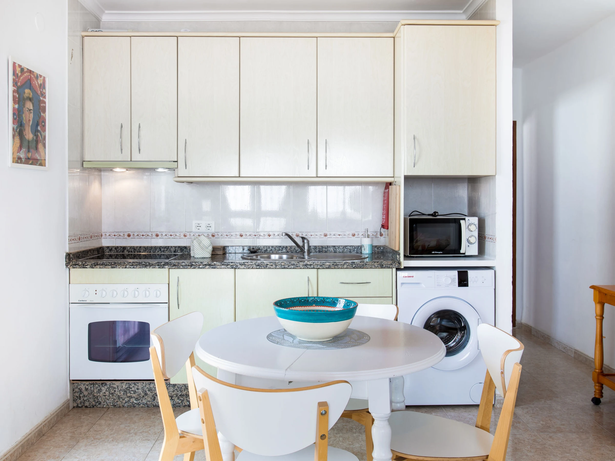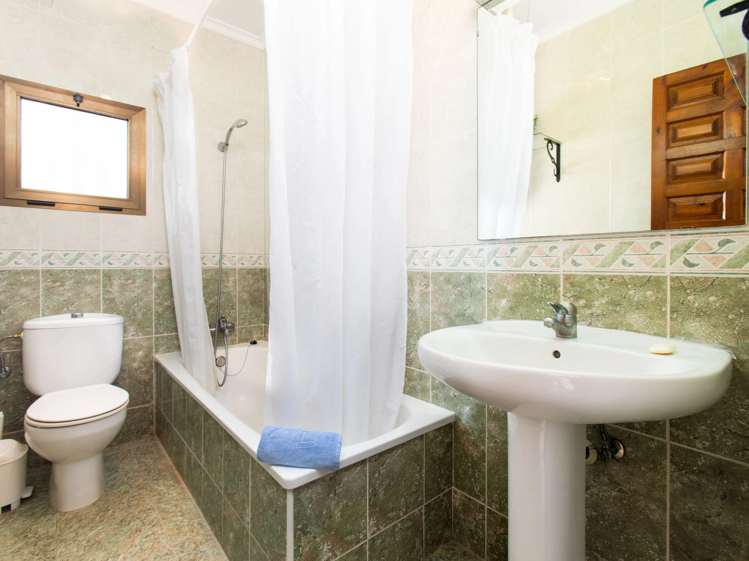 "Maria", 2-room apartment 38 m2, on the lower ground floor. Bright, simple and practical furnishings: living/dining room with 1 double sofabed (135 cm, length 190 cm), digital TV, international TV channels and air conditioning. Exit to the patio. 1 room with 2 beds (90 cm, length 190 cm), air conditioning. Open kitchen (oven, 4 ceramic glass hob hotplates, toaster, kettle, microwave, freezer, electric coffee machine). Exit to the patio. Bath/WC. No heating option. Small patio. Terrace furniture, barbecue, deck chairs. Very beautiful view of the sea. Facilities: washing machine, iron, children's high chair, baby cot for up to 2 year olds, hair dryer. Internet (WiFi, free). Please note: smoke alarm, fire extinguisher. [hidden] // Reg. Nr.: ESFCTU0000290130001279550000000000000000[hidden]4