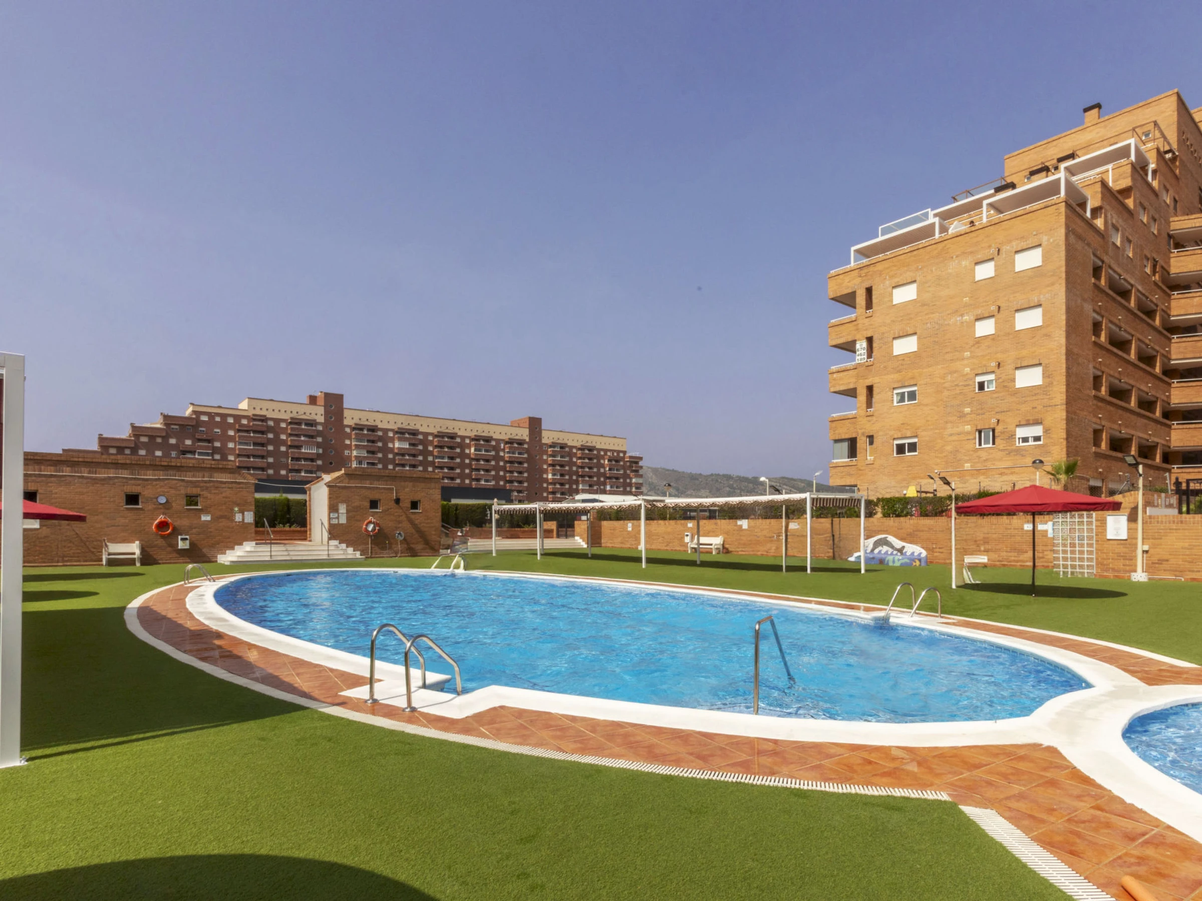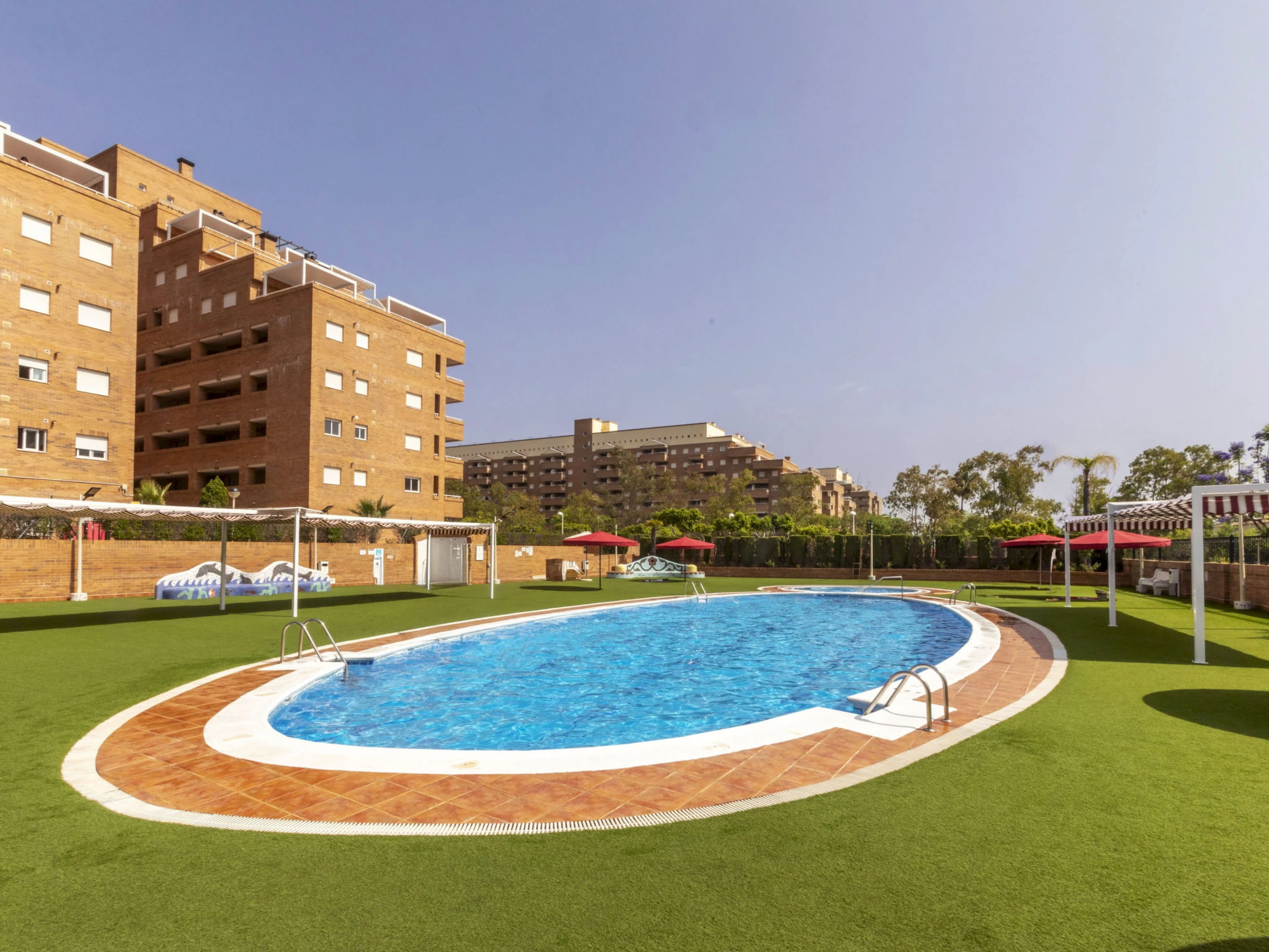 Magic World: Large apartment block "Torremar". In the centre of Magic World, in a central, sunny position, 300 m from the sea, 250 m from the beach. For shared use: garden, swimming pool (20 x 10 m, depth 70 - 240 cm, seasonal availability: [hidden] - [hidden] Children's pool, outdoor shower, children's playground (slide, swing). In the house: lift. Roofed, parking at the house, public parking on the road. Parking space or garage only for small to medium-sized cars. Supermarket 100 m, restaurant 200 m, bus stop 100 m, railway station "Oropesa de Mar" 3 km, sandy beach 250 m. Children's playground 200 m. Nearby attractions: Jardín Encantado 500 m. Please note: entertainment in the season. Suitable for families. Groups of teenagers on request only. Neighbourhood highly sensitive to noise. Quietness and good behaviour expected.