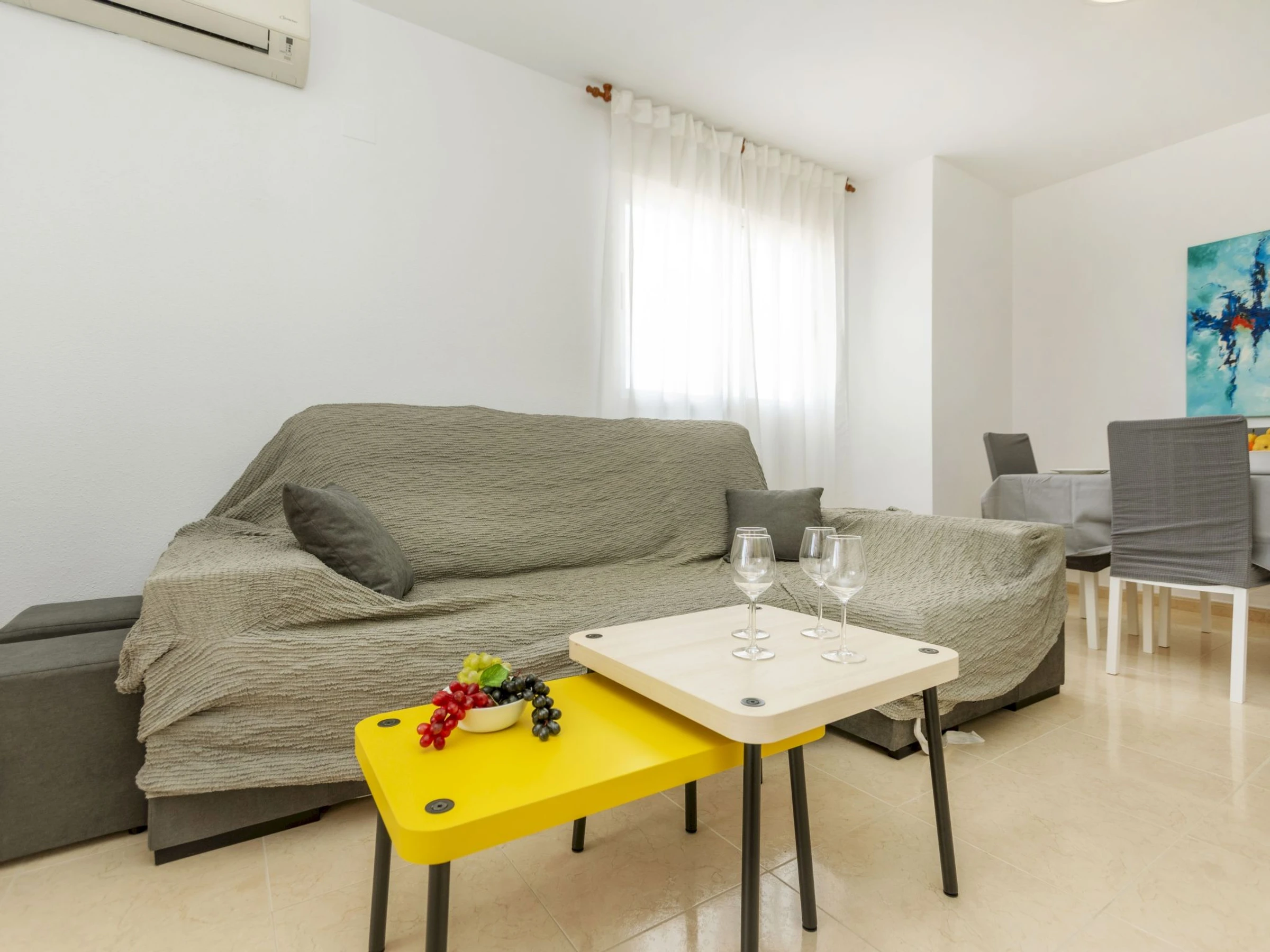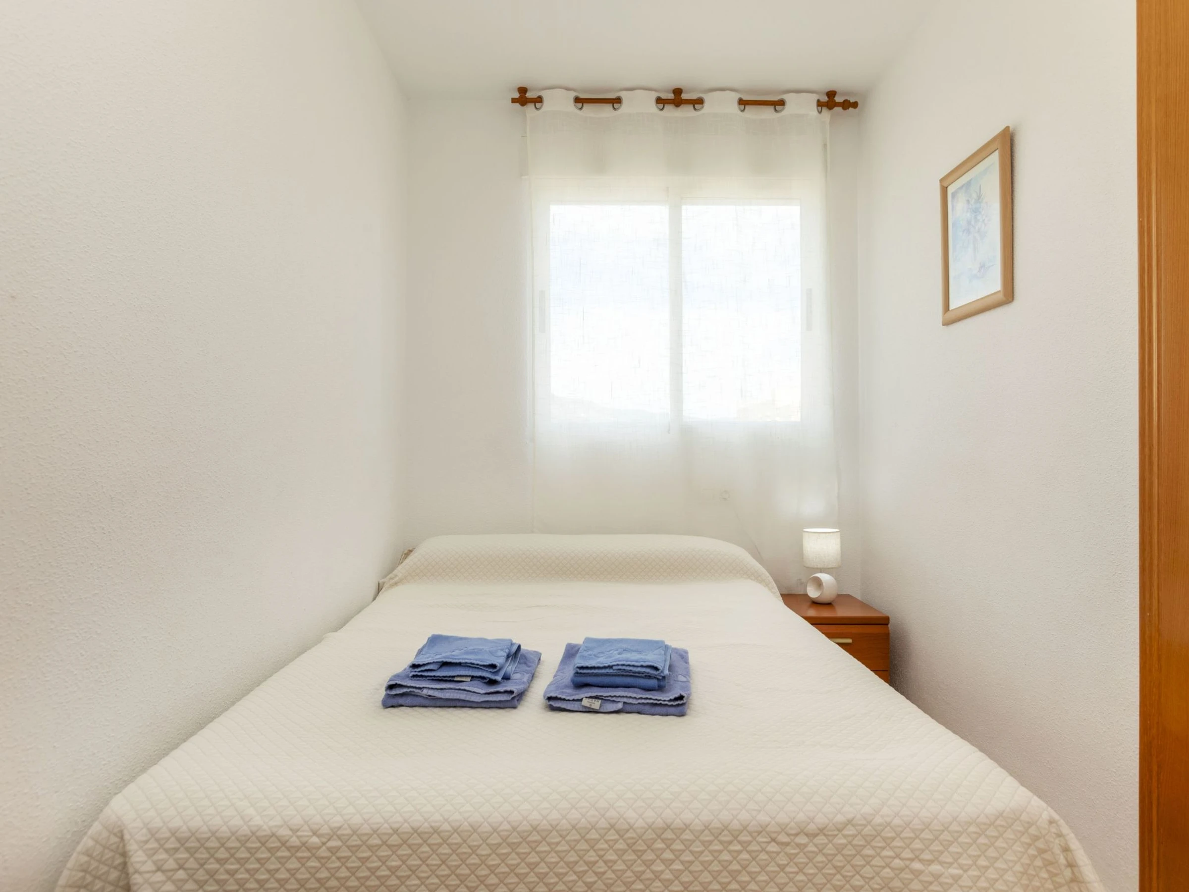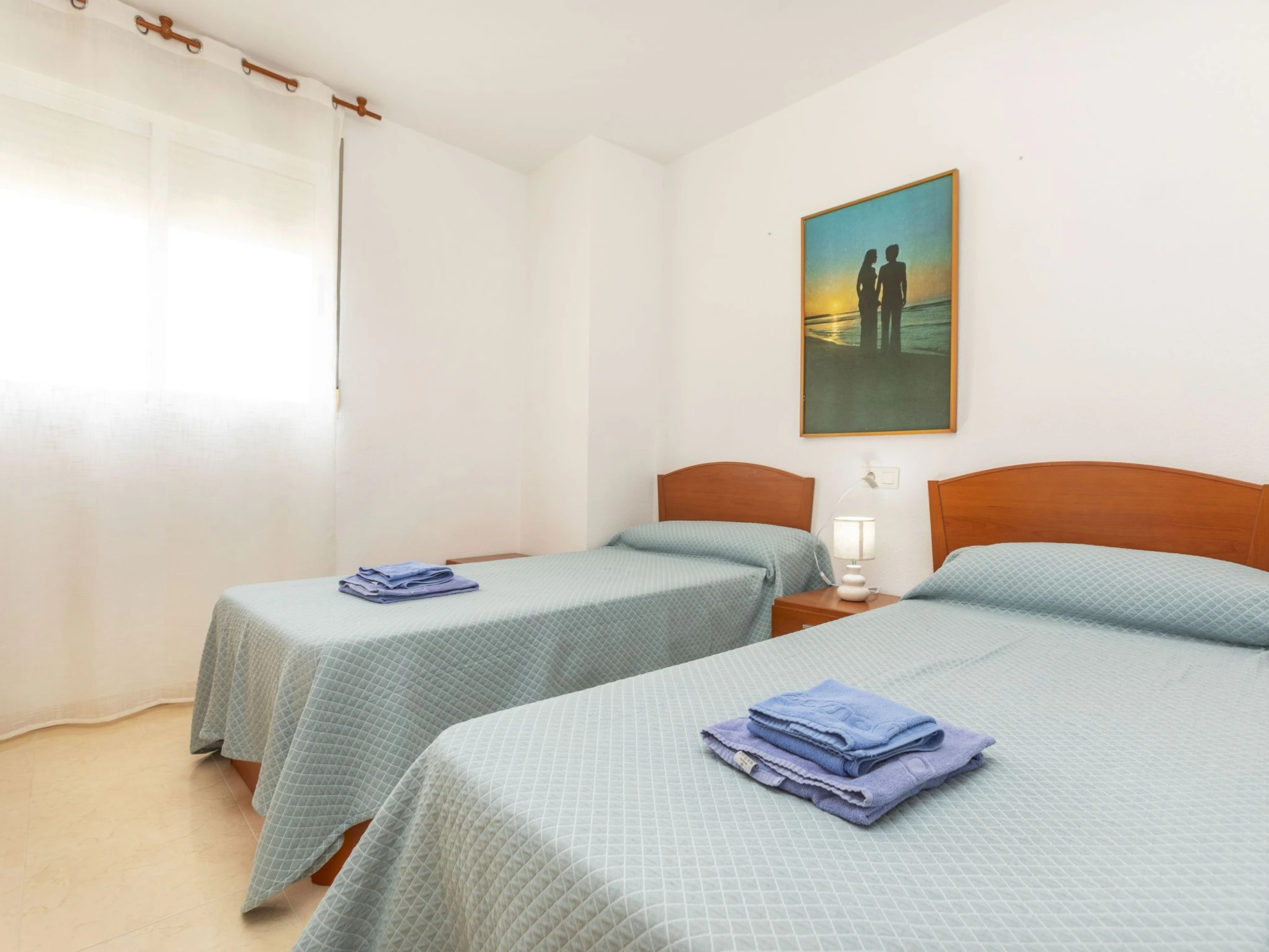 "Acapulco III", 4-room apartment 60 m2 on 5th floor. Very modern furnishings: living/dining room with dining table, digital TV, flat screen, air conditioning and forced-air heating. Exit to the terrace. 1 room with 2 beds (90 cm, length 190 cm). 1 room with 1 french bed (135 cm, length 190 cm). 1 room with 1 french bed (150 cm, length 190 cm), bath/bidet/WC. Kitchen (oven, dishwasher, 4 ceramic glass hob hotplates, toaster, microwave, freezer, electric coffee machine, Capsules for coffee machine (Dolce Gusto) extra) with boiler (75 litres). Shower/bidet/WC. Heating not available in all rooms. Terrace. Terrace furniture. View of the mountains. Facilities: washing machine, iron, hair dryer. Internet (WiFi, free). Parking space n 244 (roofed). Please note: suitable for families. TV only ES. [hidden] // Reg. Nr.: ESFCTU000012026000241088000000000000[hidden]0