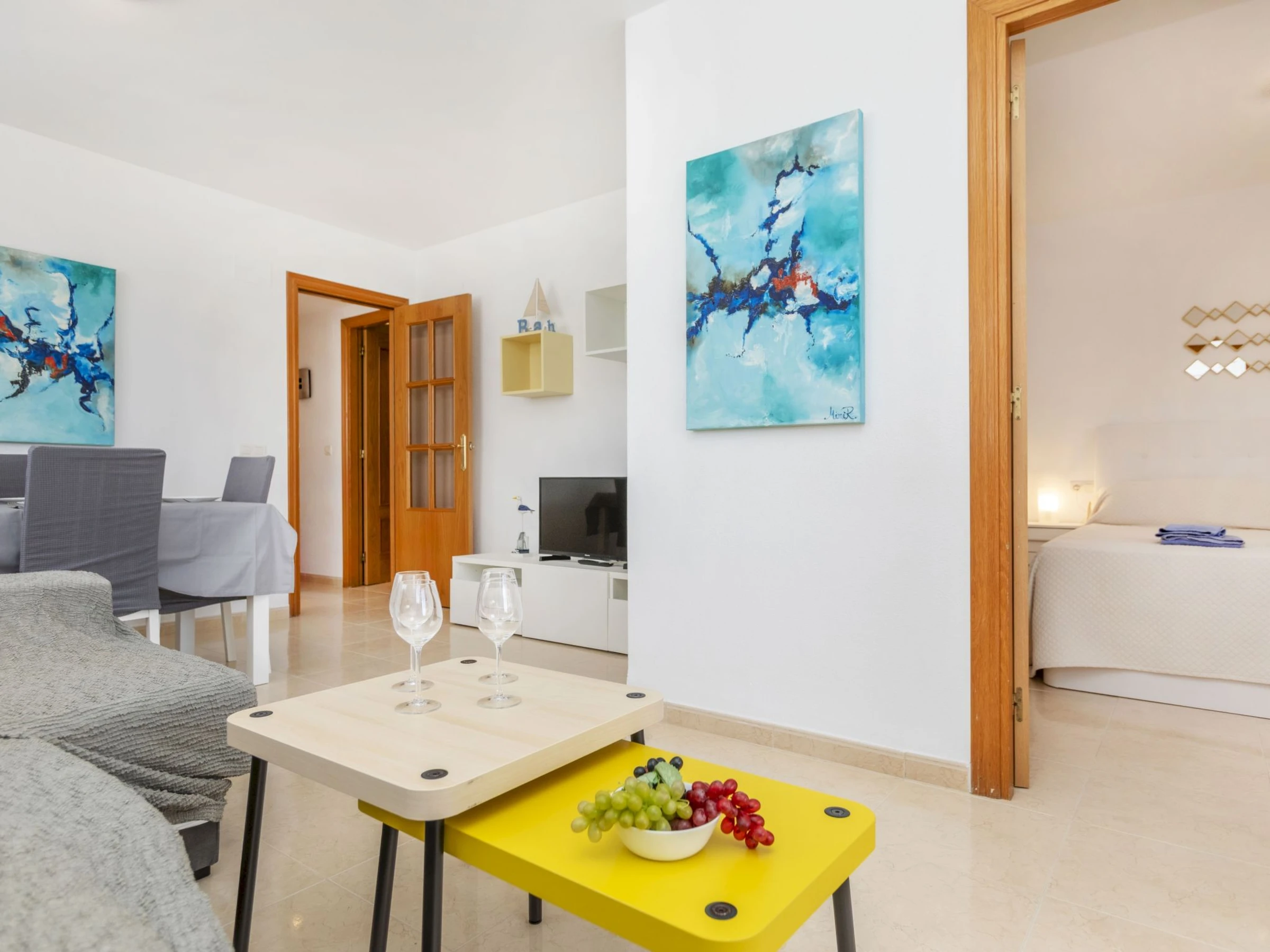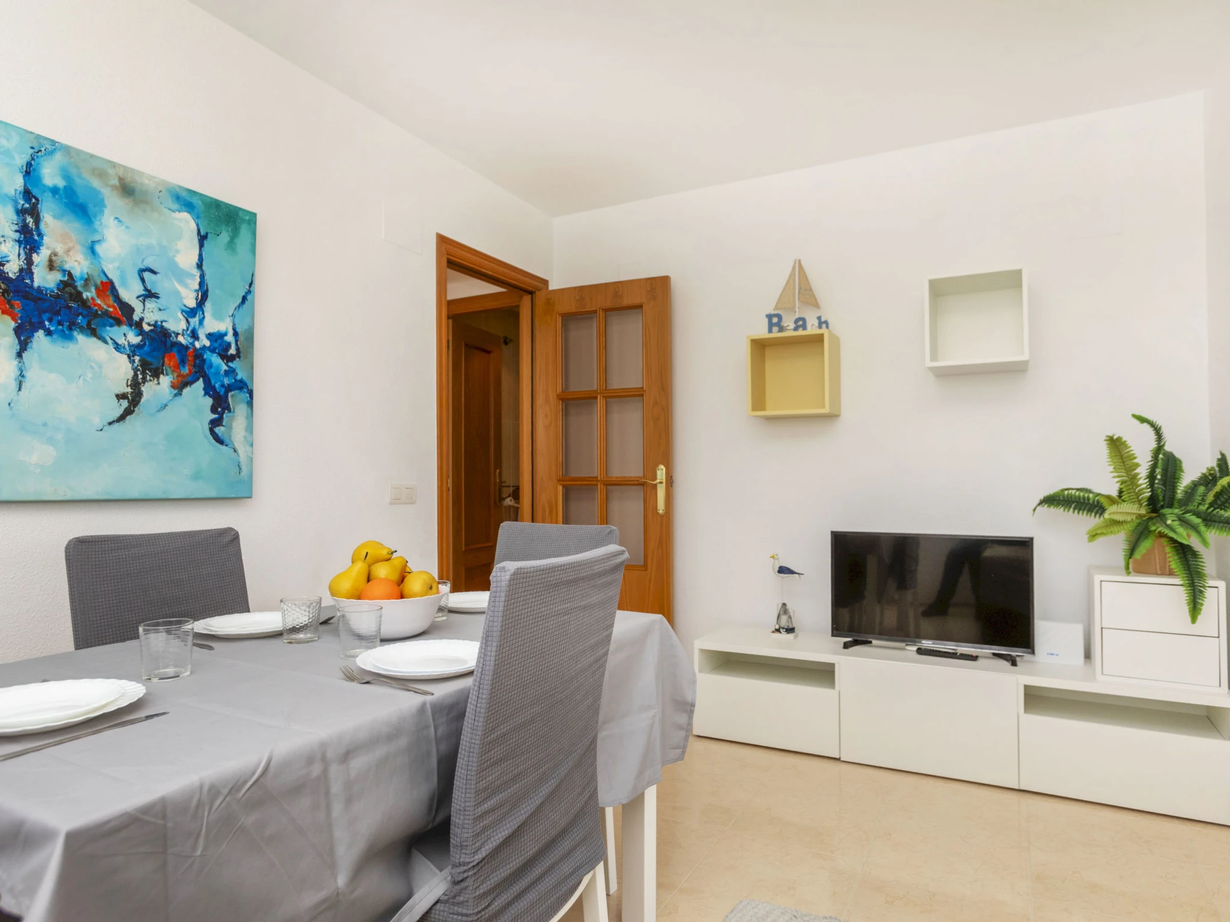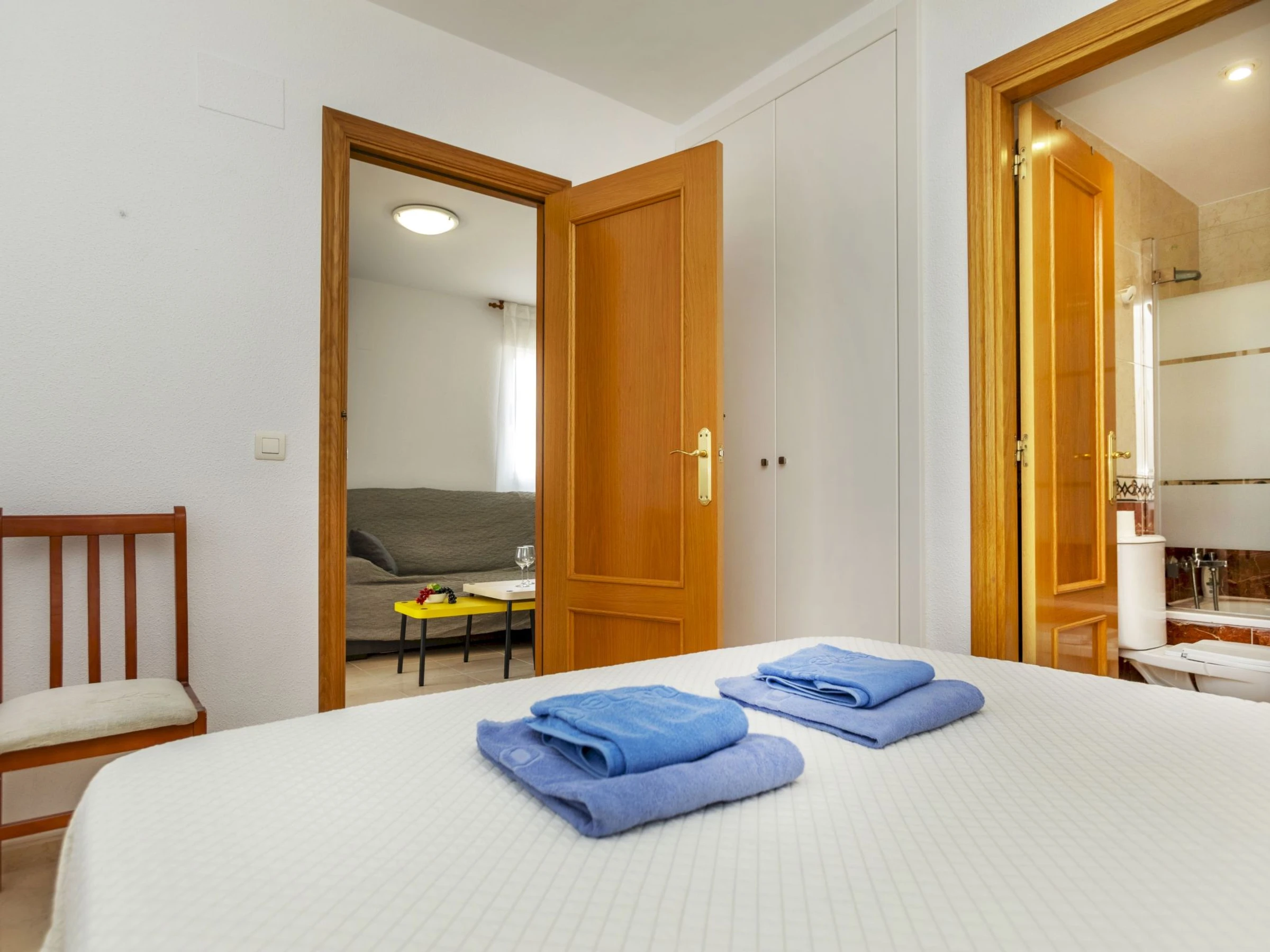 "Acapulco III", 4-room apartment 60 m2 on 5th floor. Very modern furnishings: living/dining room with dining table, digital TV, flat screen, air conditioning and forced-air heating. Exit to the terrace. 1 room with 2 beds (90 cm, length 190 cm). 1 room with 1 french bed (135 cm, length 190 cm). 1 room with 1 french bed (150 cm, length 190 cm), bath/bidet/WC. Kitchen (oven, dishwasher, 4 ceramic glass hob hotplates, toaster, microwave, freezer, electric coffee machine, Capsules for coffee machine (Dolce Gusto) extra) with boiler (75 litres). Shower/bidet/WC. Heating not available in all rooms. Terrace. Terrace furniture. View of the mountains. Facilities: washing machine, iron, hair dryer. Internet (WiFi, free). Parking space n 244 (roofed). Please note: suitable for families. TV only ES. [hidden] // Reg. Nr.: ESFCTU000012026000241088000000000000[hidden]0