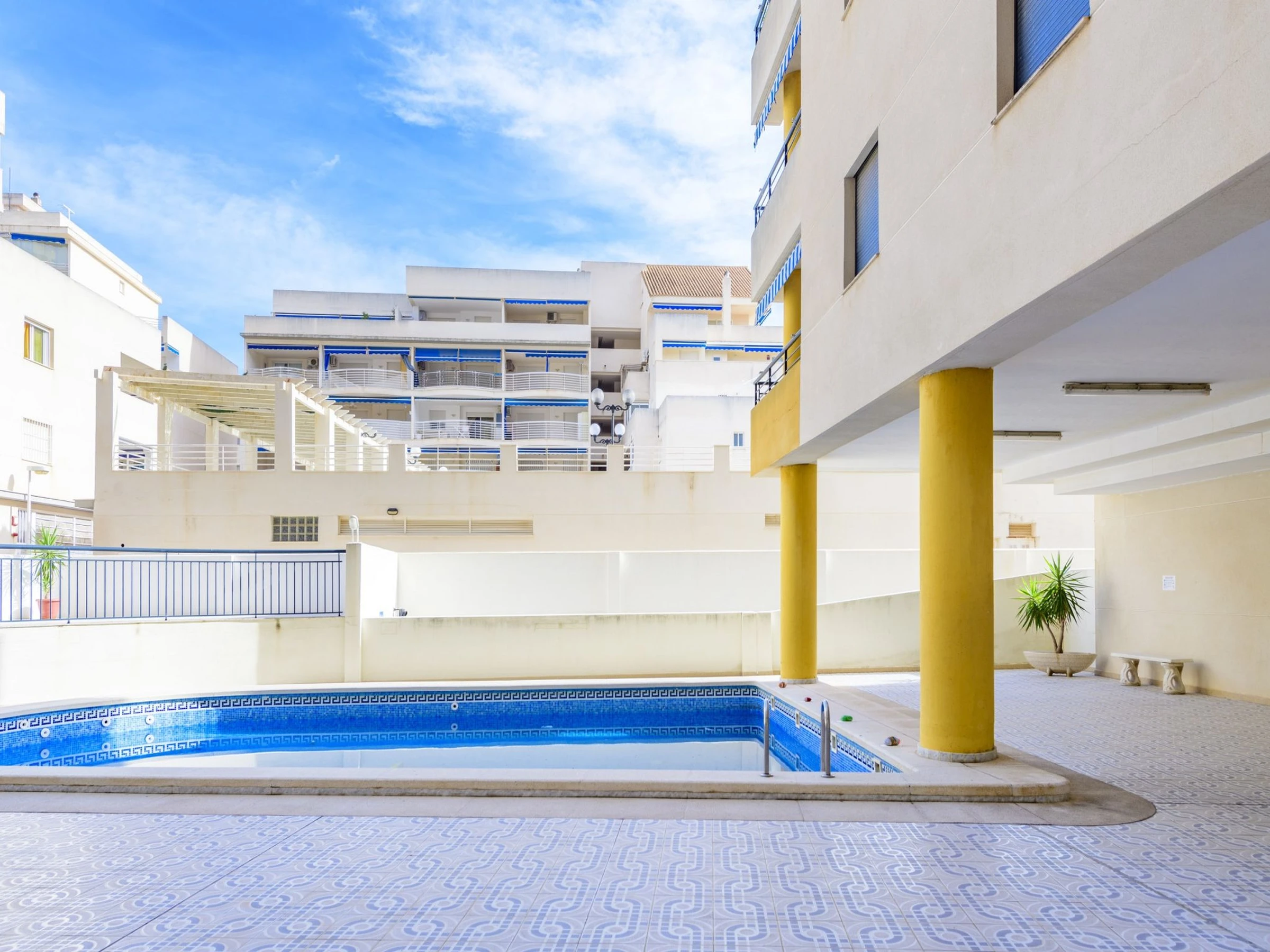 Apartment block "Torre del Rey". In a quiet, sunny position, 50 m from the sea, 50 m from the beach. For shared use: swimming pool (11 x 6 m, depth 190 - 210 cm, seasonal availability: [hidden] - [hidden] Outdoor shower. In the house: lift. Single garage space n 11 (-2. Grocery 200 m, supermarket 500 m, restaurant, bar, café 200 m, bus stop 2 km, railway station "Oropesa" 1.3 km, sandy beach "La Concha" 200 m. The owner does not accept any groups. Neighbourhood highly sensitive to noise. Quietness and good behaviour expected.