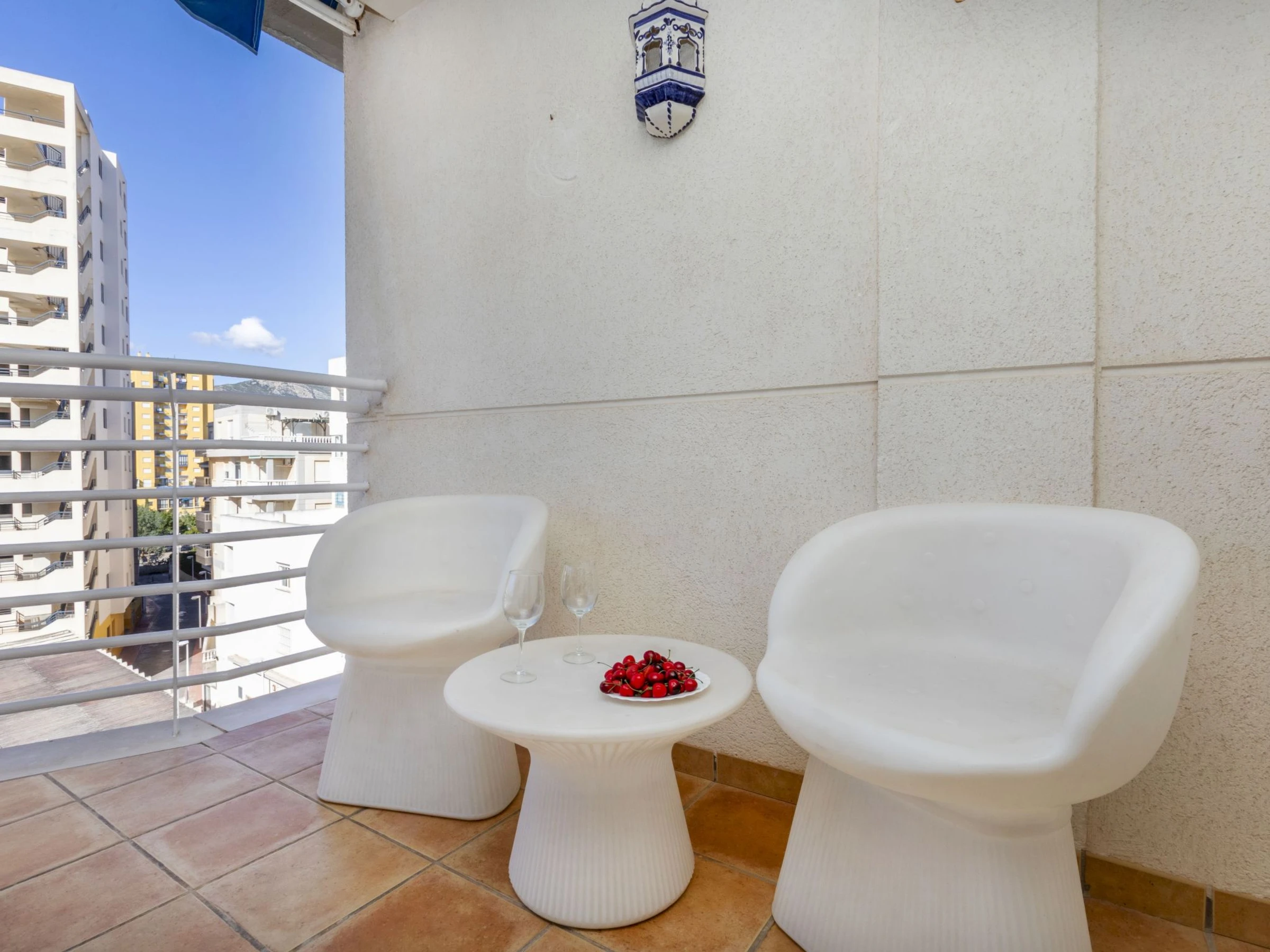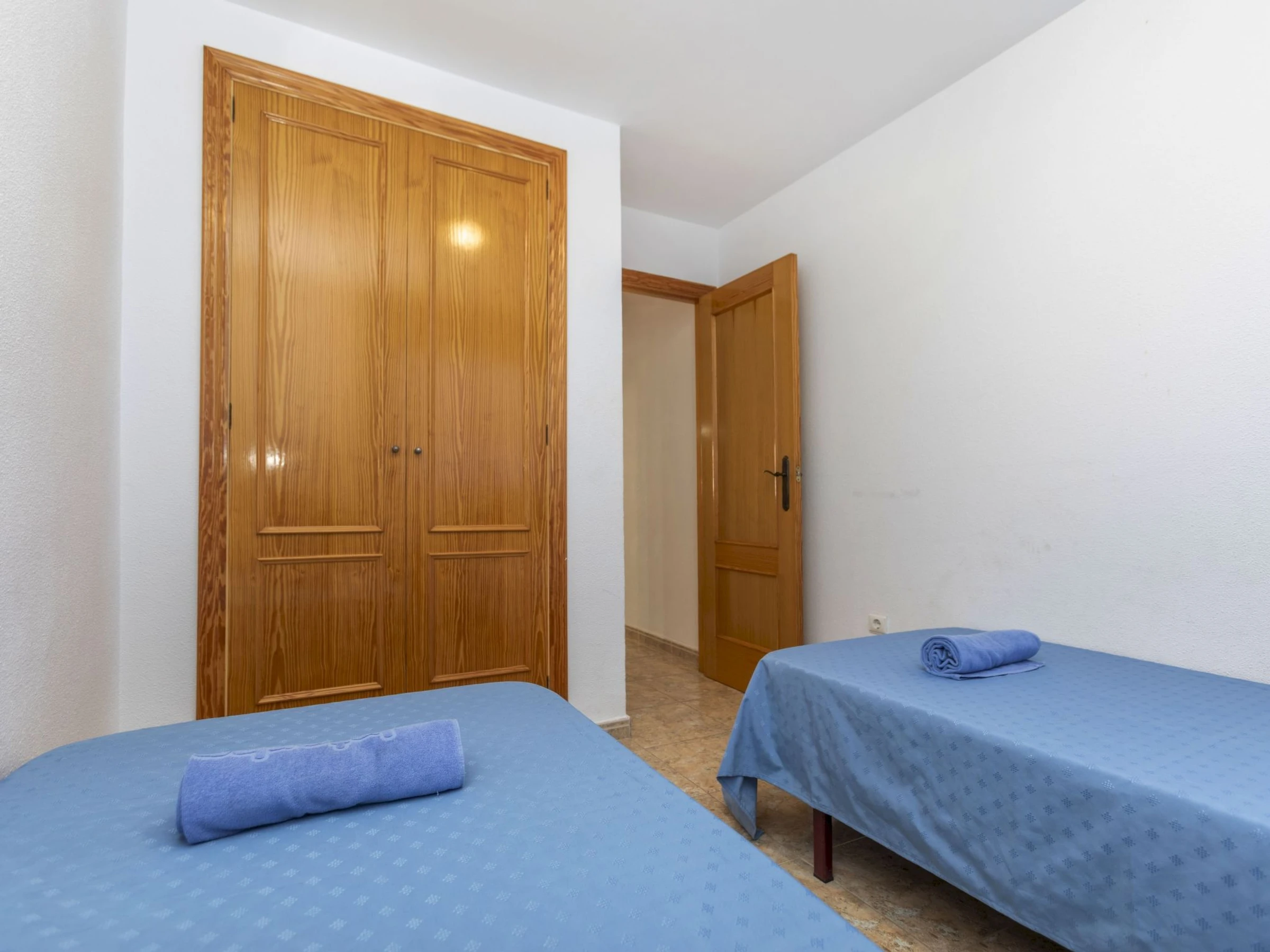 "Oroblanc", 3-room apartment 65 m2 on 3rd floor. Comfortable furnishings: living/dining room with 1 double sofabed, digital TV, flat screen and DVD. Exit to the terrace. 1 room with 1 french bed. 1 room with 2 beds. Kitchen (oven, 4 ceramic glass hob hotplates, toaster, microwave, freezer, electric coffee machine). Bath/bidet/WC. No heating option. Small terrace 18 m2. Terrace furniture, deck chairs (2). View of the mountains, the countryside and the resort. Facilities: washing machine, iron, hair dryer. Internet (WiFi, free). Parking. Suitable for families. [hidden] // Reg. Nr.: ESFCTU00001202600022199800000000000000000[hidden]3