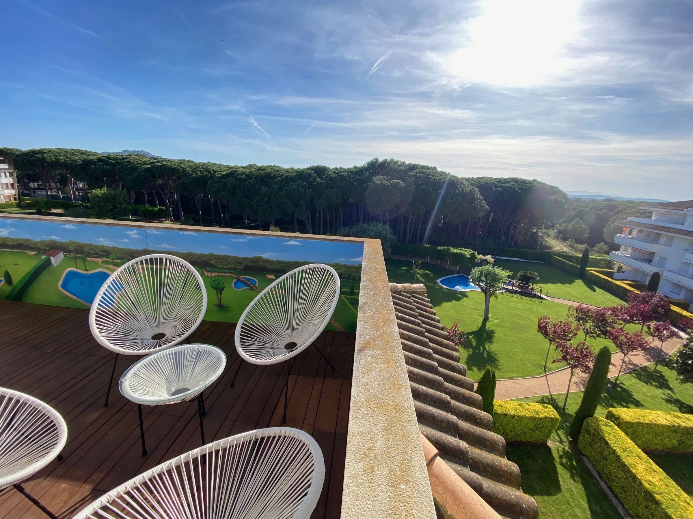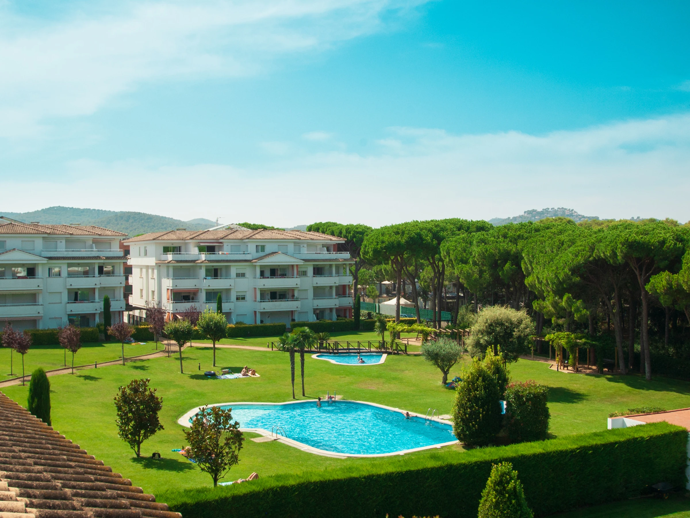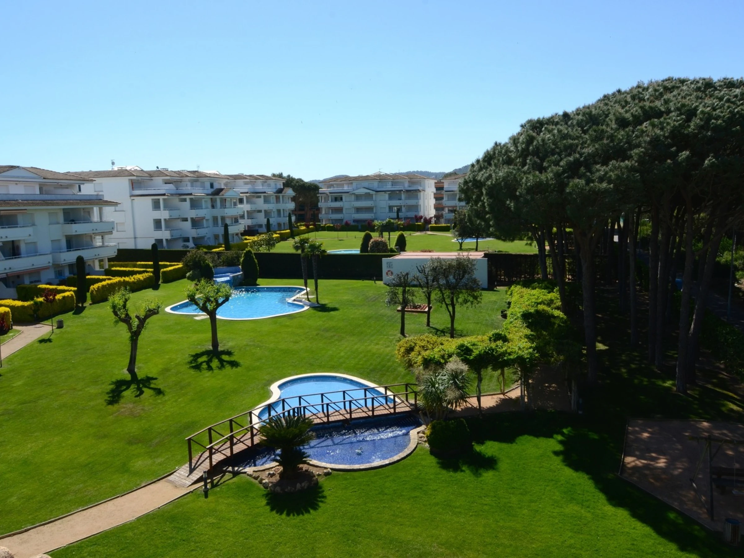 This elegant penthouse with a capacity for 6 people offers the convenience of being close to the beach. It also features community pools, an elevator, parking, and air conditioning.This wonderful penthouse has 3 bedrooms and two bathrooms, including one en-suite. The apartment is well-equipped and decorated with nautical motifs that create a light and relaxing atmosphere. From the terrace, you can enjoy views of the pool and gardens, benefiting from wonderful light throughout the day thanks to its west [hidden] your comfort, the penthouse has air conditioning in the living room and the main bedroom, ensuring a cool ambiance throughout the [hidden] accommodation is right in front of the Pineda de Pals, a forest that brings fresh air to the terrace. It is located in the Pals Playa area, which is a privileged zone of the Catalan Costa Brava. You'll be close to everything you need. The Jodofi supermarket is less than 1 km away, and within 3 km, you'll find an excellent selection of restaurants to enjoy delicious local cuisine. Additionally, you can explore the charming nearby towns of Pals, Torroella de Montgrí, and L'Estartit, providing you with a variety of options to explore during your stay.Enjoy an unforgettable stay in this elegant and well-equipped penthouse. Its pools, its bright terrace, and its proximity to the beach ensure a perfect vacation on the Costa Brava.IMPORTANT: The reasonable consumption of 15 kW per day is included. In case of discounted off-season monthly rental, electricity is NOT included and is paid separately!!!