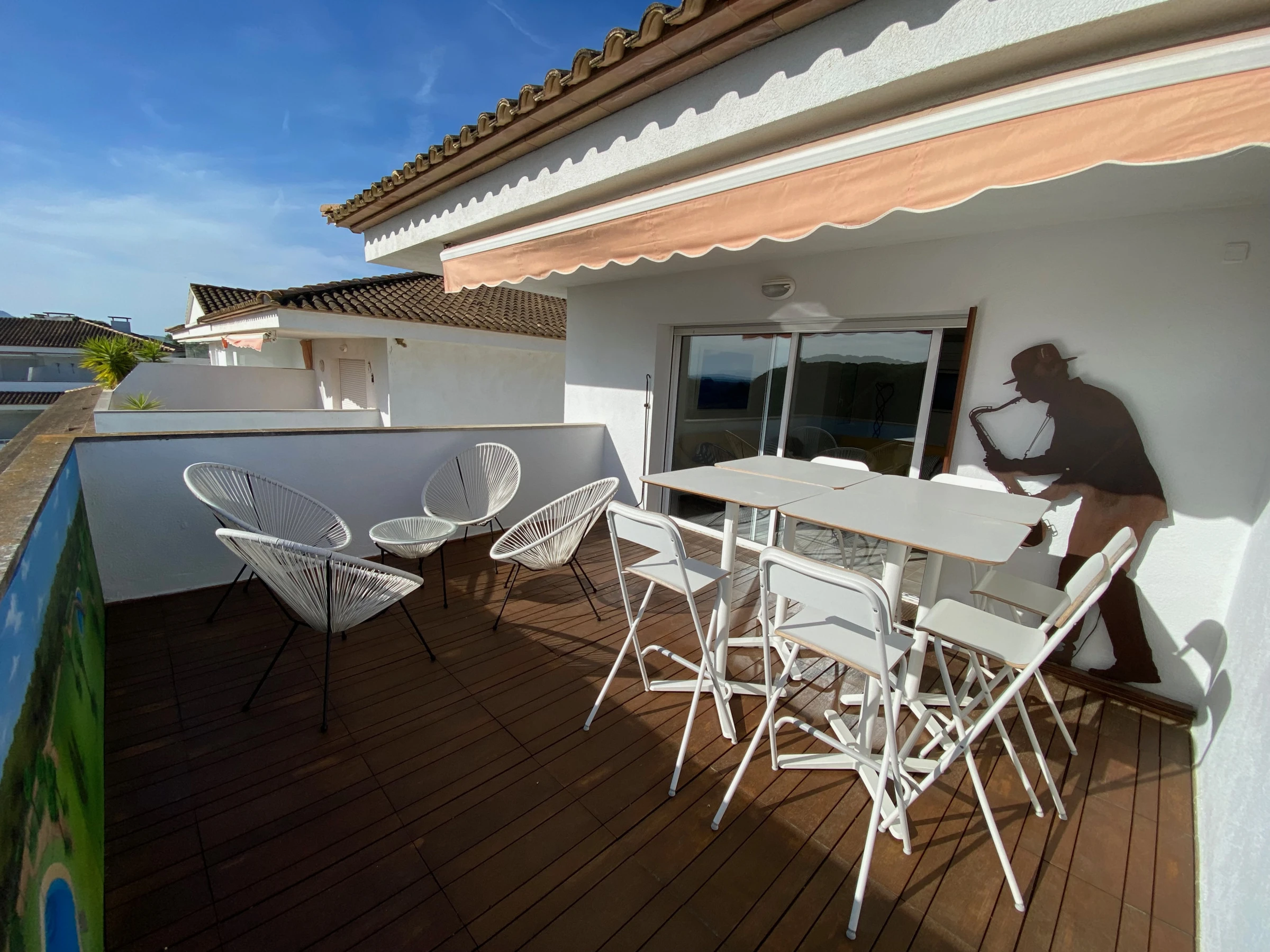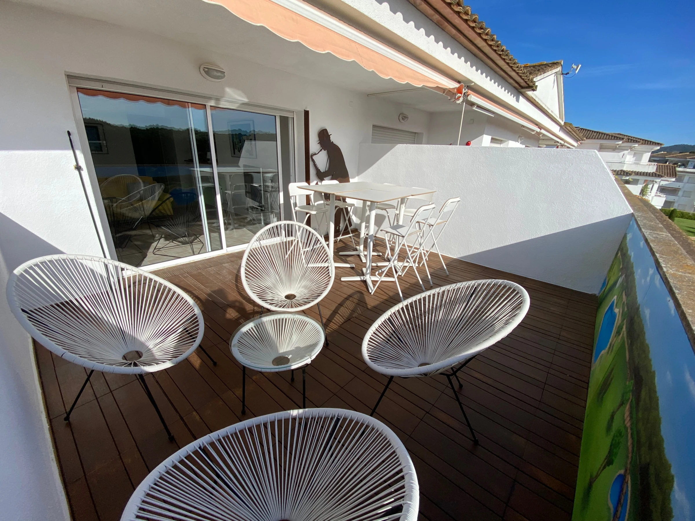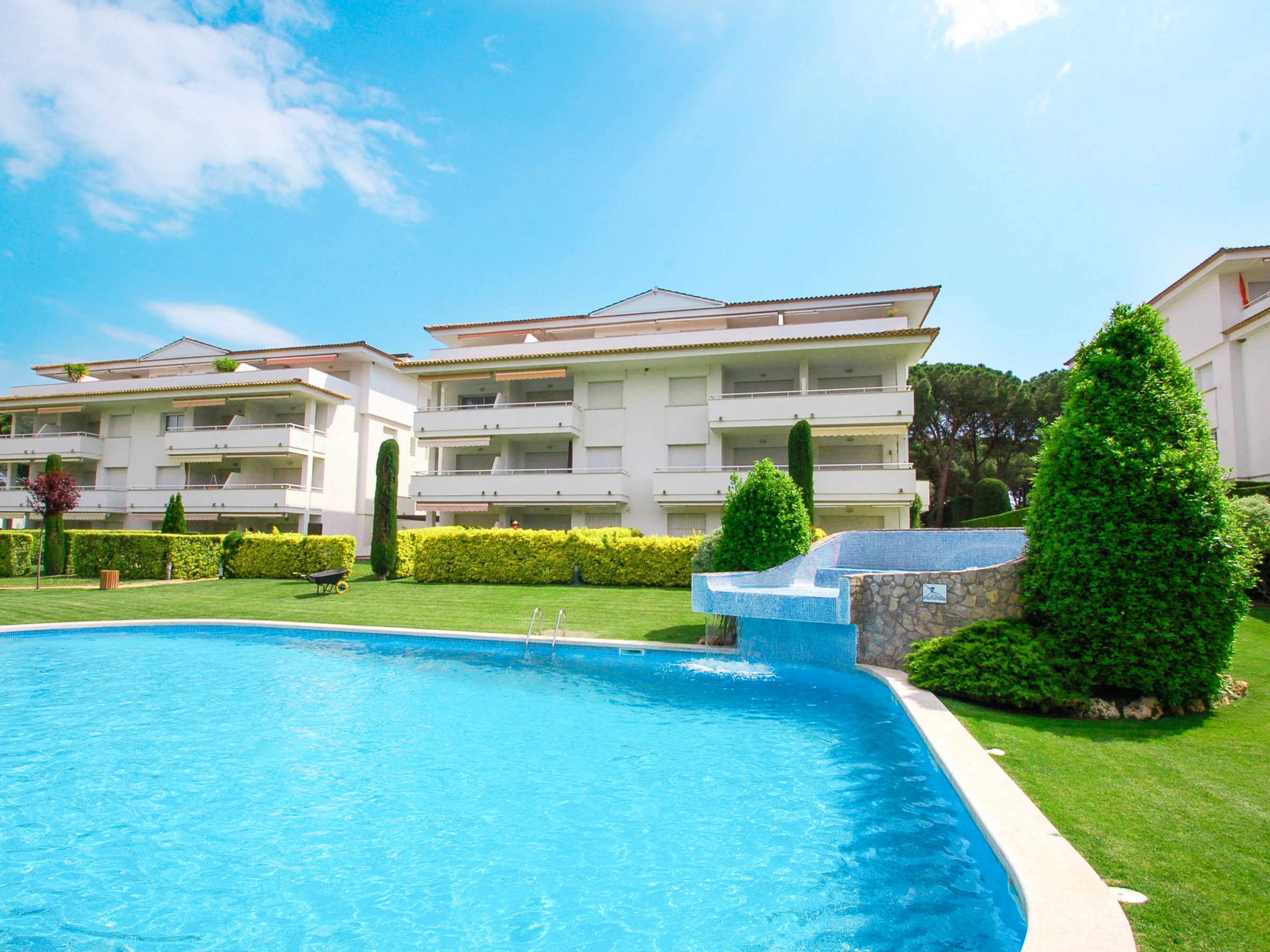 This elegant penthouse with a capacity for 6 people offers the convenience of being close to the beach. It also features community pools, an elevator, parking, and air conditioning.This wonderful penthouse has 3 bedrooms and two bathrooms, including one en-suite. The apartment is well-equipped and decorated with nautical motifs that create a light and relaxing atmosphere. From the terrace, you can enjoy views of the pool and gardens, benefiting from wonderful light throughout the day thanks to its west [hidden] your comfort, the penthouse has air conditioning in the living room and the main bedroom, ensuring a cool ambiance throughout the [hidden] accommodation is right in front of the Pineda de Pals, a forest that brings fresh air to the terrace. It is located in the Pals Playa area, which is a privileged zone of the Catalan Costa Brava. You'll be close to everything you need. The Jodofi supermarket is less than 1 km away, and within 3 km, you'll find an excellent selection of restaurants to enjoy delicious local cuisine. Additionally, you can explore the charming nearby towns of Pals, Torroella de Montgrí, and L'Estartit, providing you with a variety of options to explore during your stay.Enjoy an unforgettable stay in this elegant and well-equipped penthouse. Its pools, its bright terrace, and its proximity to the beach ensure a perfect vacation on the Costa Brava.IMPORTANT: The reasonable consumption of 15 kW per day is included. In case of discounted off-season monthly rental, electricity is NOT included and is paid separately!!!