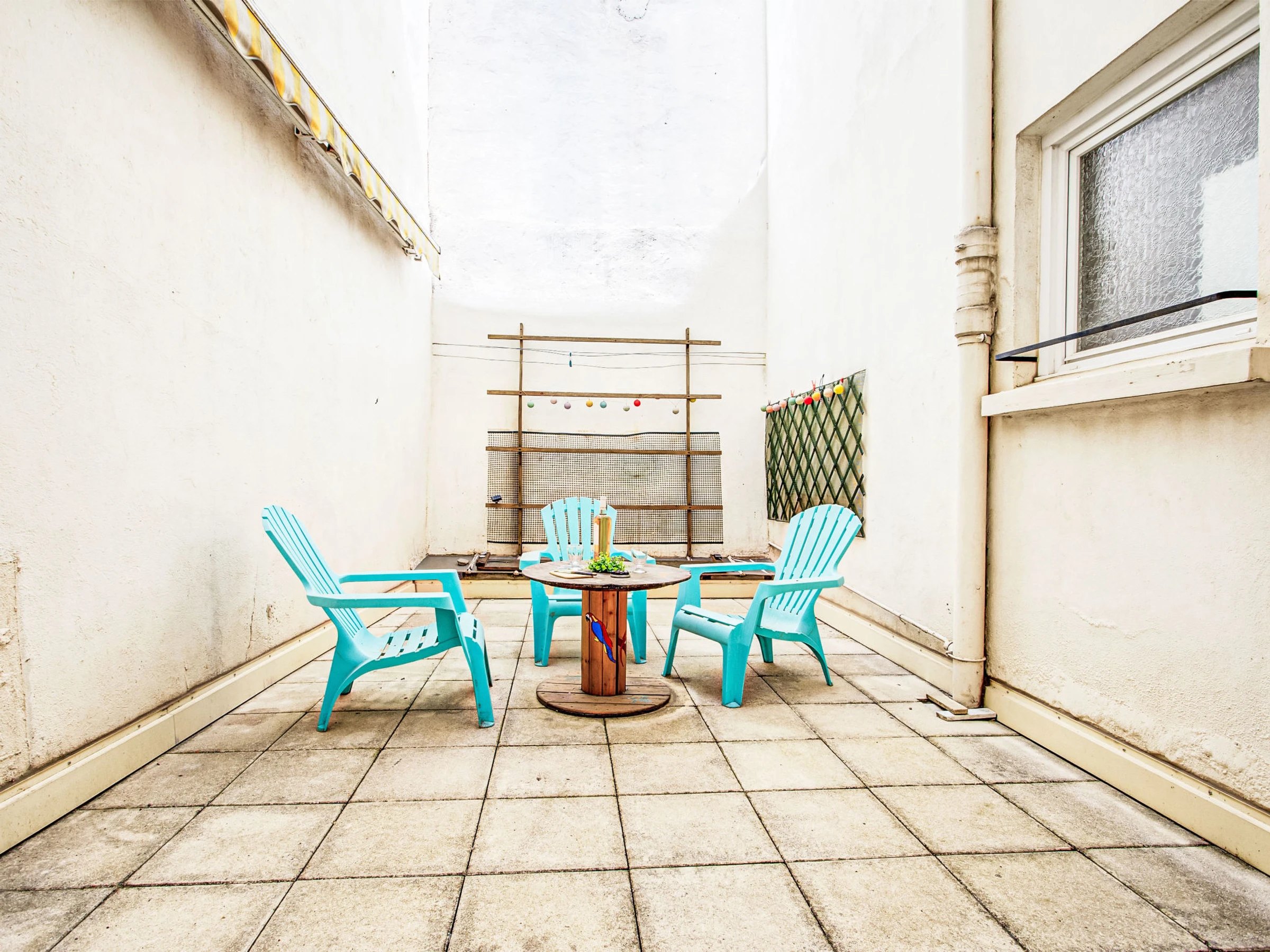 3-room apartment 70 m2 on 1st floor. Beautiful furnishings: living/dining room. 1 room with 2 beds (90 cm, length 190 cm). 1 room with 1 french bed (1 x 140 cm, length 190 cm). Kitchen (4 hot plates, oven, kettle, freezer, electric coffee machine). Exit to the terrace. Bathroom, sep. WC. Electric heating. Terrace 12 m2. Terrace furniture. Facilities: washing machine. Internet (WiFi, extra). Garage. Please note: non-smokers only. Smoke alarm. Offer by a private individual according to  Art. 155, IV of CGI.