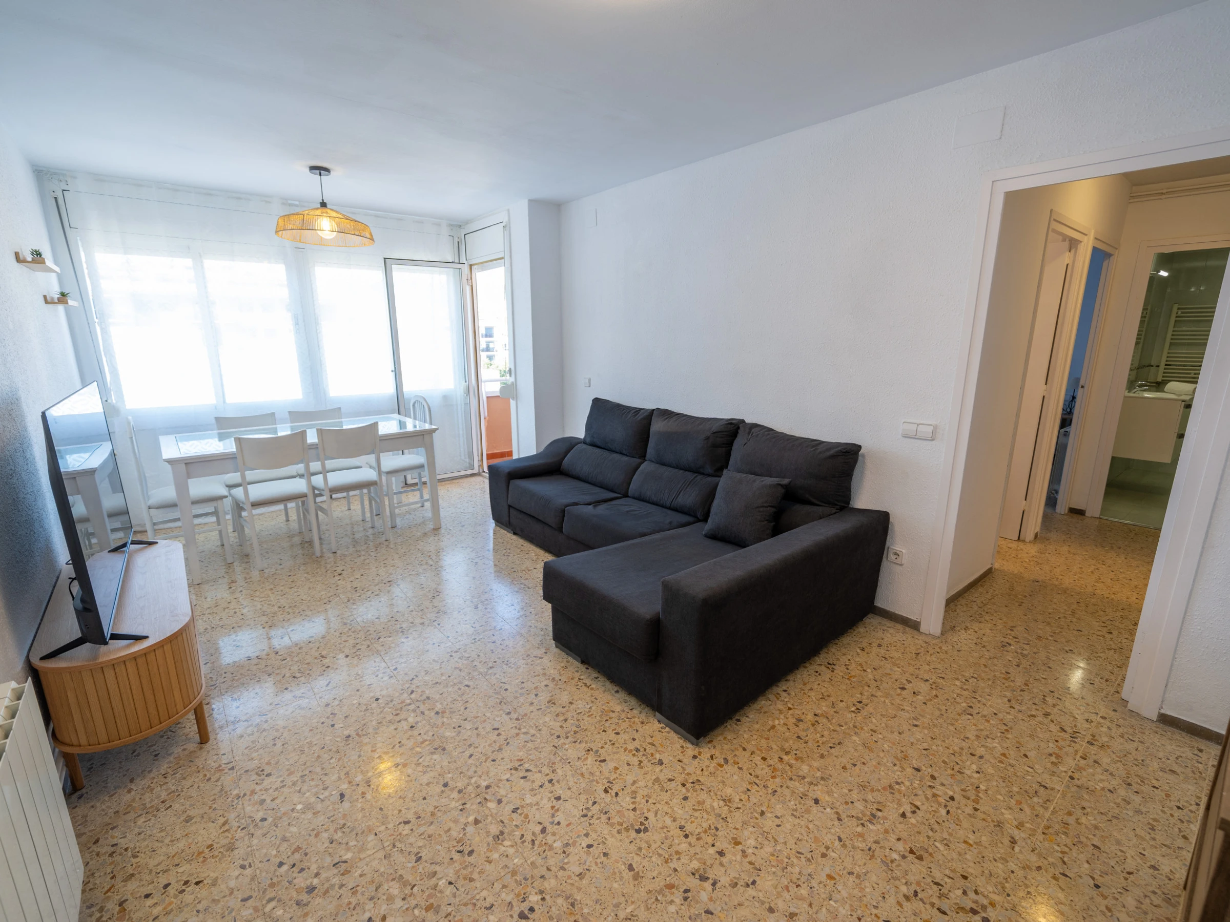 The apartment in Pineda de Mar has 4 bedrooms and capacity for 6 people.