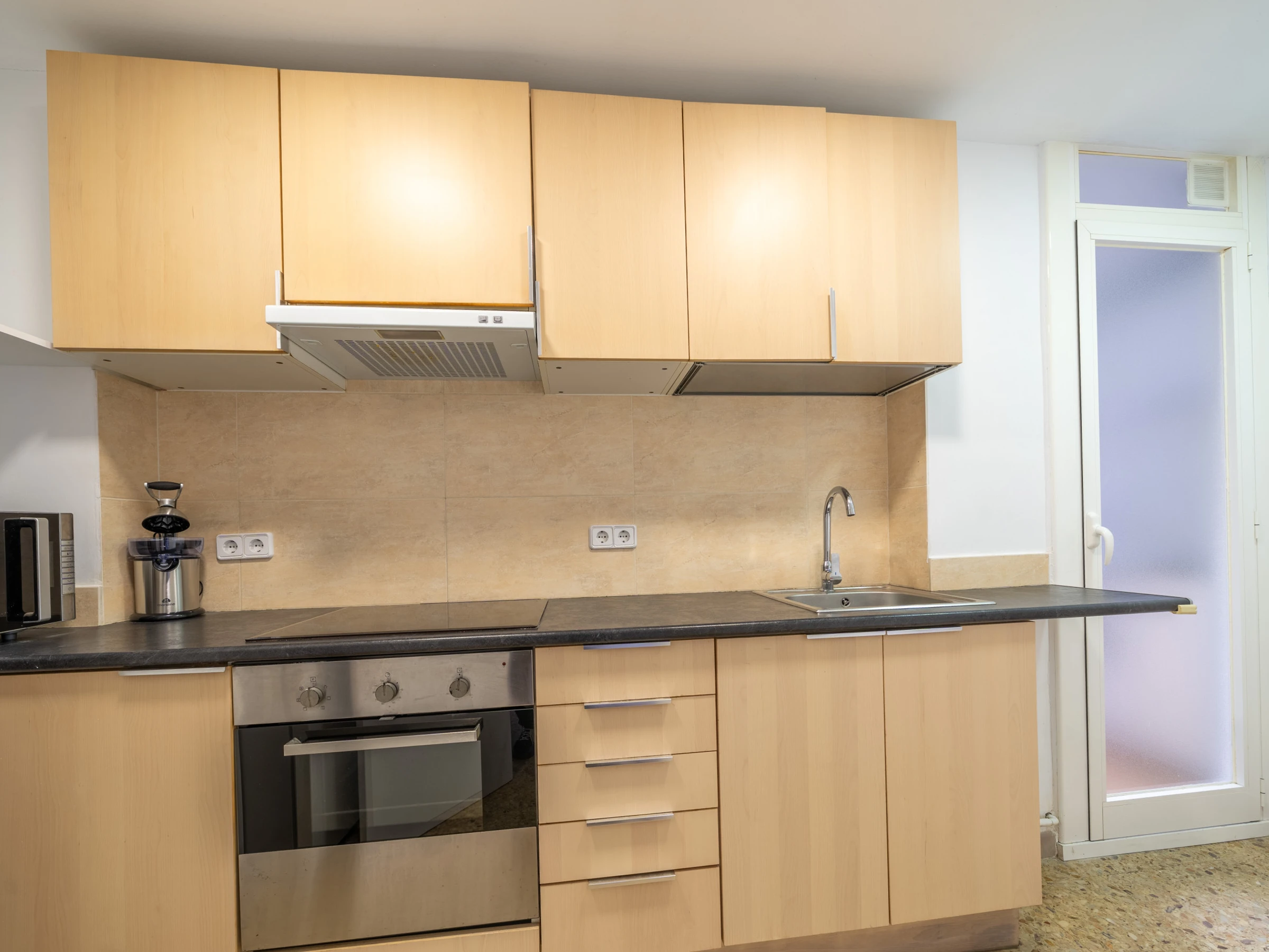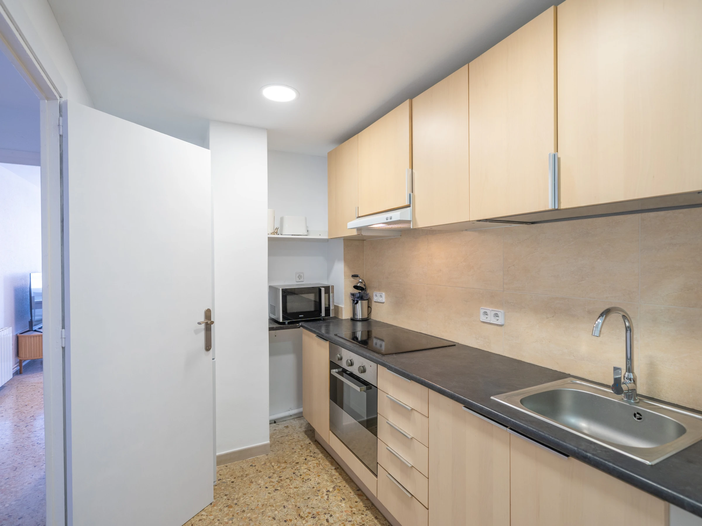 The independent kitchen, of induction, is equipped with refrigerator, microwave, oven, freezer, dishes/cutlery, kitchen utensils, coffee machine, toaster, kettle and juicer.