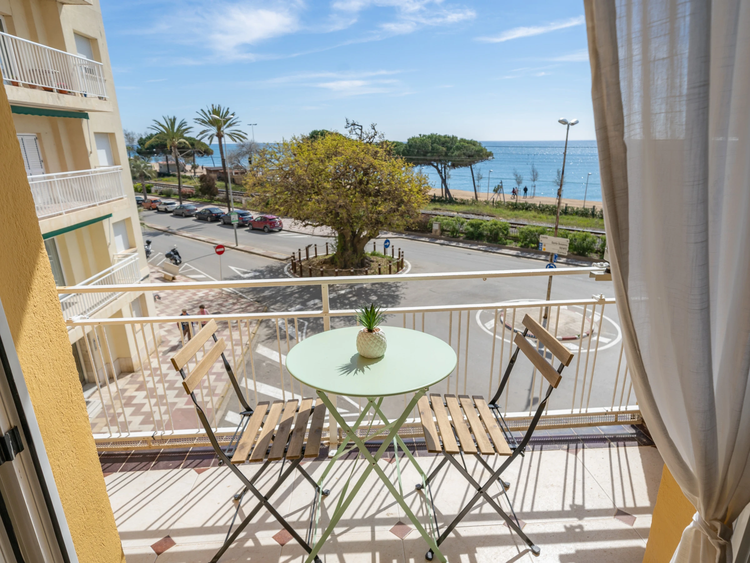 The property is located 0 m rock beach, 0 m metro station, 0 m bus station, 40 m airport "Aeropuerto de Girona-Costa Brava (GRO)", 50 m sand beach "Playa Pineda de Mar", 76 m lake "Lago de Bañolas, Girona", 270 m the restaurant "Restaurant Diagonal, Av. Ntra. Sra. de Montserrat,", 300 m the restaurant "Bar Restaurante La Ola, Carrer Angel Guimerà, 26,", 300 m train station "Estació Rodalies de Pineda de Mar, 08397 Pineda de Mar, Barcelona", 400 m supermarket "Supermercado Consum, Carrer Jaume Balmes, 15, 08397 Pineda de Mar, Barcelona", 450 m the restaurant "Restaurante marisquería Pepet, Av. Ntra. Sra. de Montserrat, 43, 08397 Pineda de Mar, Barcelona", 550 m park "Parc Infantil, Plaça Espanya, 08397 Pineda de Mar, Barcelona", 550 m supermarket "Caprabo Plaza España, Plaça Espanya, 7, 08397 Pine", 650 m supermarket "Supermercados Dia, Plaça de les Melies, 9, 08397 P", 750 m city "Centro pueblo Pineda de Mar", 2 km coffee shop "Restaurant Kpi, Carrer Santiago Rusiñol, 97, 08397 Pineda de Mar, Barcelona", 2 km the restaurant "Pura Brasa Pineda de Mar, N-II, km 671, 6, 08397 B", 5 km hospital "Hospital Comarcal Sant Jaume de Calella, Carrer de Sant Jaume, 209, 217, 08370 Calella, Barcelona", 9 km water park "Marineland (T), 08389, Barcelona", 10 km golf course "Pitch and Putt Sant Cebrià, Afores, S/N, 08396 Sant Cebrià de Vallalta, Barcelona", 18 km river "La illa del riu Tordera, 08490 Tordera, Barcelona", 18 km water park "Water World, Ctra. Vidreres, Km. 1,2, 17310 Lloret", 19 km thermal springs "Baños Termales Caldes de Estrac, La Riera, 29, 08393 Caldes d'Estrac, Barcelona", 33 km nature reserve "Parque del Montnegre y el Corredor, 08319 Dosrius,", 35 km water park "Illa Fantasia, 08338 Premià de Dalt, Barcelona", 44 km nature reserve "Montseny, 08469 Montseny, Barcelona", 64 km amusement park / theme park "Parque de atracciones Tibidabo, Plaça del Tibidabo, 3, 4, 08035 Barcelona", 73 km airport "Aeropuerto Josep Tarradellas Barcelona-El Prat", 152 km ski slope "La Molina, GIV-4082, s/n, 17537 Alp, Catalonia, Girona" and it is located in a a family-friendly zone and next to the sea.