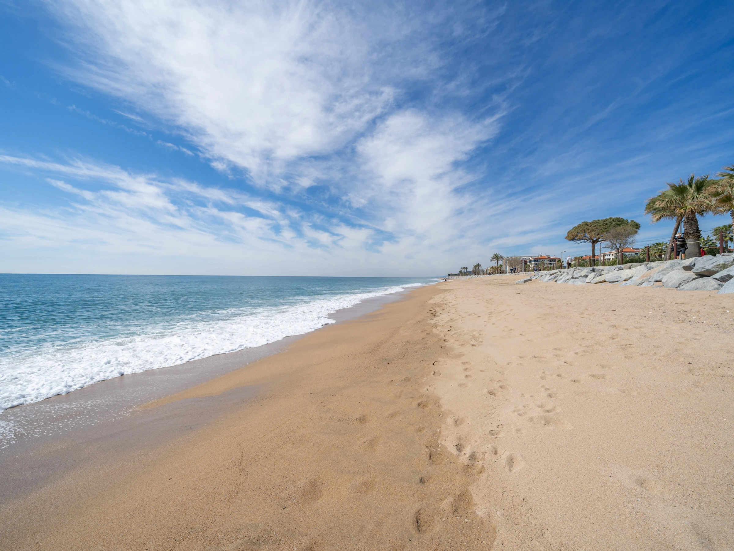 The property is located 80 m sand beach "Playa de Pineda de mar", 230 m the restaurant "Restaurante Diagonal", 250 m the restaurant "Restaurante Els Pescadors", 290 m train station "Estación de tren - Pineda de mar", 300 m coffee shop "Nucky's Bar", 350 m supermarket "Supermercado Consum", 500 m supermarket "Supermercado Caprabo", 500 m the restaurant "Restaurante Marisquería Pepet", 600 m supermarket "Supermercado Dia", 700 m city "Centro del pueblo de Pineda de mar", 2 km rock beach "Playa de Santa Susanna", 4 km hospital "Hospital Comarcal Sant Jaume - Calella", 5 km park "Parc Francesc Macià - Malgrat de Mar", 9 km water park "Parque acuático Marineland - Palafolls", 10 km golf course "Pitch and Putt - Sant Cebrià de Vallalta", 13 km hospital "Hospital Comarcal de la Selva - Blanes", 18 km water park "Parque acuático Water World - Lloret de mar", 19 km thermal springs "Baños Termales - Caldes de Estrac", 23 km river "Riu Tordera", 23 km nature reserve "Sierra del Montnegre -Barcelona", 40 km airport "Aeropuerto de Girona-Costa Brava (GRO)", 64 km amusement park / theme park "Parque de atracciones Tibidabo - Barcelona", 70 km international airport "Aeroport Internacional del Prat", 74 km airport "Aeropuerto Josep Tarradellas Barcelona-El Prat", 76 km lake "Lago de Bañolas - Girona", 155 km ski slope "La Molina", 166 km amusement park / theme park "Parque de atracciones Port Aventura - Tarragona" and it is located in a a family-friendly zone and close to a shopping area and restaurants.