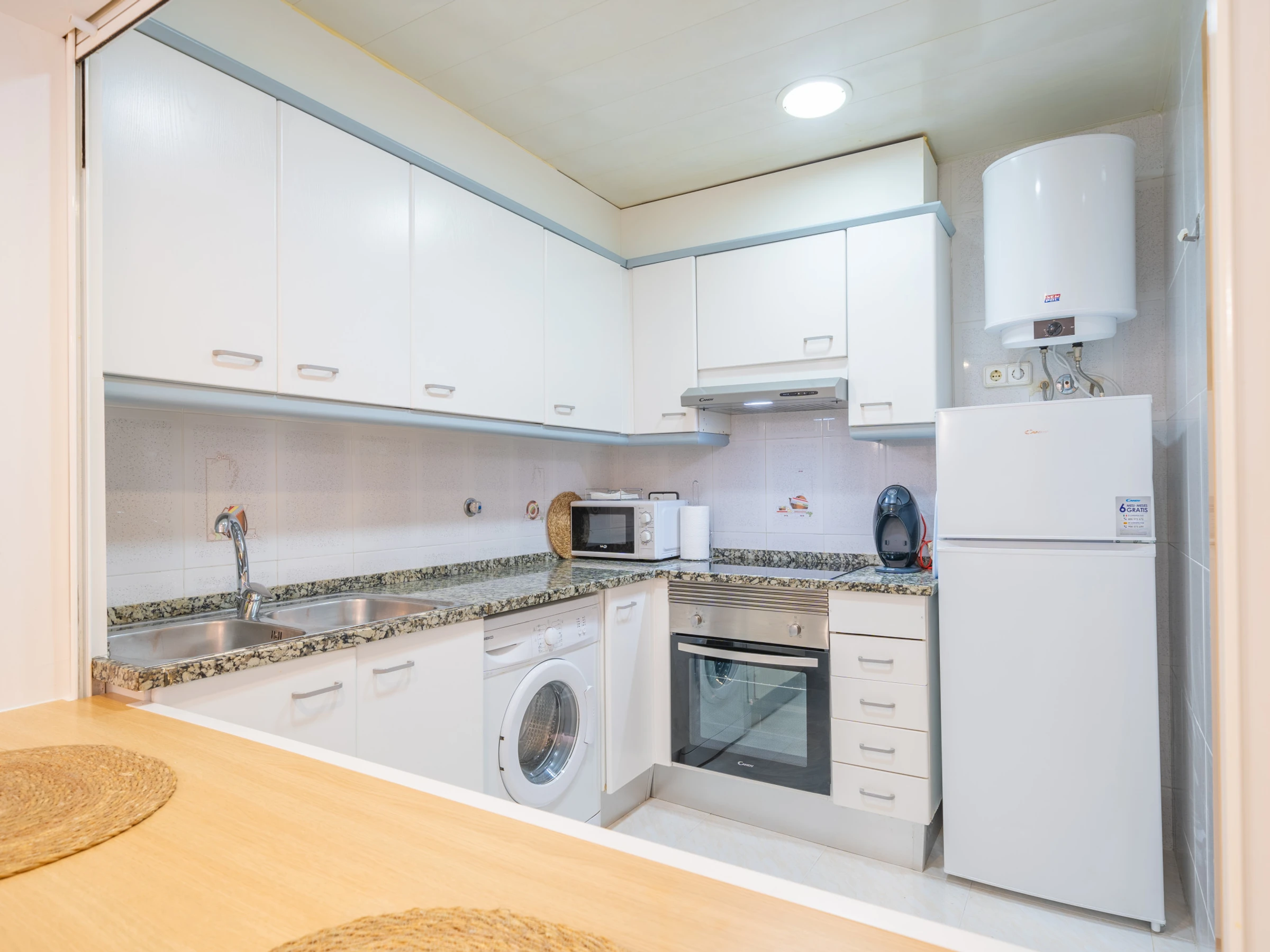 The independent kitchen, of induction, is equipped with refrigerator, microwave, oven, freezer, dishes/cutlery, kitchen utensils, coffee machine, toaster and juicer.
