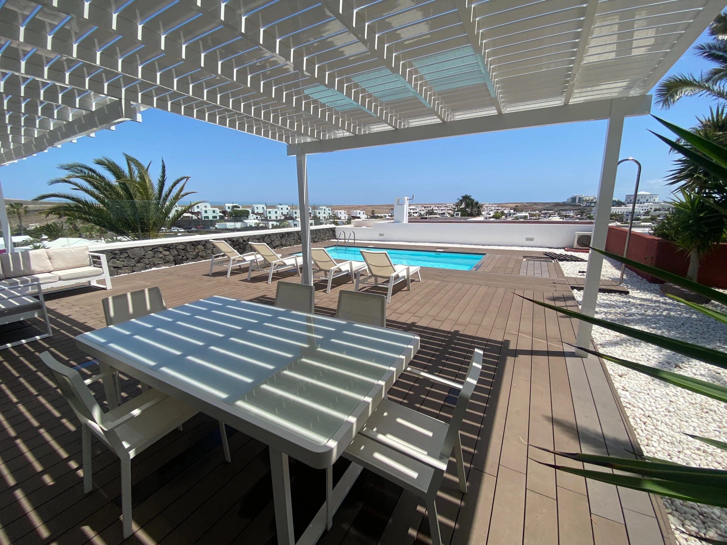 Enjoy with family, couple or friends this villa with private heated pool located in a perfect area to immerse yourself in Lanzarote and its views of the sea, Fuerteventura and the island of Lobos.