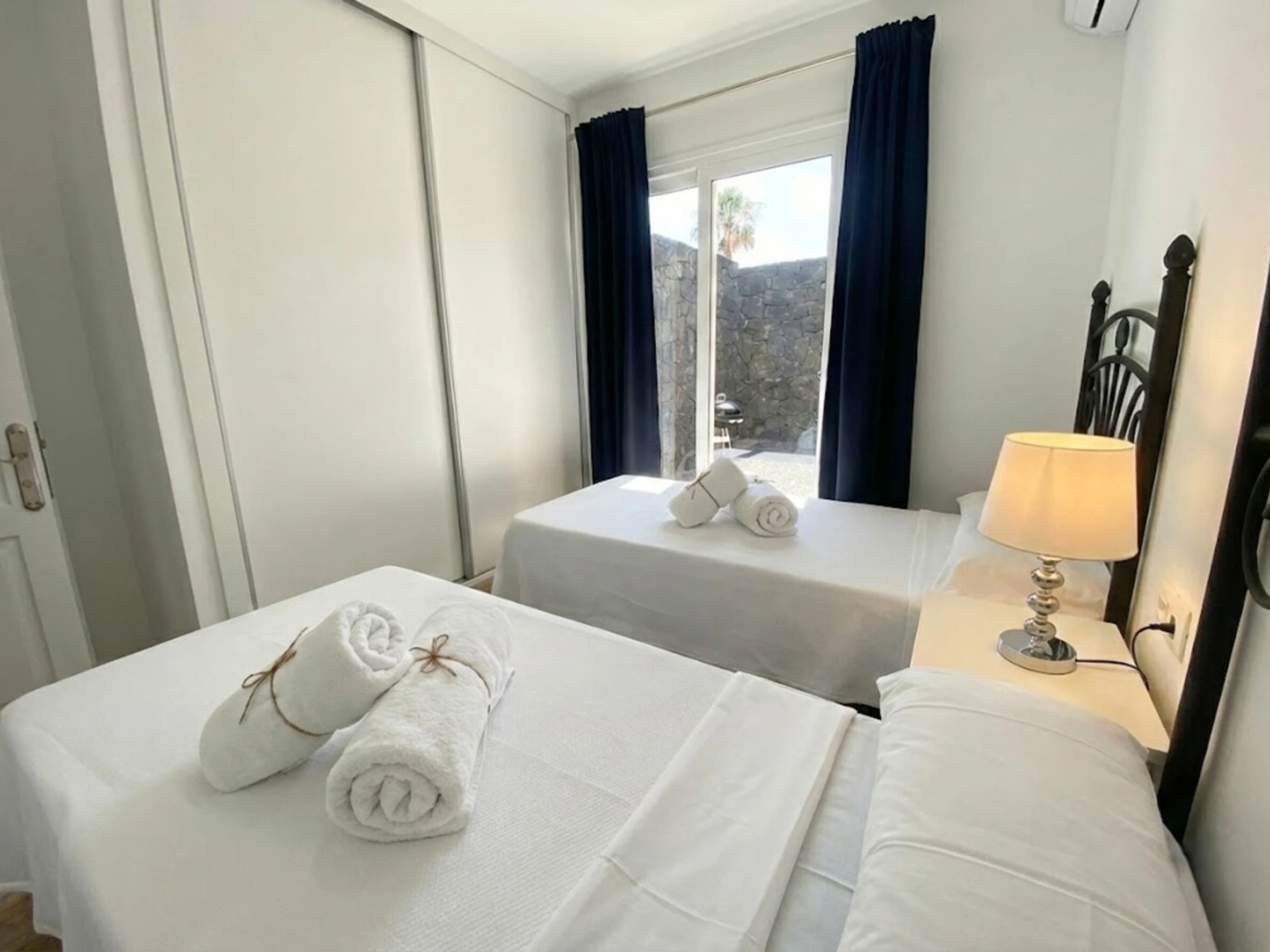 The villa consists of 3 bedrooms; one double bedroom with 1.50m x 1.90m bed and en suite bathroom, two bedrooms with 2 single beds each. There is a second bathroom.