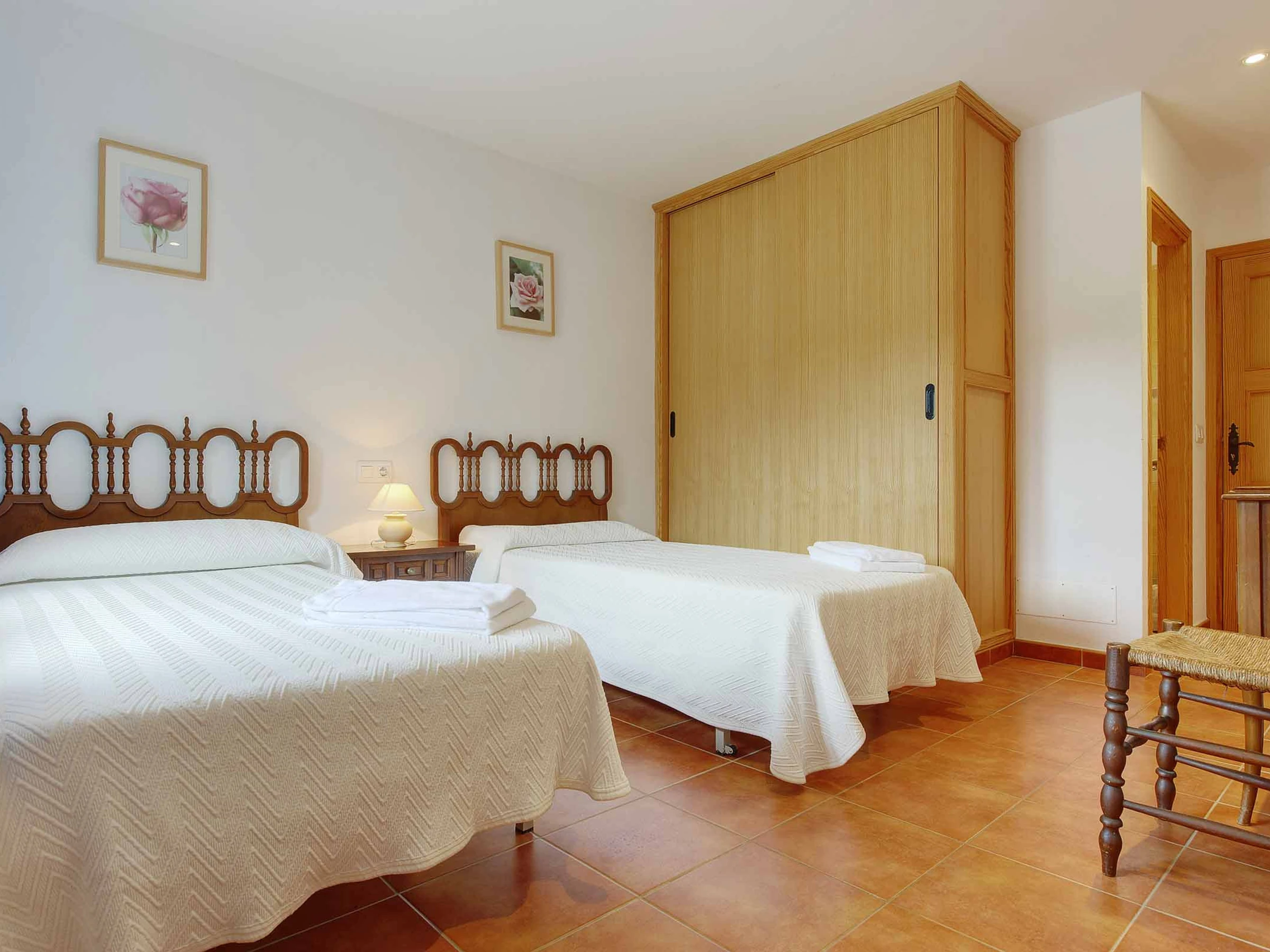Inside, the villa looks like a traditional Majorcan home, with wooden furniture and Spanish plates on the wall. The décor is white, the floor tiles are terracotta, the linens are natural. With three bedrooms, the villa is for six people.