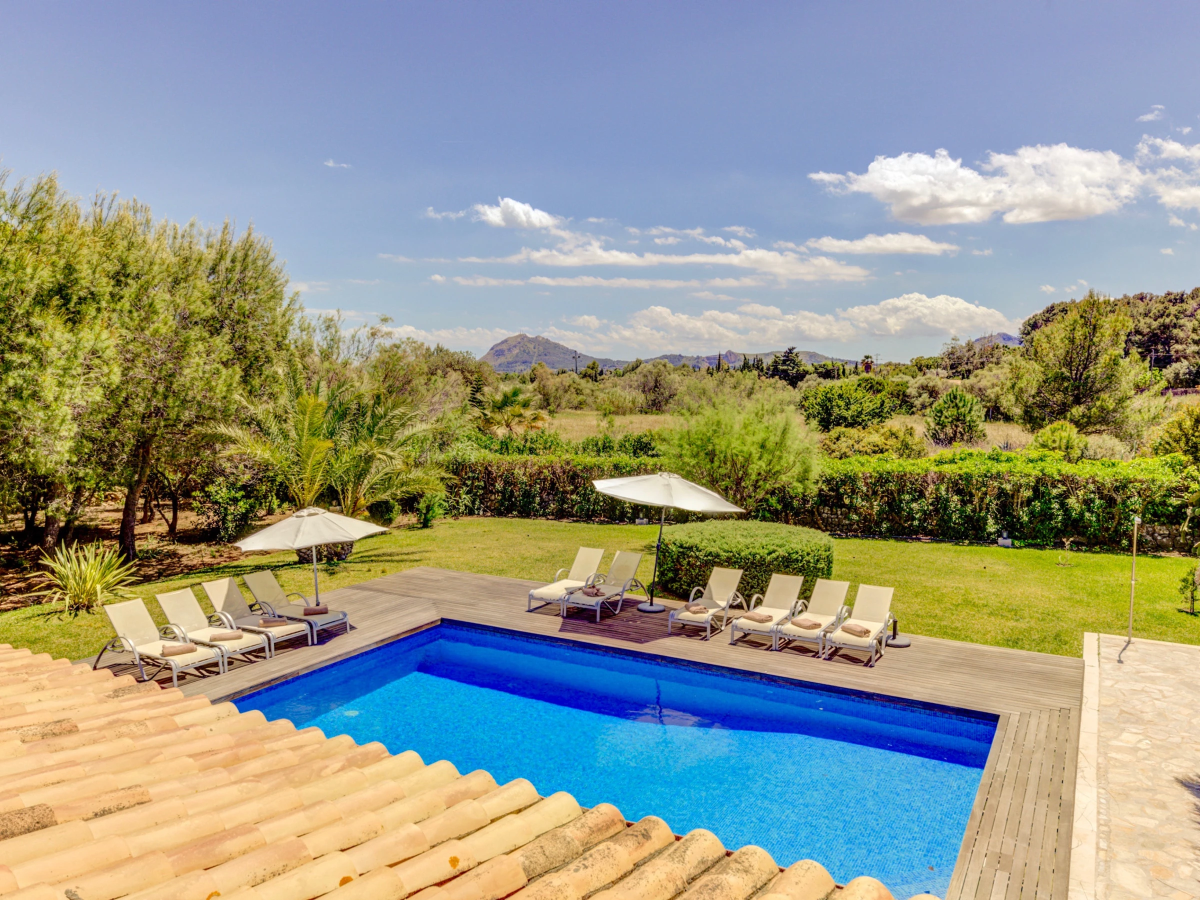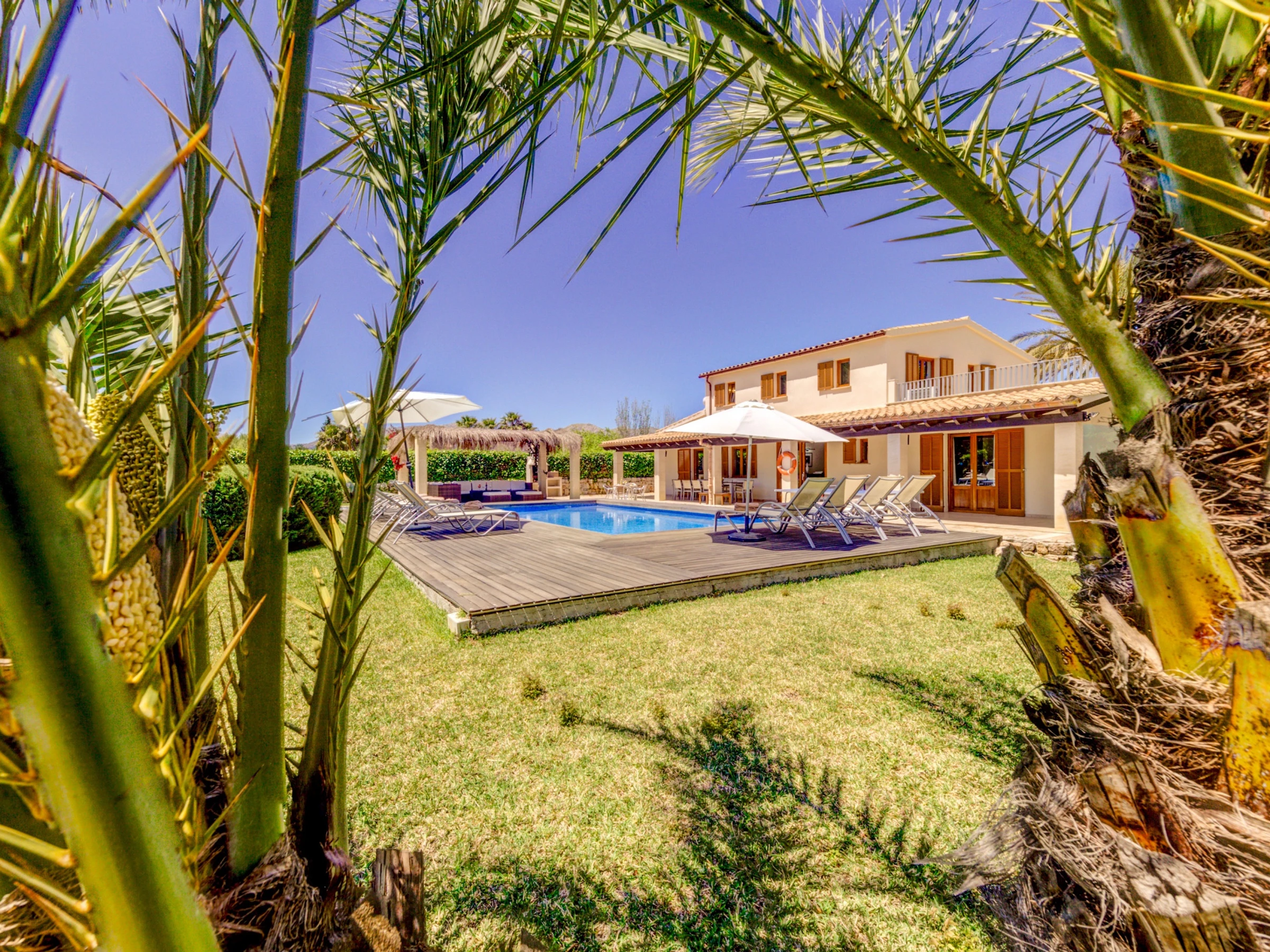 Villa Ponent is a charming five-bedroom, four-bathroom villa, located between Pollença and Puerto de Pollença, just 2 km from S'Albufereta beach. Its rural surroundings offer total privacy with easy access to the beautiful beaches in the area. Surrounded by spacious gardens with lawn and flowers, it features a large private pool and a jacuzzi, making it an ideal refuge in the tranquil Mallorcan countryside.